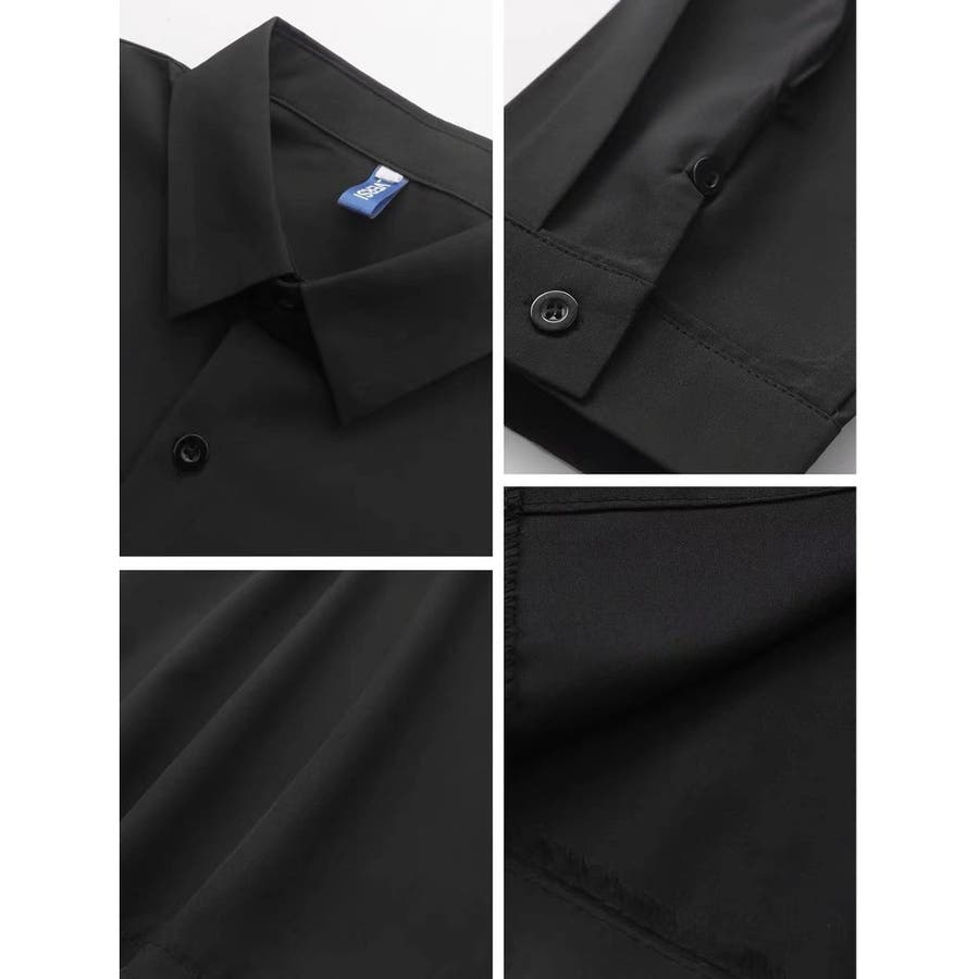 【ブラック】長袖 サラサラ カジュアルシャツ
