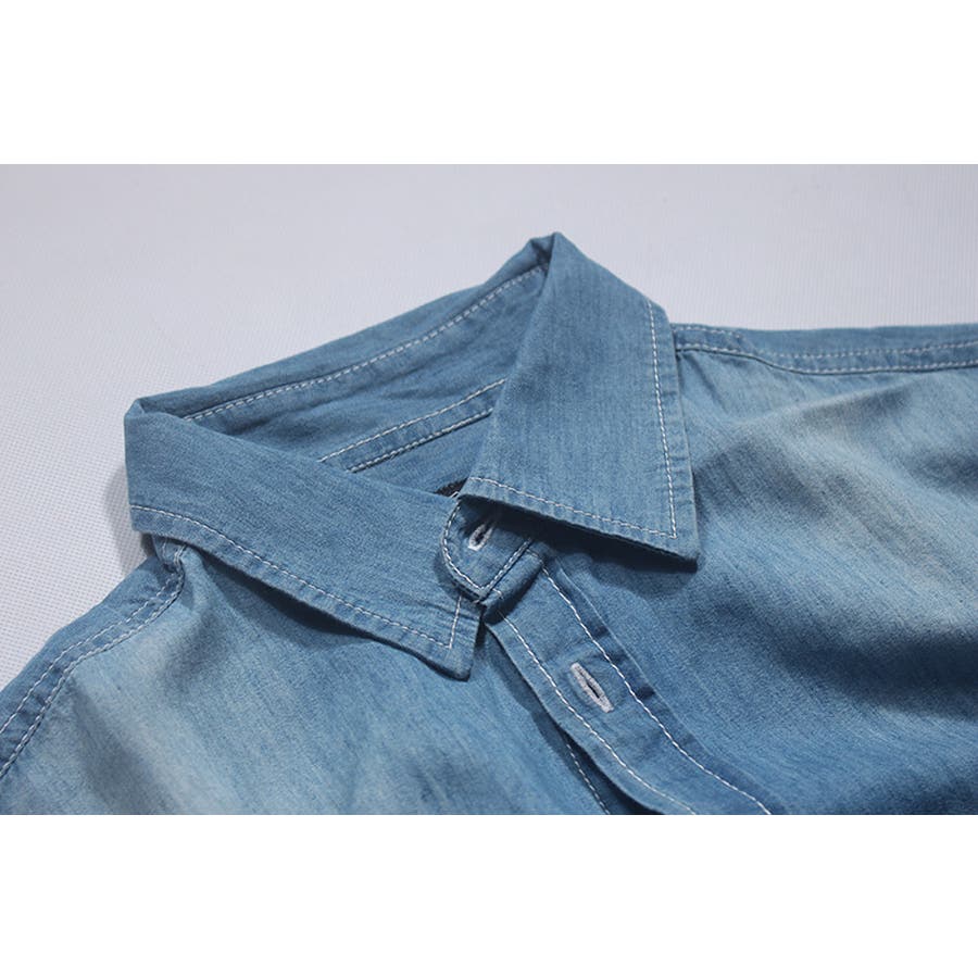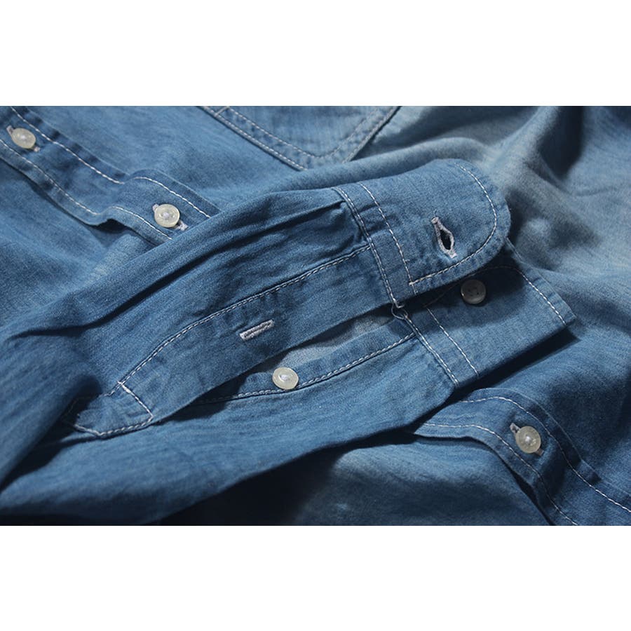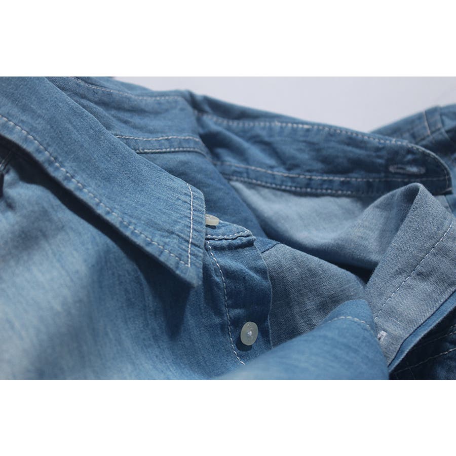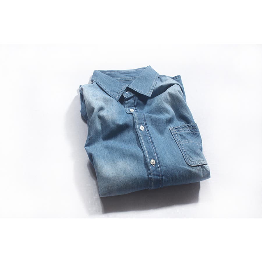短めの丈とやや細身の作りがシャープな印象のシャンプレーシャツ