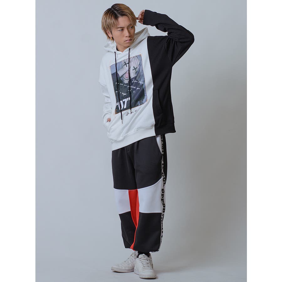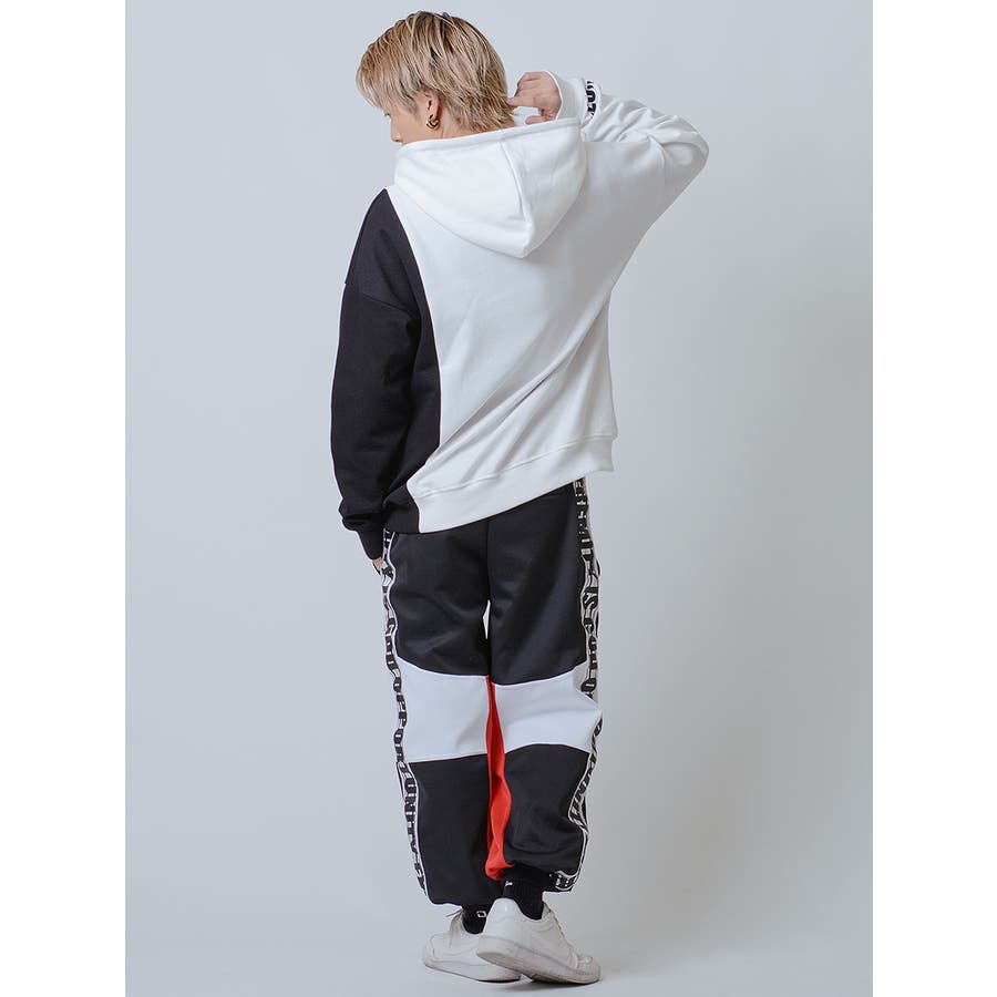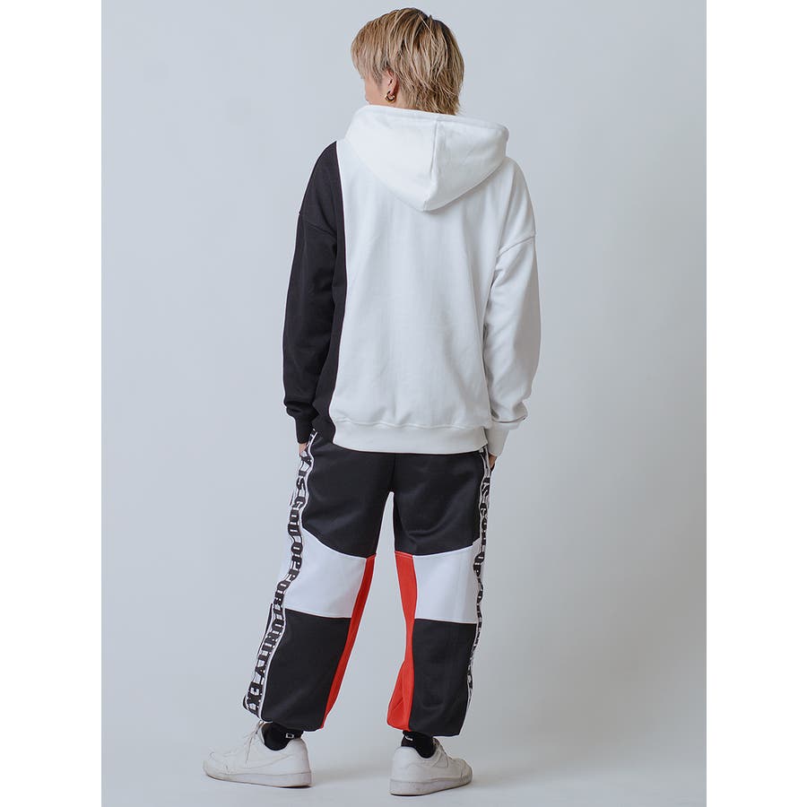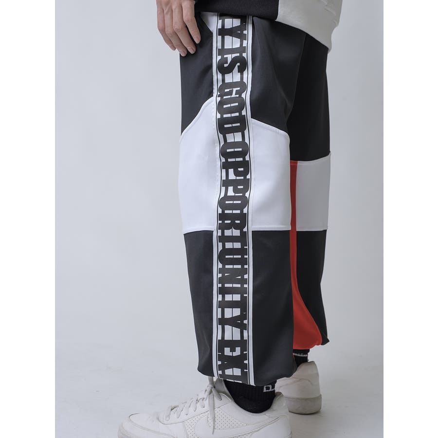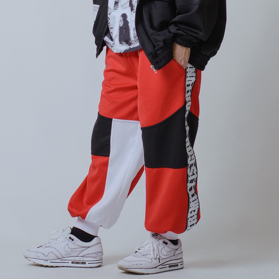 スポーティな切替で人気のトライカラーの配色パターンと、ワイドシルエットのジョガースタイルは新鮮で、リラックスしてイージーに穿けるだけでなくスタイルとしても注目。