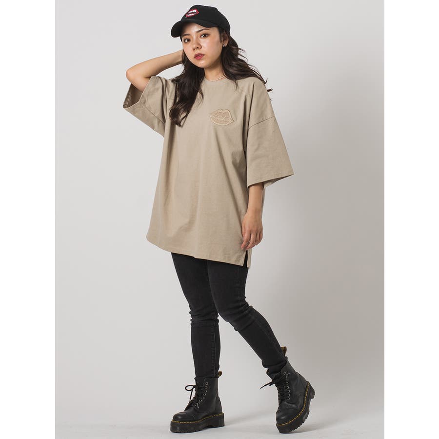 ドロップショルダーでワイドシルエットのTeeシャツ。