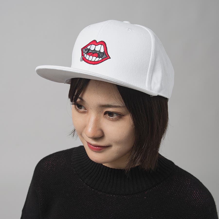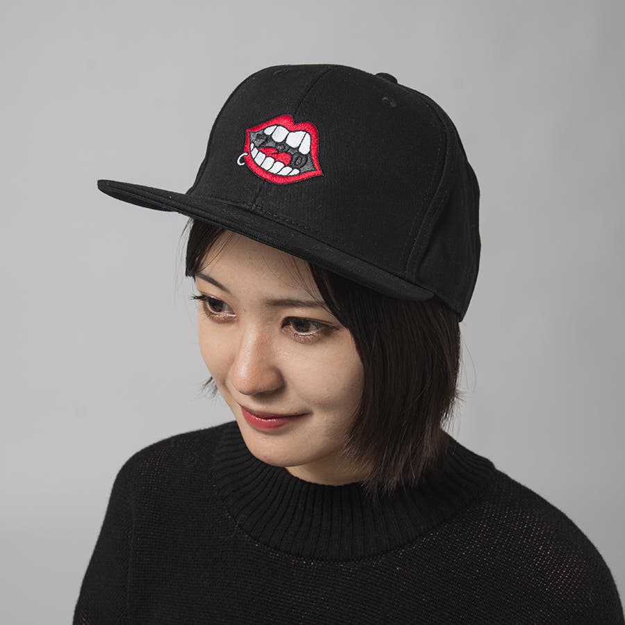 代表的なアイコンである「リップ」、「ウォーク」、「スケボー」の刺繍を配置し、バックはサイズ調整がしやすいスナップバック仕様でユニセックスに着用できます。