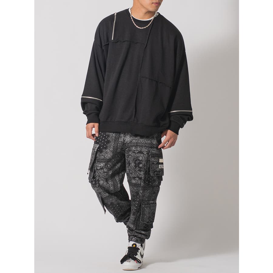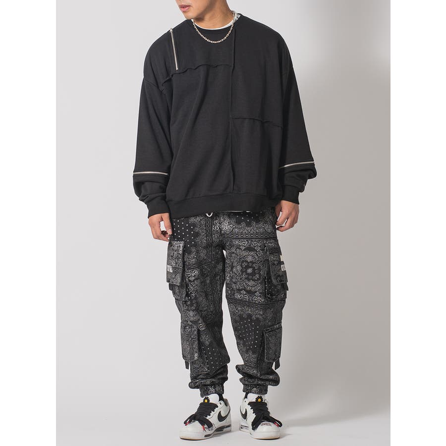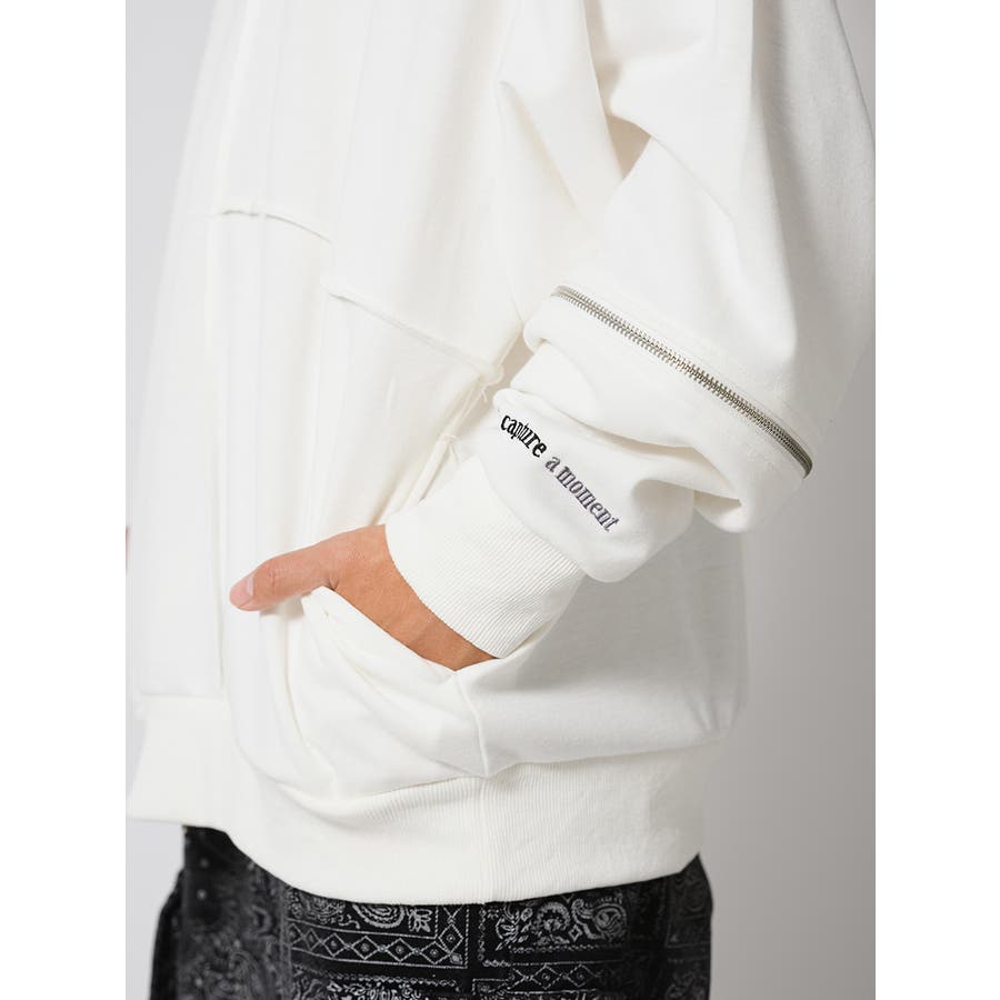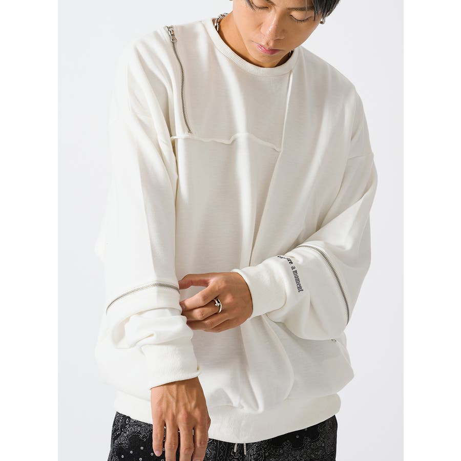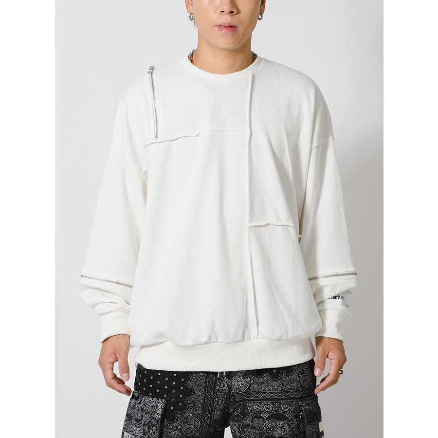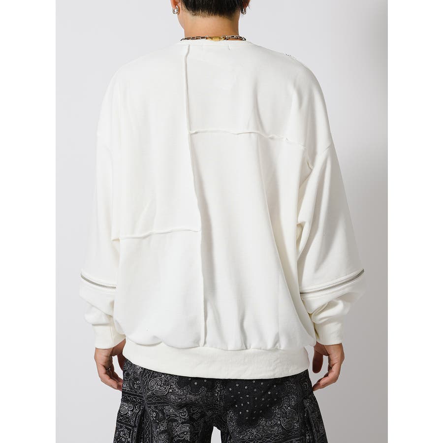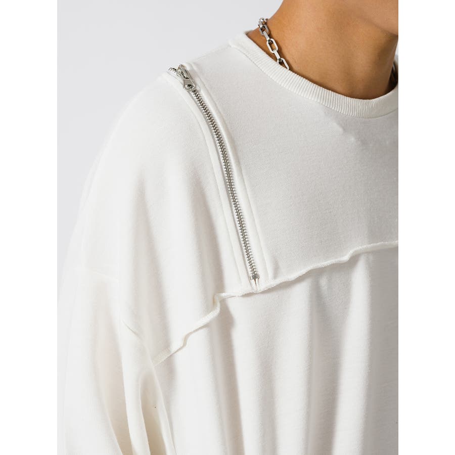 縫い代にZIPを配置したデザインが特徴的なワイドトレーナー。