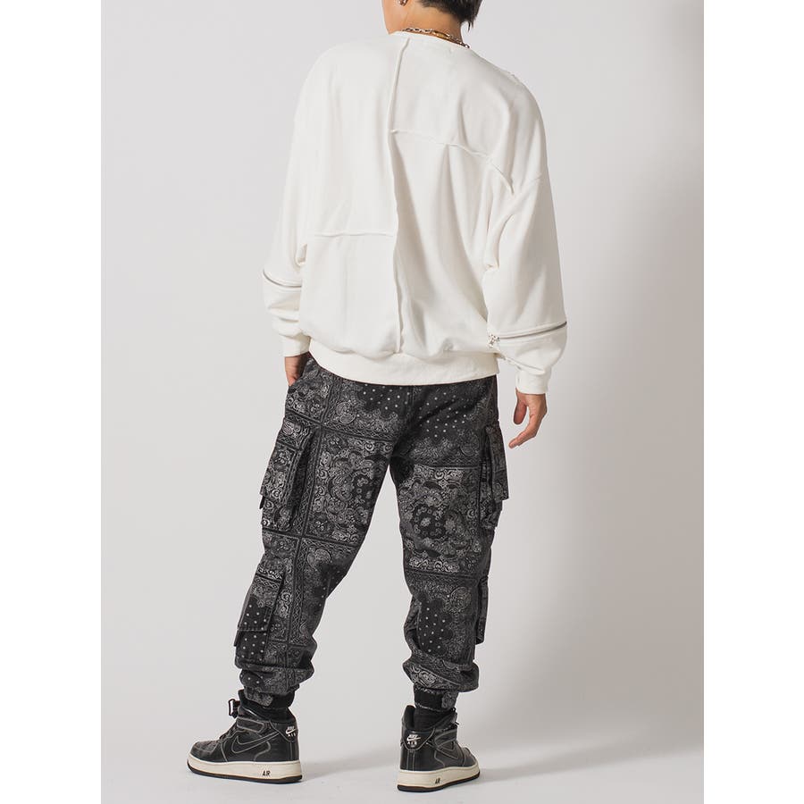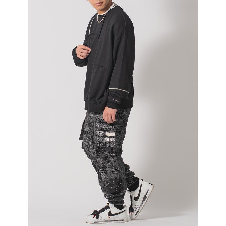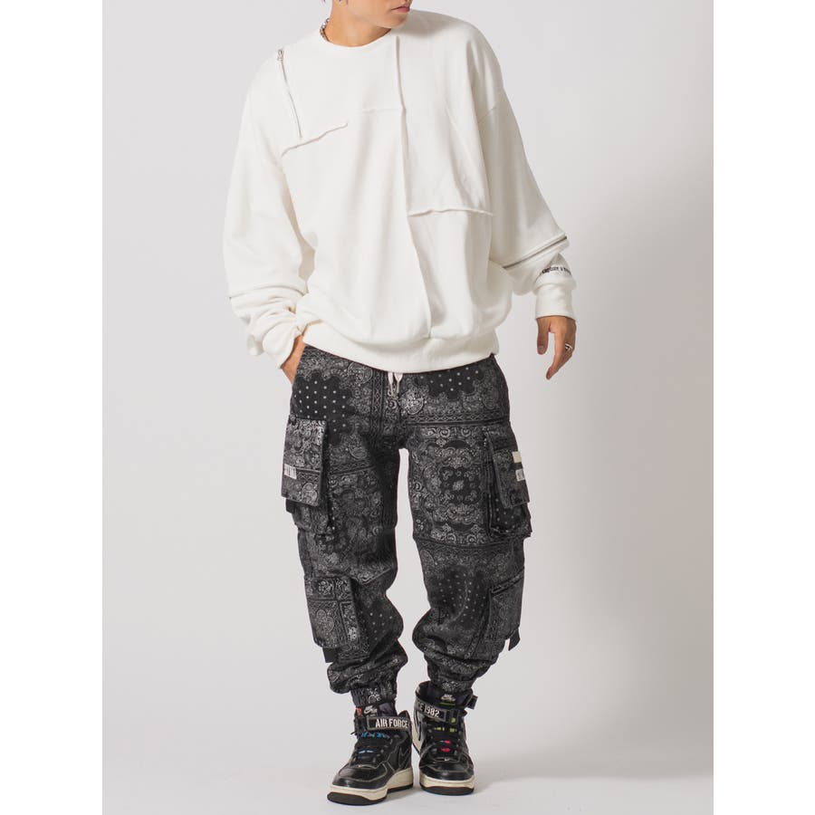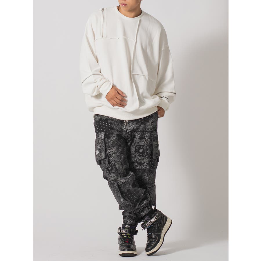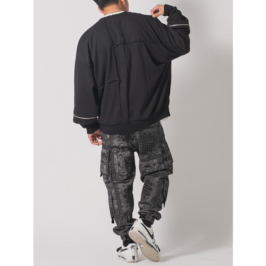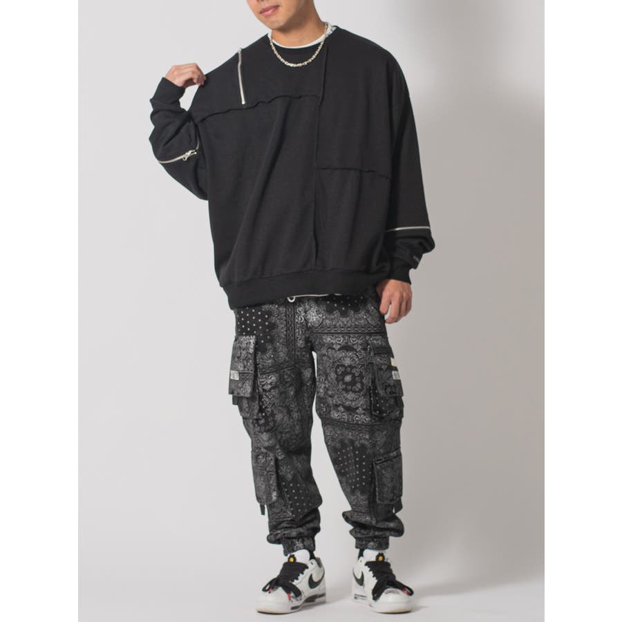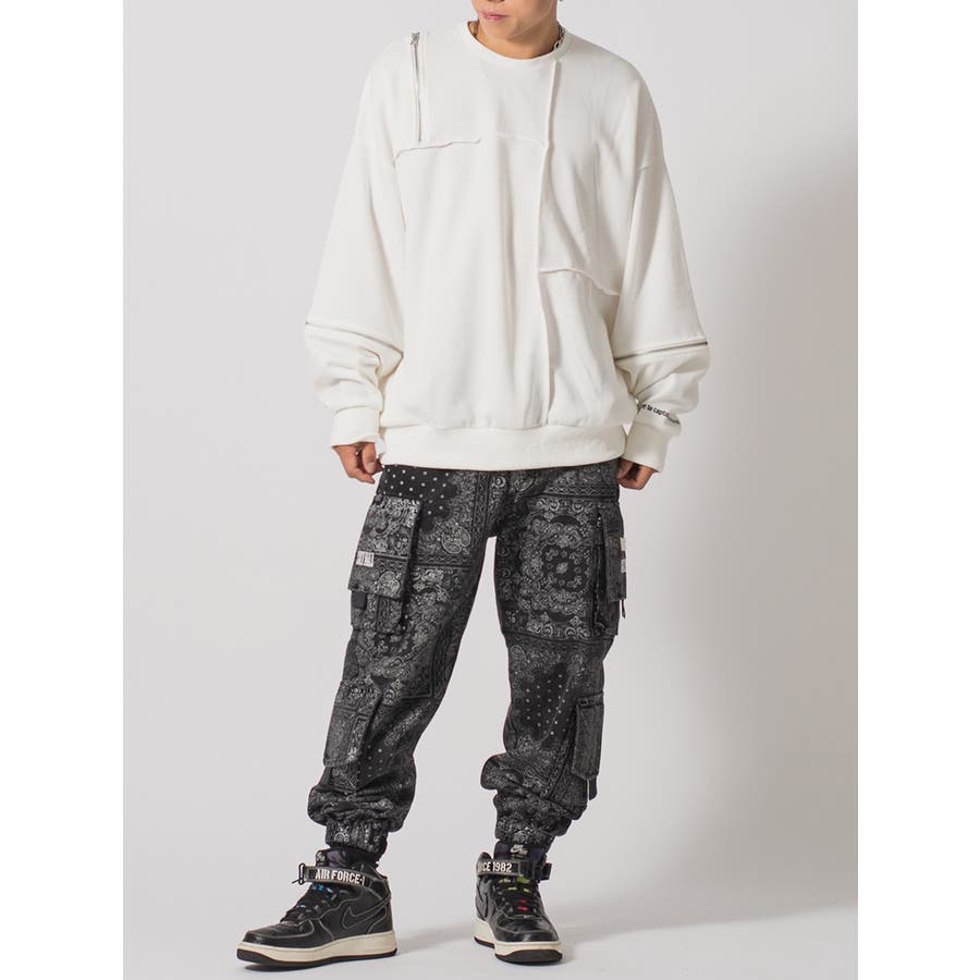 縫い代にZIPを配置したデザインが特徴的なワイドトレーナー。