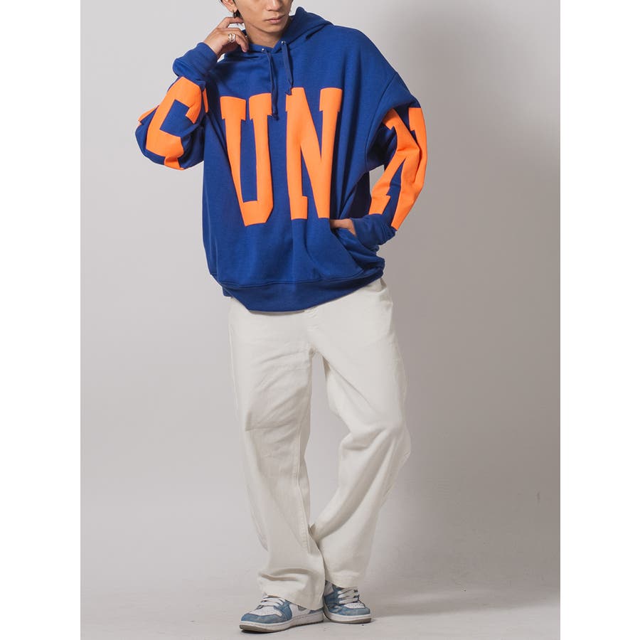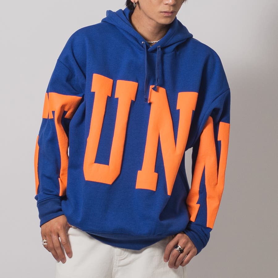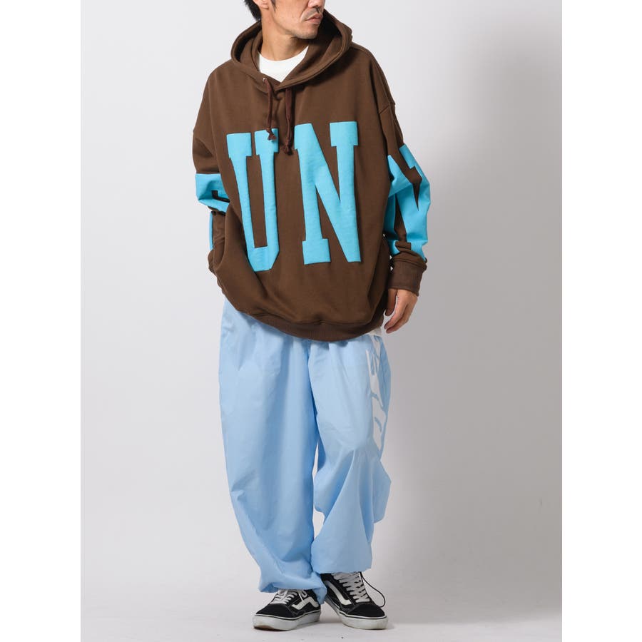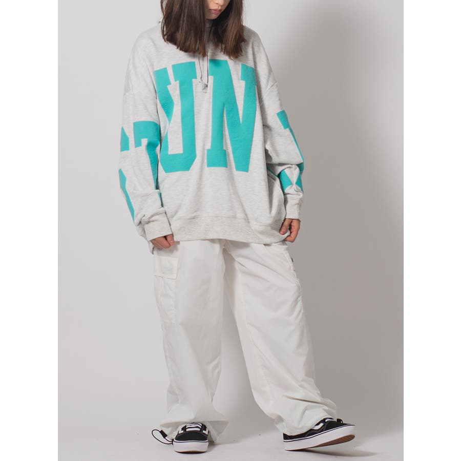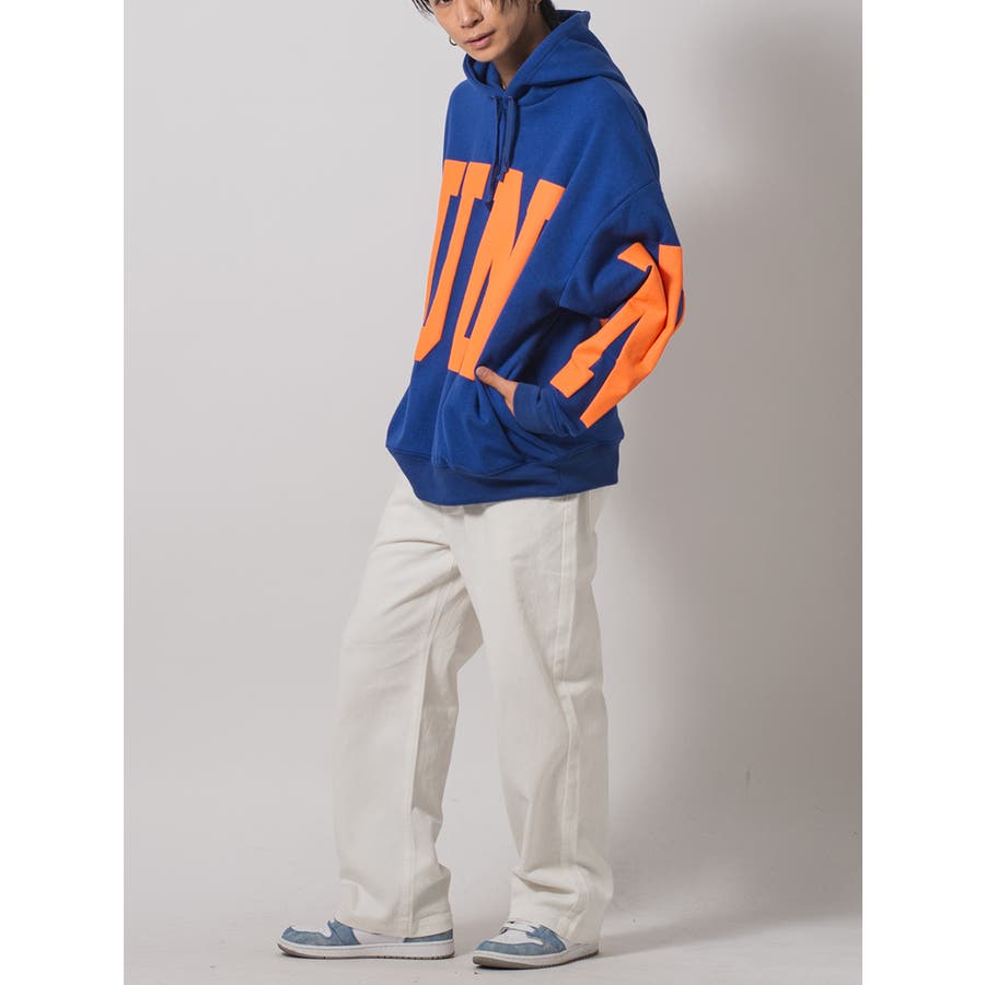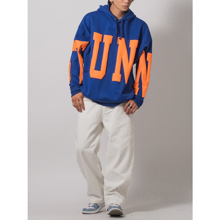 ビッグロゴは立体的な発泡プリント手法を用いているから迫力があり、その配色も絶妙で目を惹くデザイン。ワイドなボディはそのルーズさが人気のシルエットであり、しっかりとした厚手の素材がアウターとして着られる存在感で、本物志向と遊び心を満たしてくれるアイテムです。