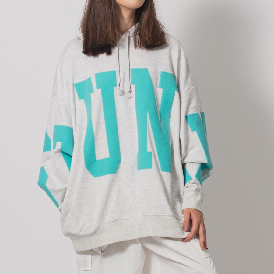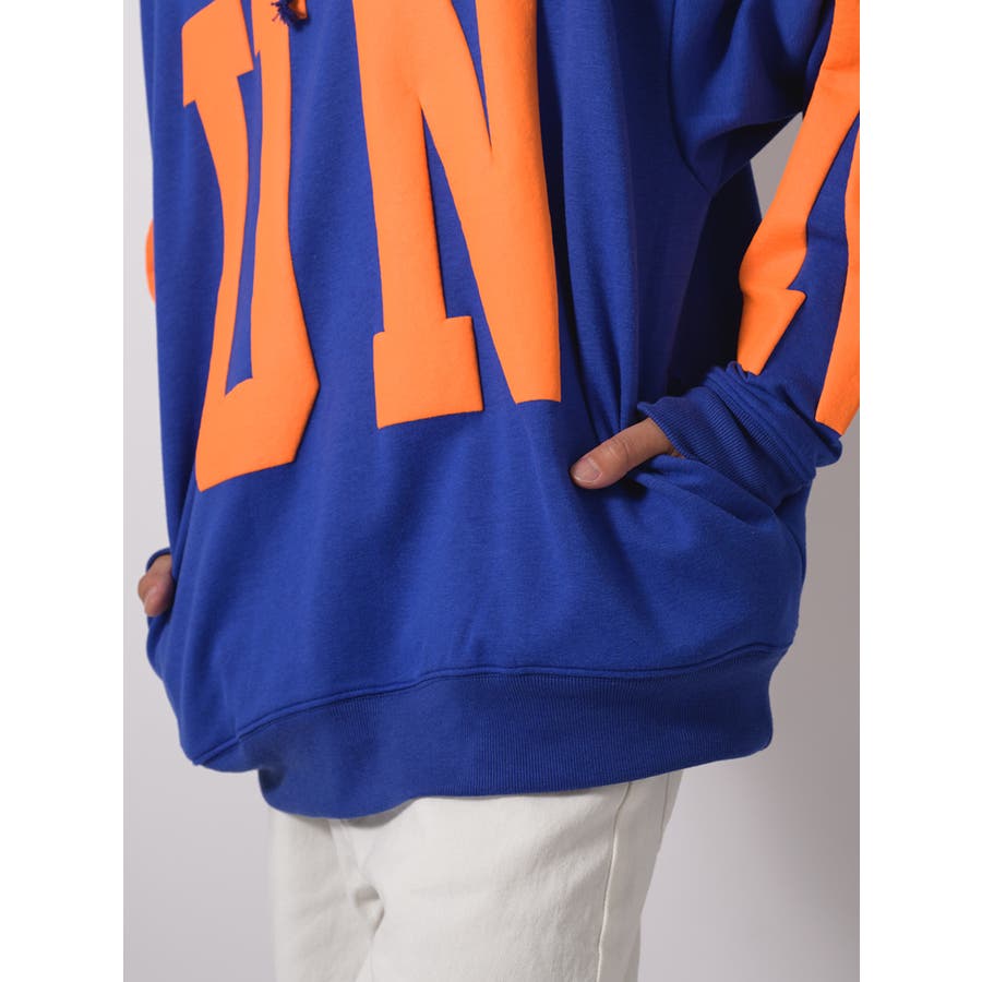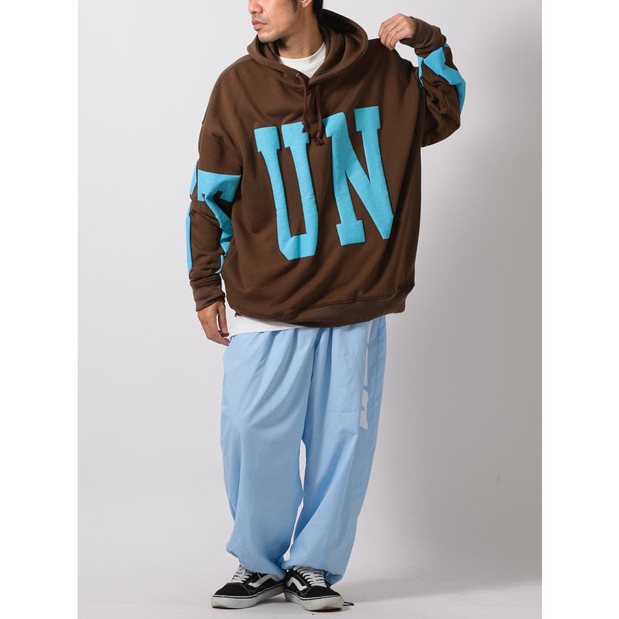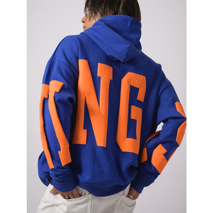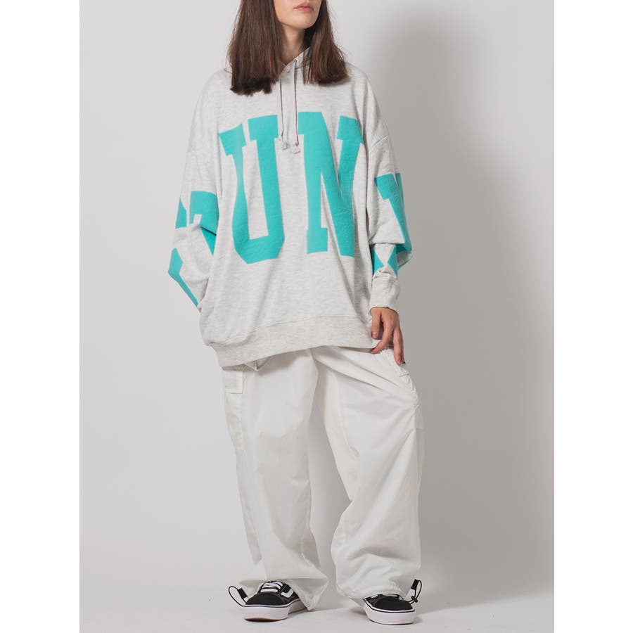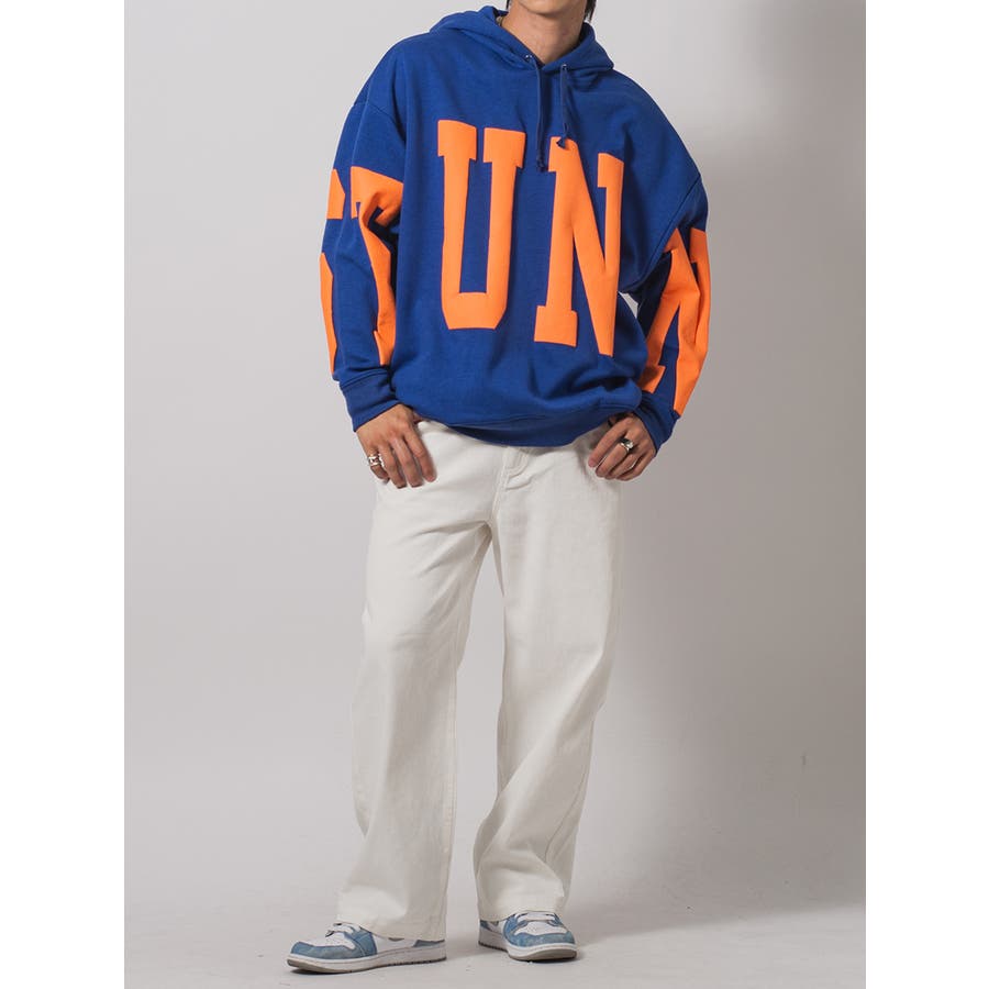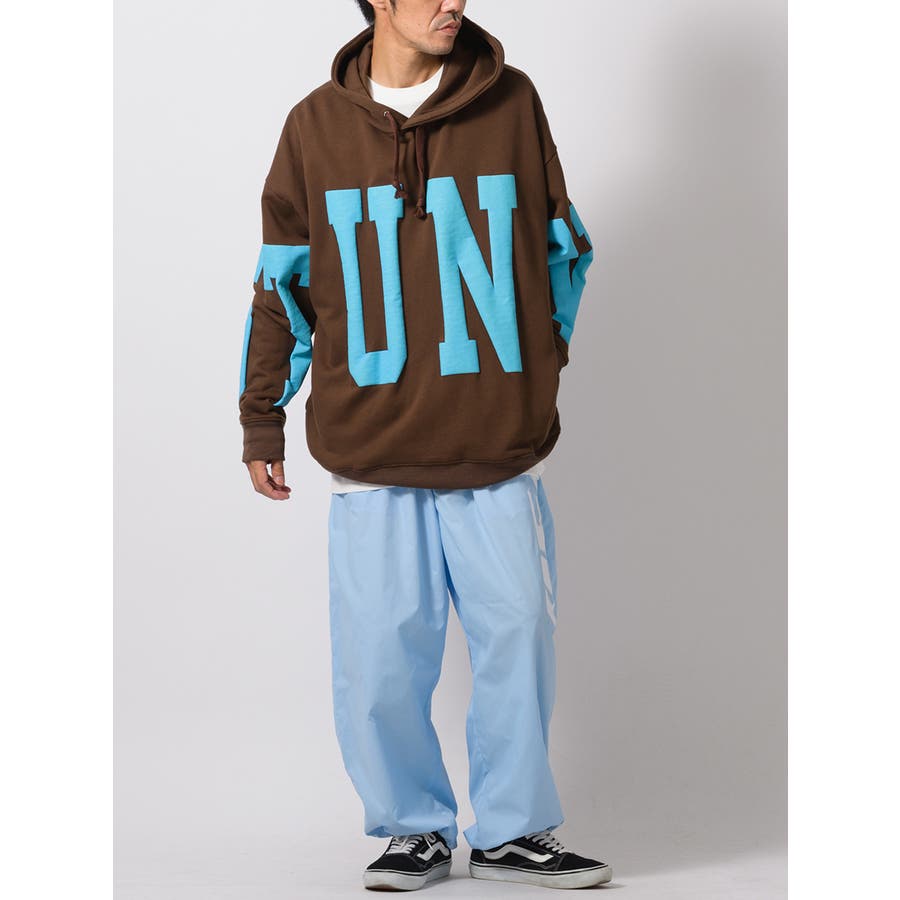 ビッグロゴは立体的な発泡プリント手法を用いているから迫力があり、その配色も絶妙で目を惹くデザイン。ワイドなボディはそのルーズさが人気のシルエットであり、しっかりとした厚手の素材がアウターとして着られる存在感で、本物志向と遊び心を満たしてくれるアイテムです。
