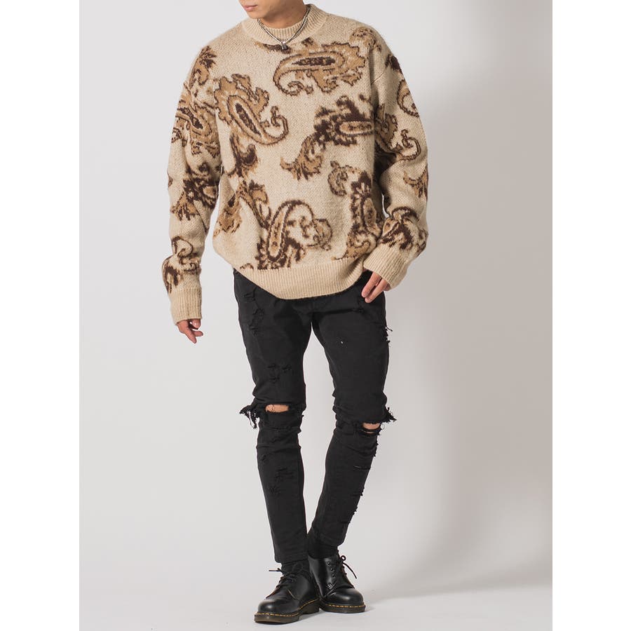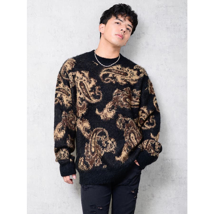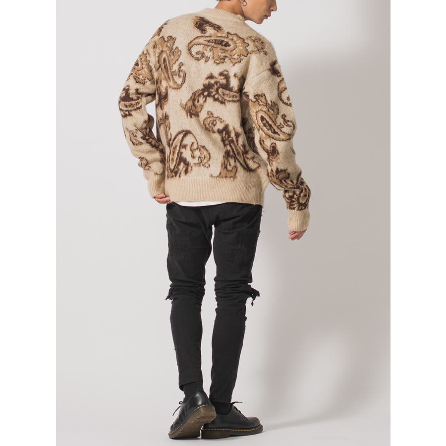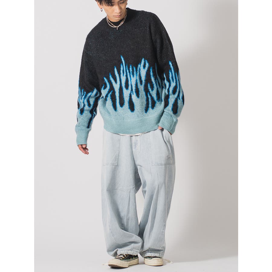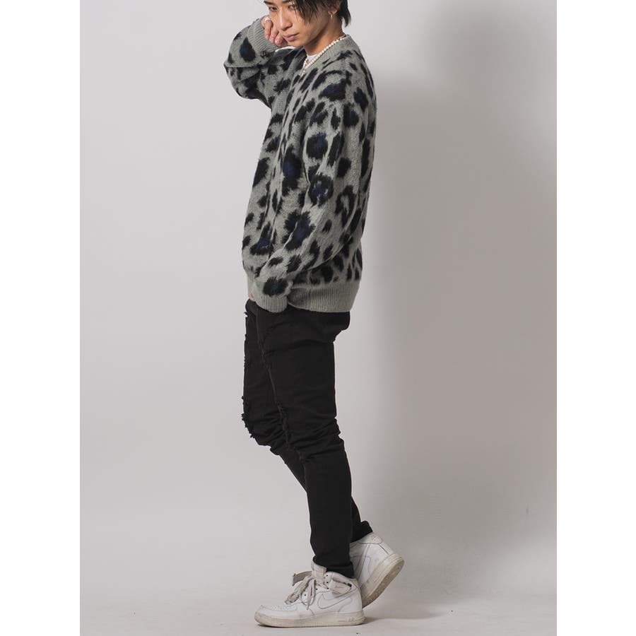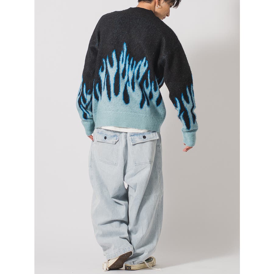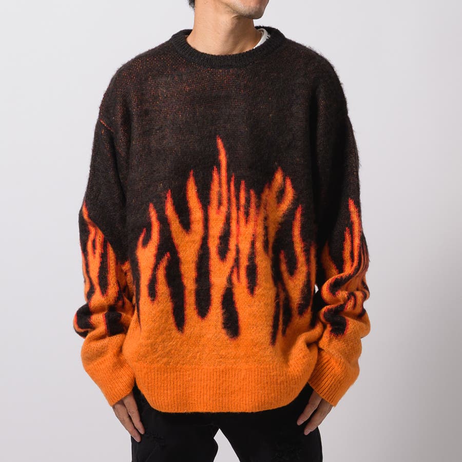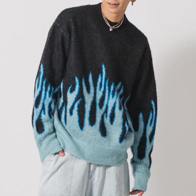 モヘアとはフワフワの毛羽が特徴の獣毛なので希少で価格も倍以上の高級素材ですが、こちらはそれをリーズナブルに再現した素材です。見た目の風合いは何ら劣らないエアリーな雰囲気を感じさせて、タッチも柔らかくて暖かく日常的にヘビロテできる嬉しいアイテム。これだけで存在感があるのでシンプルに着るだけでカッコよく、ワイドパンツもスキニーも、レザーを羽織ってもロングコートでも映えること間違いない。男女とも着られるユニセックスなアイテムです。多少の毛羽立ちはこの製品の本来の味であります。気になる場合は一般の毛玉取りで処理することができます。