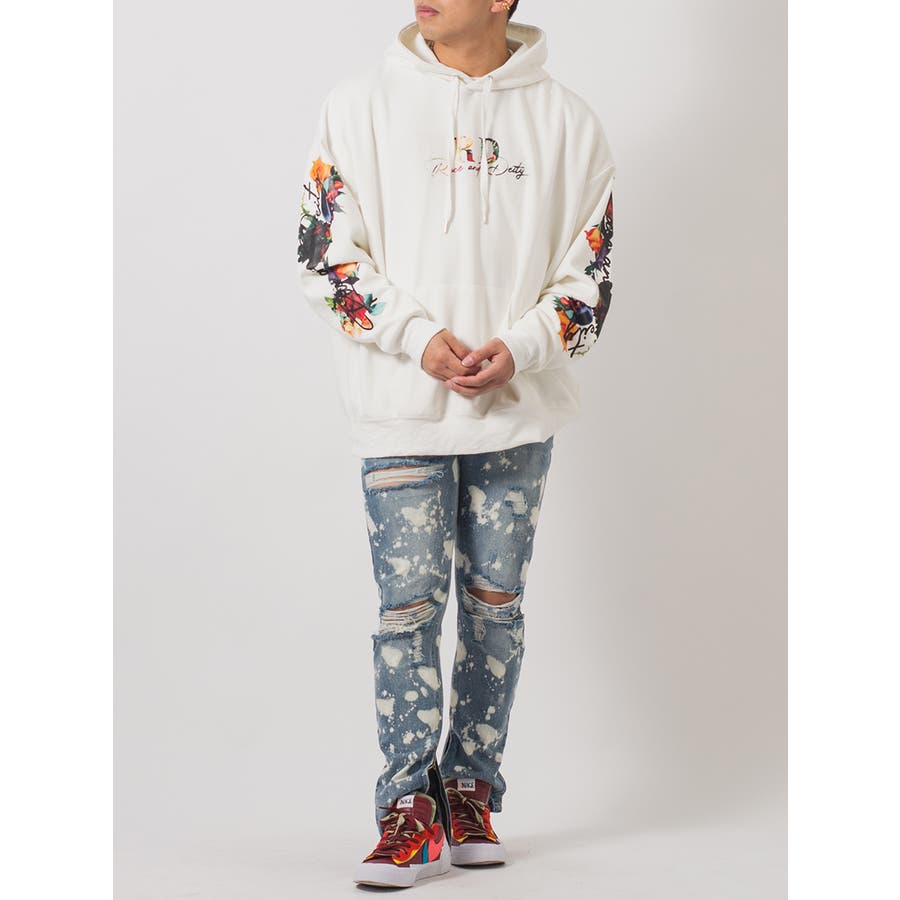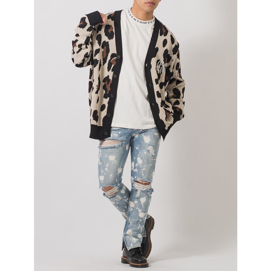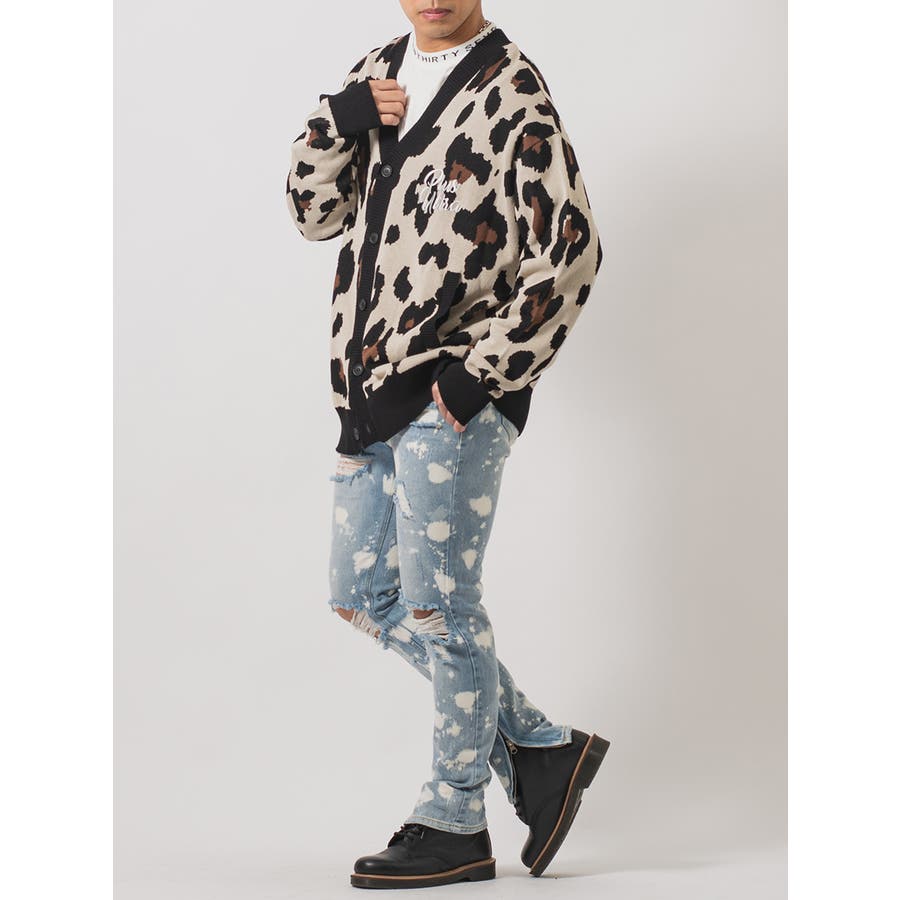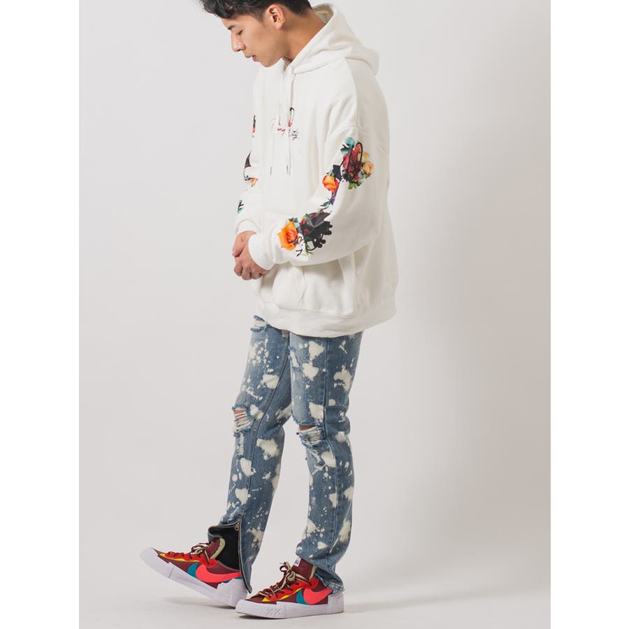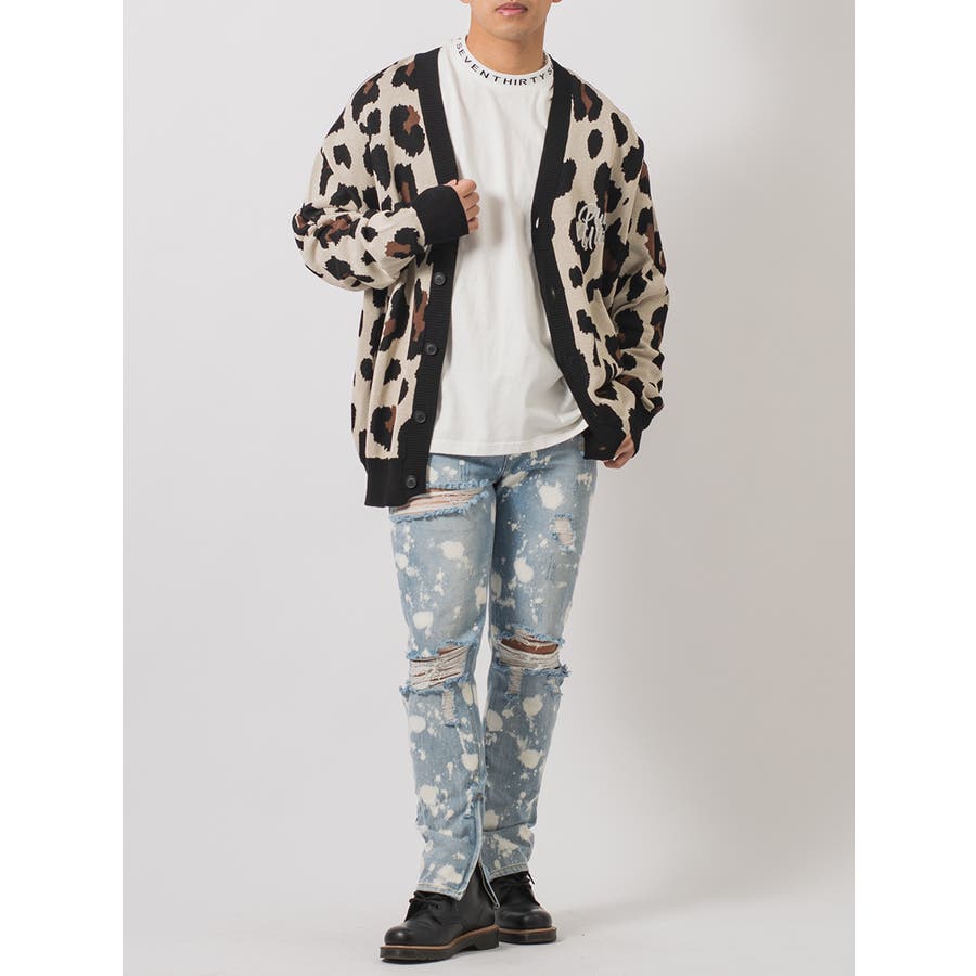ボディ全体をブリーチ加工によって脱色し、大胆なクラッシュ加工によるダブルダメージが、その存在感を際立てる。腰回りにはゆとりを持たせつつも膝下からはタイトなスリムシルエットが印象的で、脱着がしやすい様に裾部分に配置したファスナーはアクセントにもなっています。