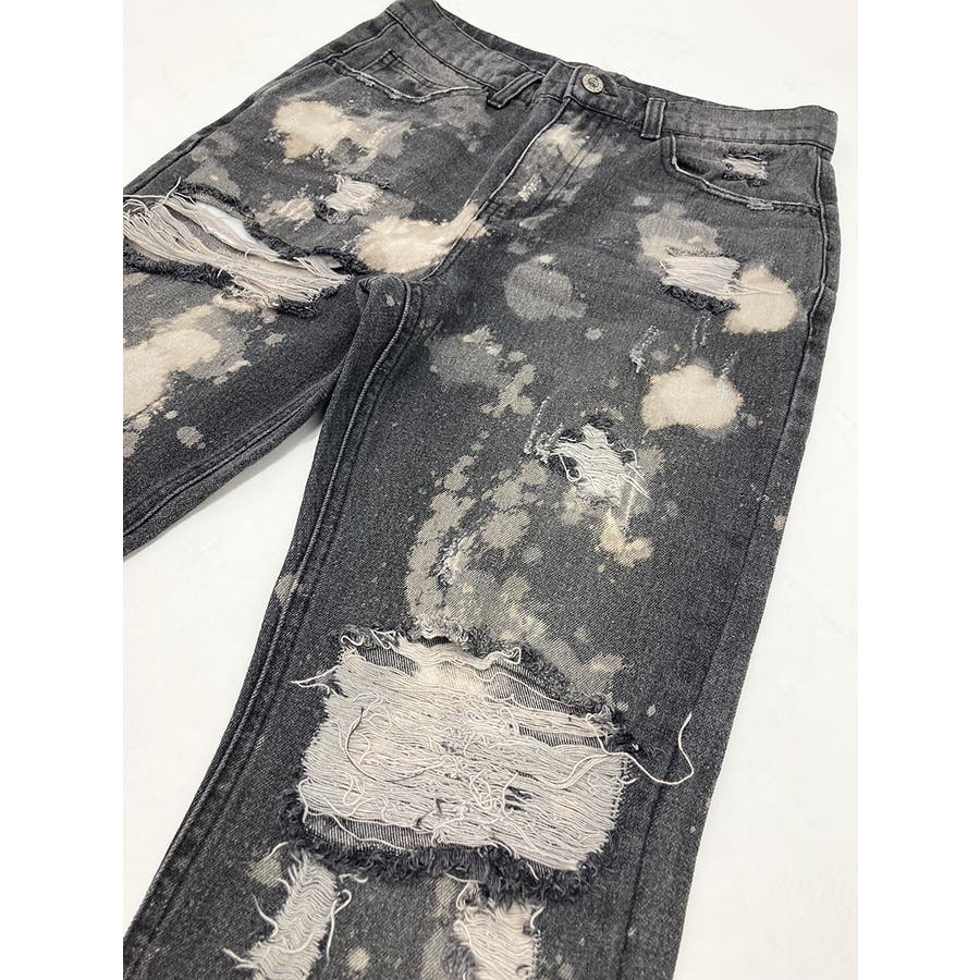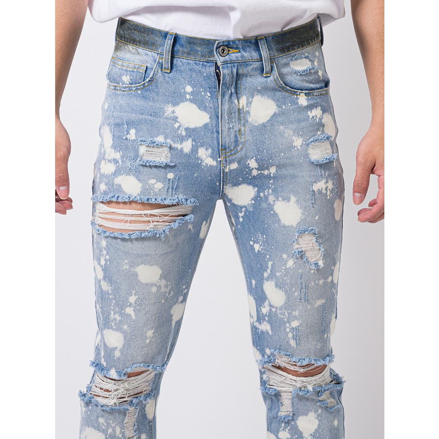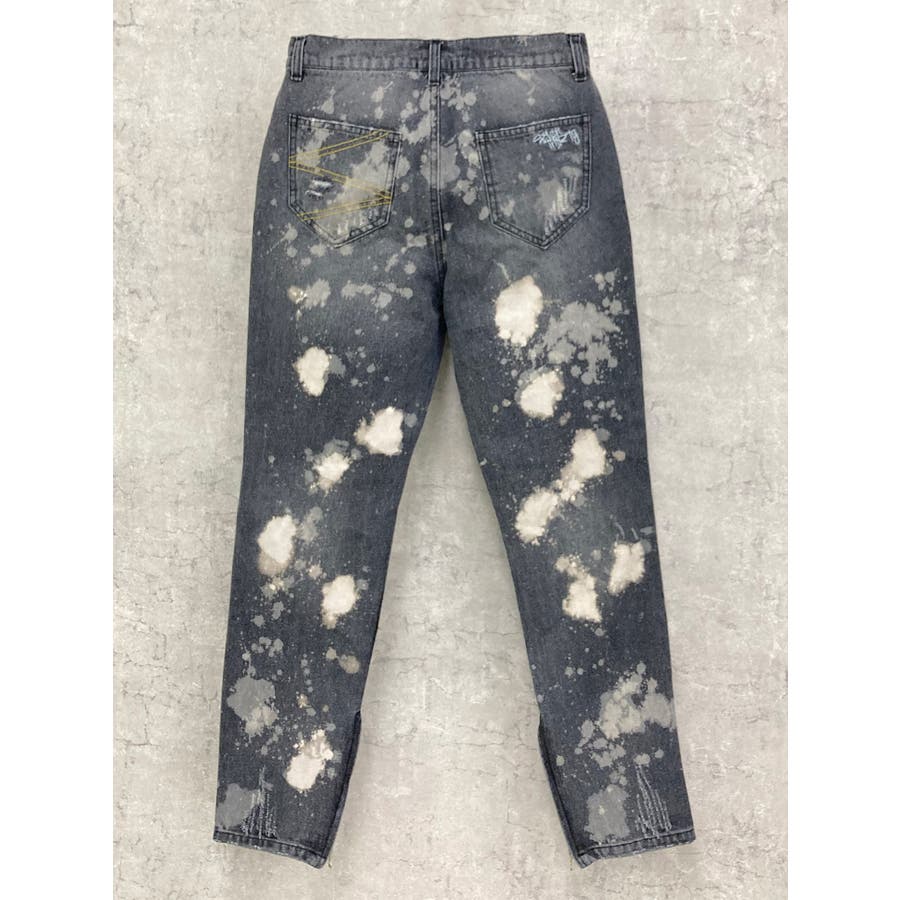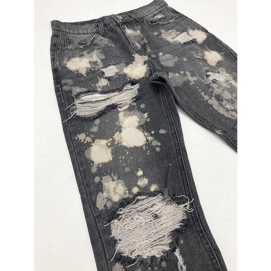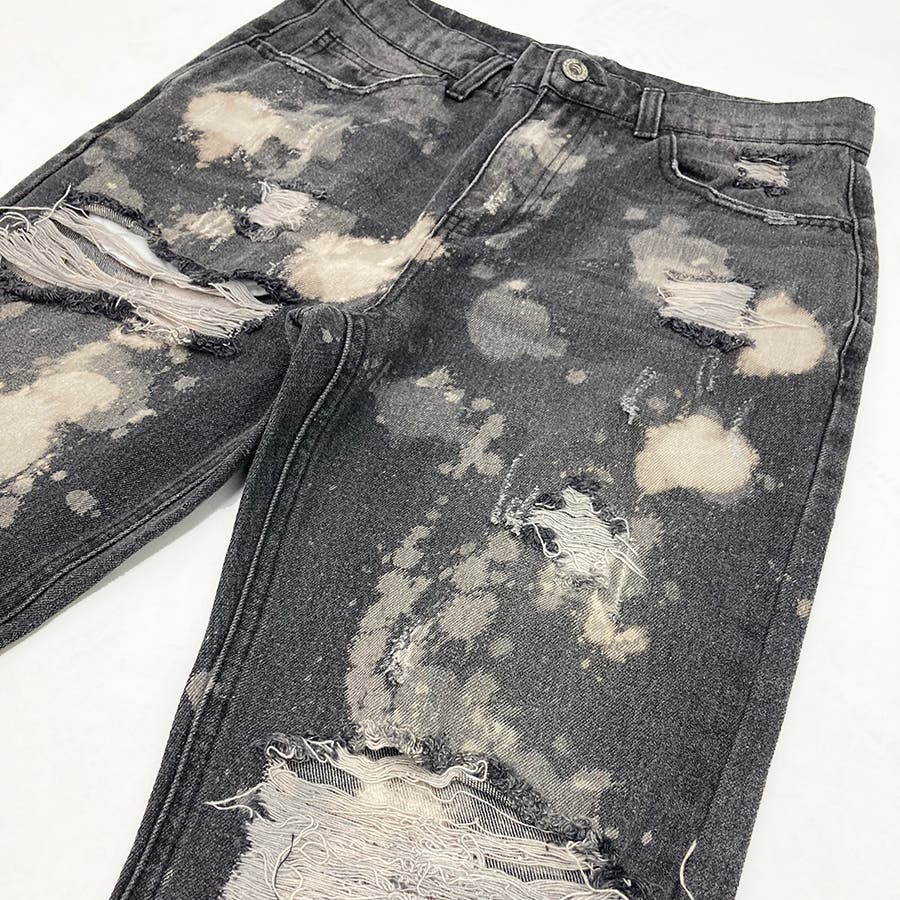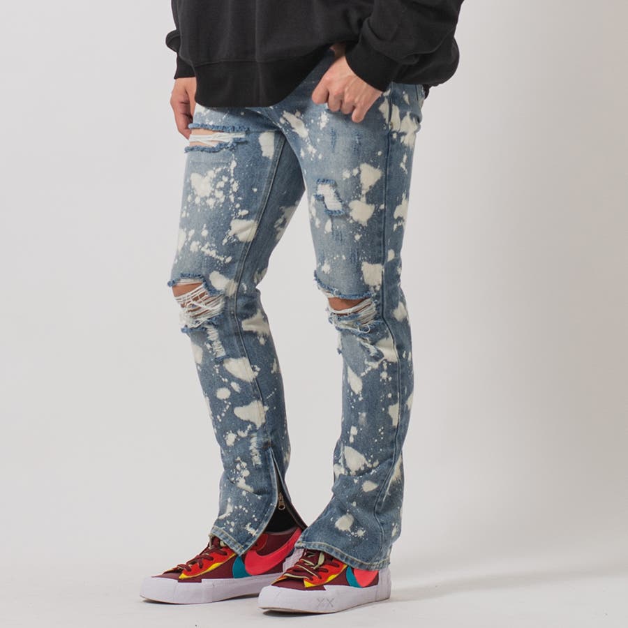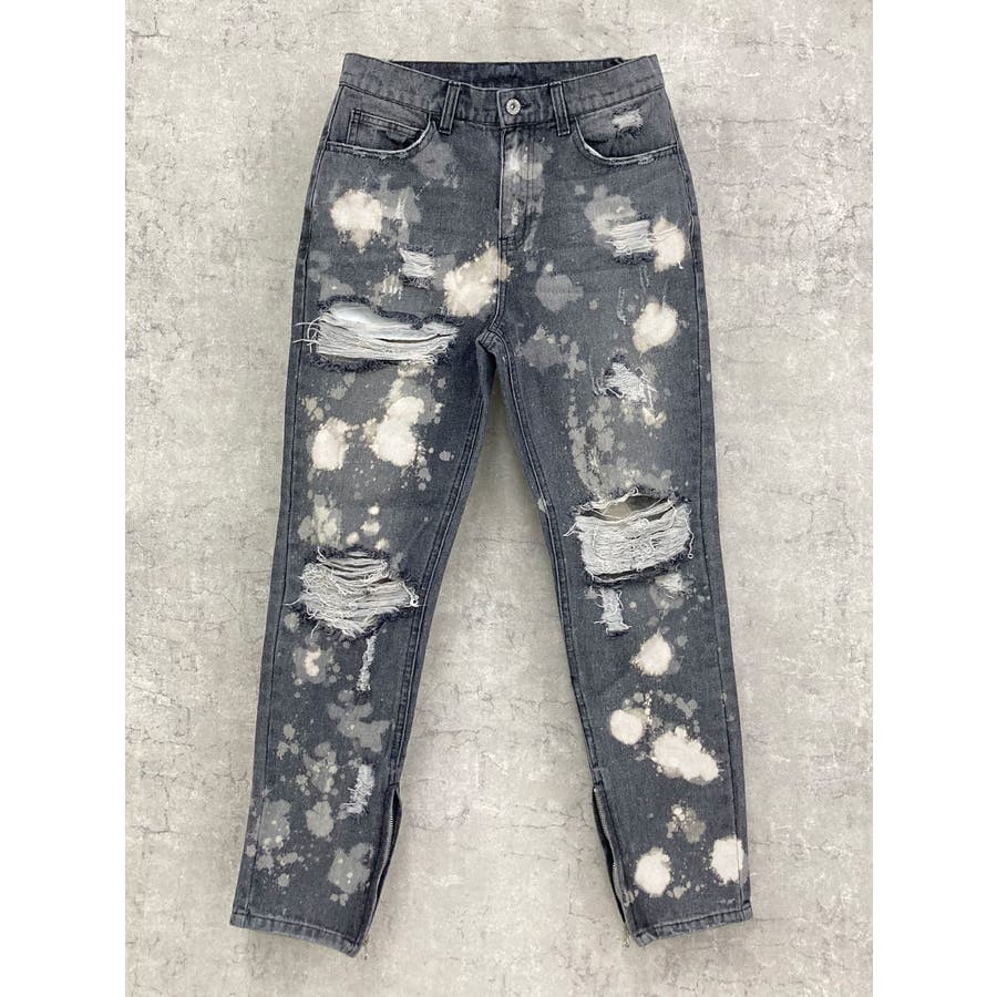 デニム ダメージ ブリーチ スリムパンツ 韓国 ストリート系