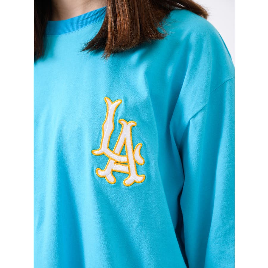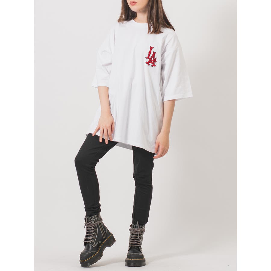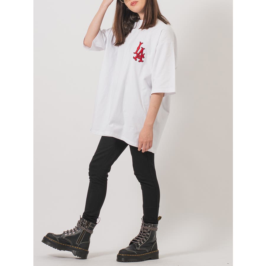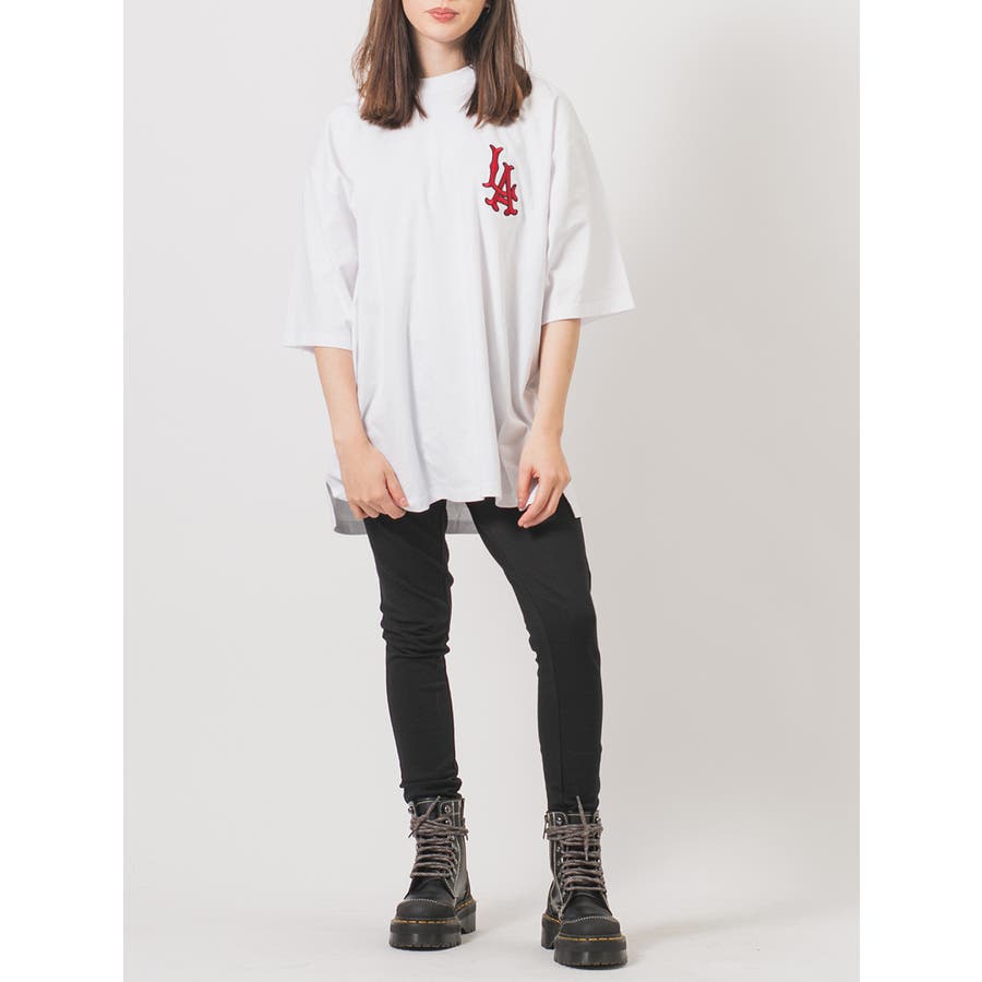 胸のLAの刺繍が特徴的なビッグTシャツ。