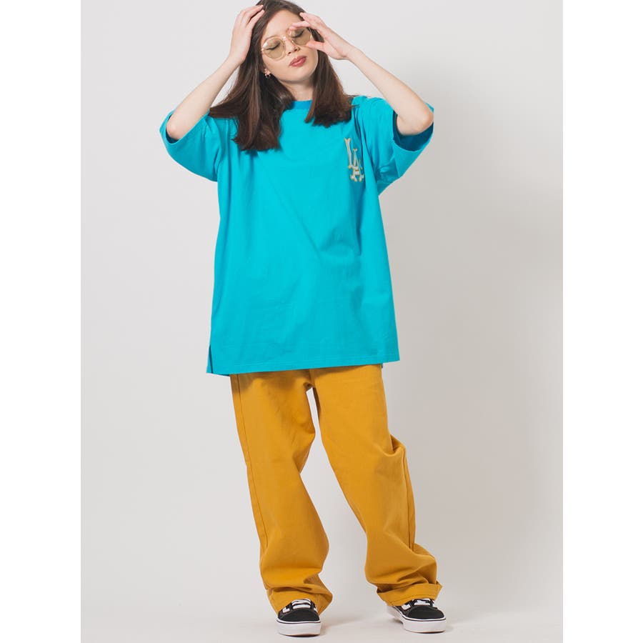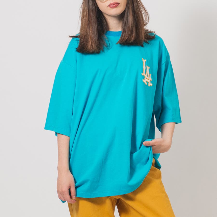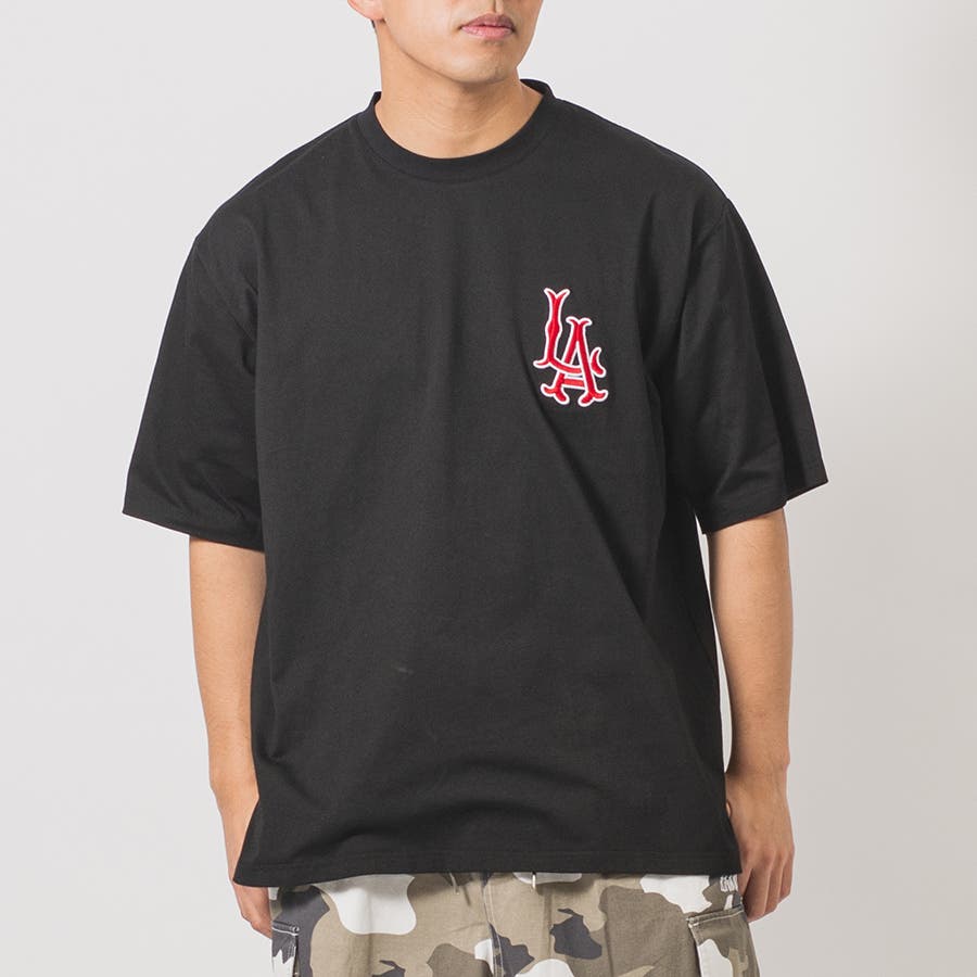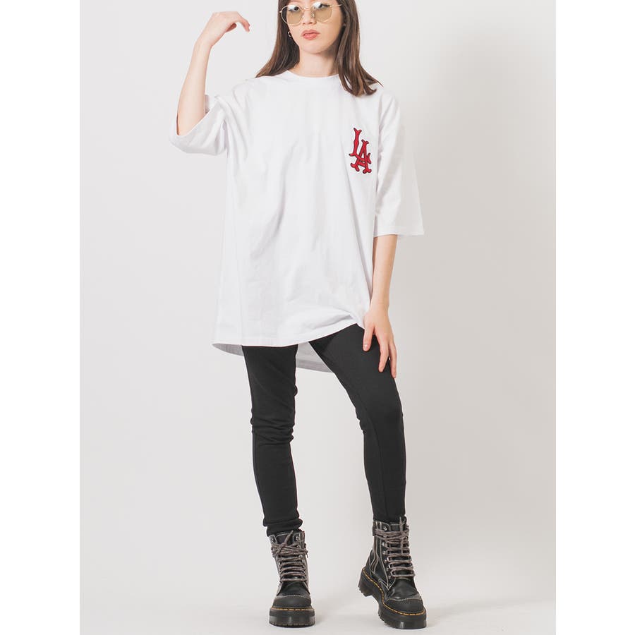 胸のLAの刺繍が特徴的なビッグTシャツ。