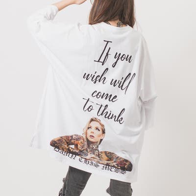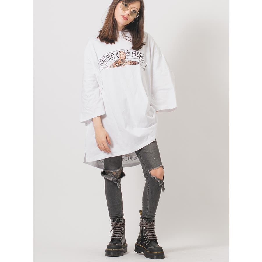 背中のフォトプリントが印象的な超ビッグシルエットなTシャツ。