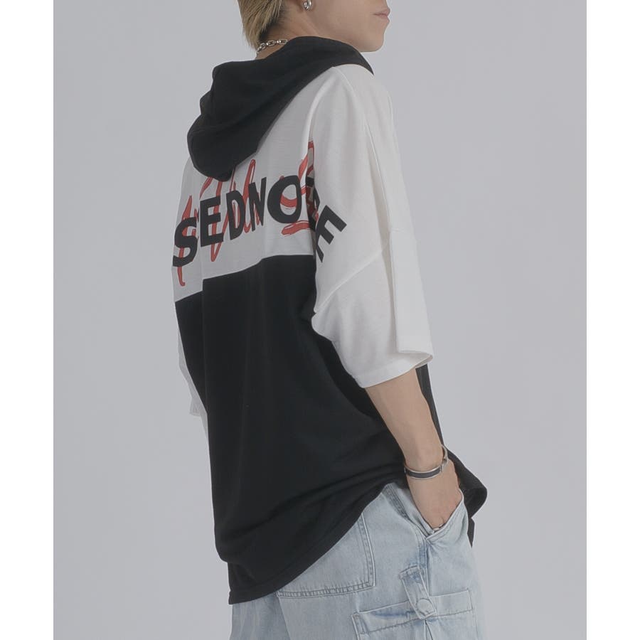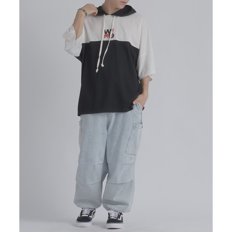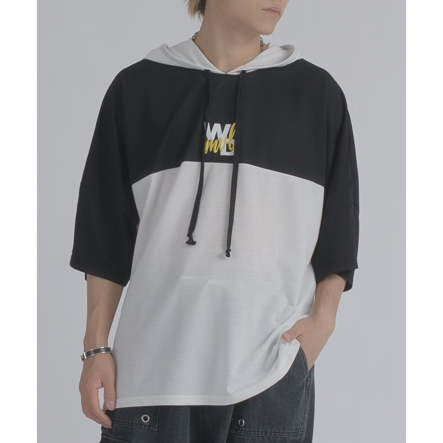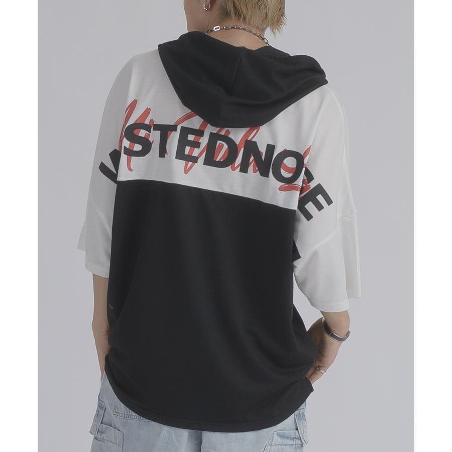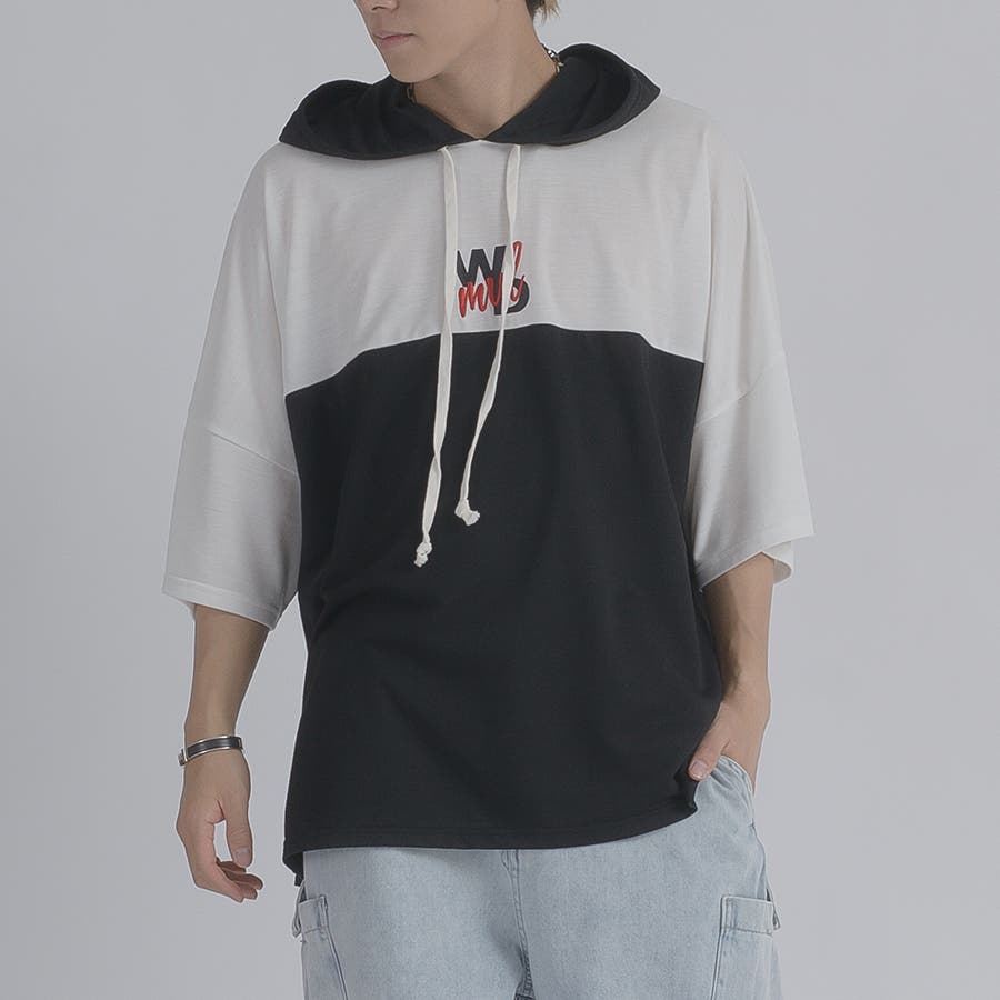 配色 バックプリント 半袖パーカー ストリート系 ビッグシルエット