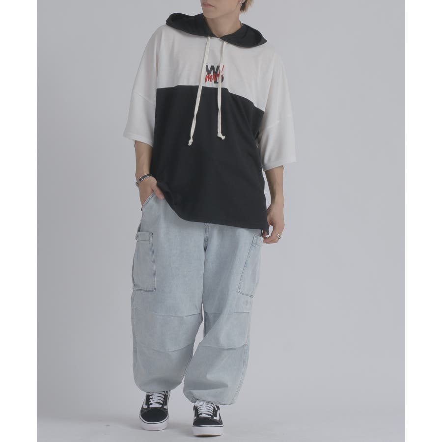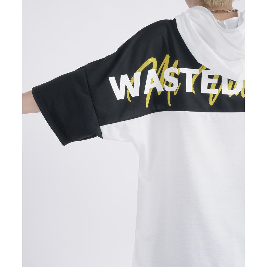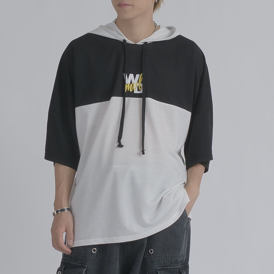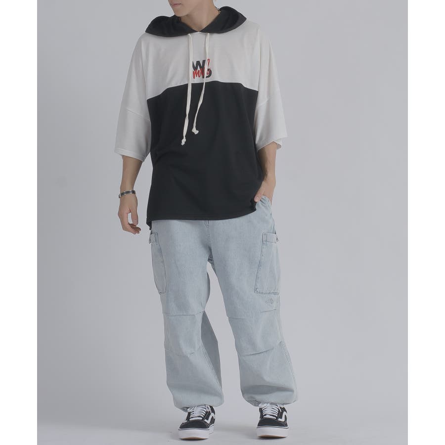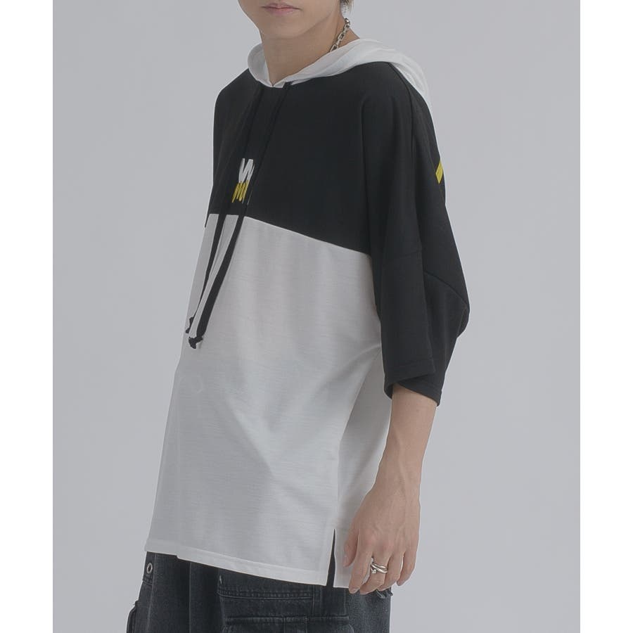 配色 バックプリント 半袖パーカー ストリート系 ビッグシルエット