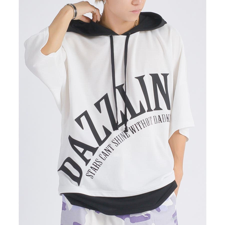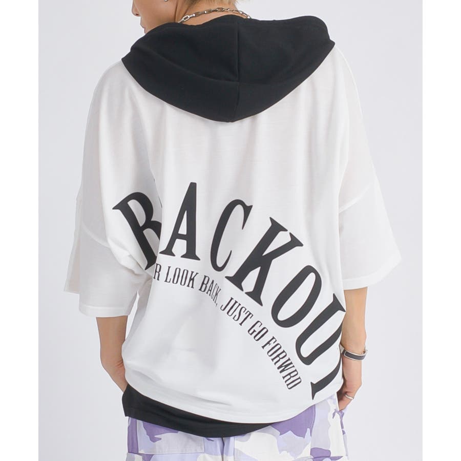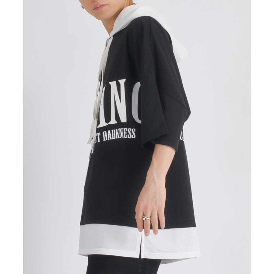 フードと裾が配色で切り替えられたデザインは、Tシャツの中にレイヤード(重ね着)しているようで単品でも印象的なアイテム。