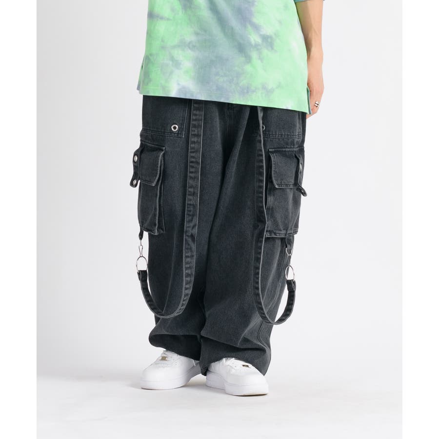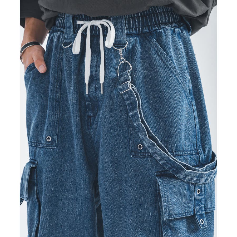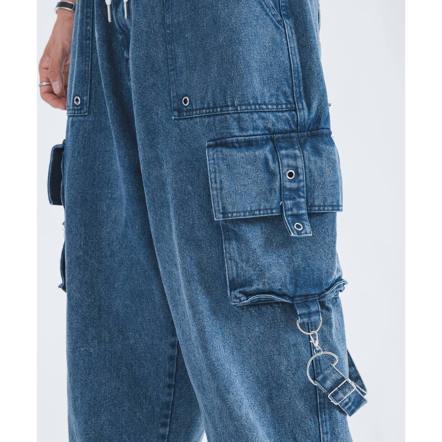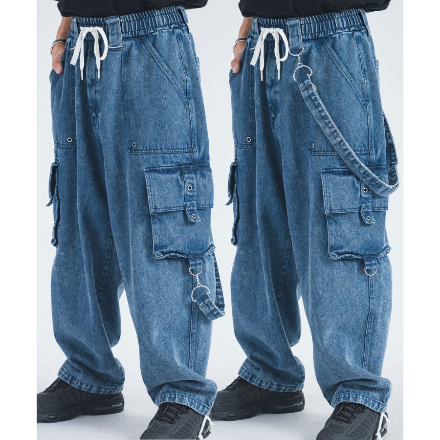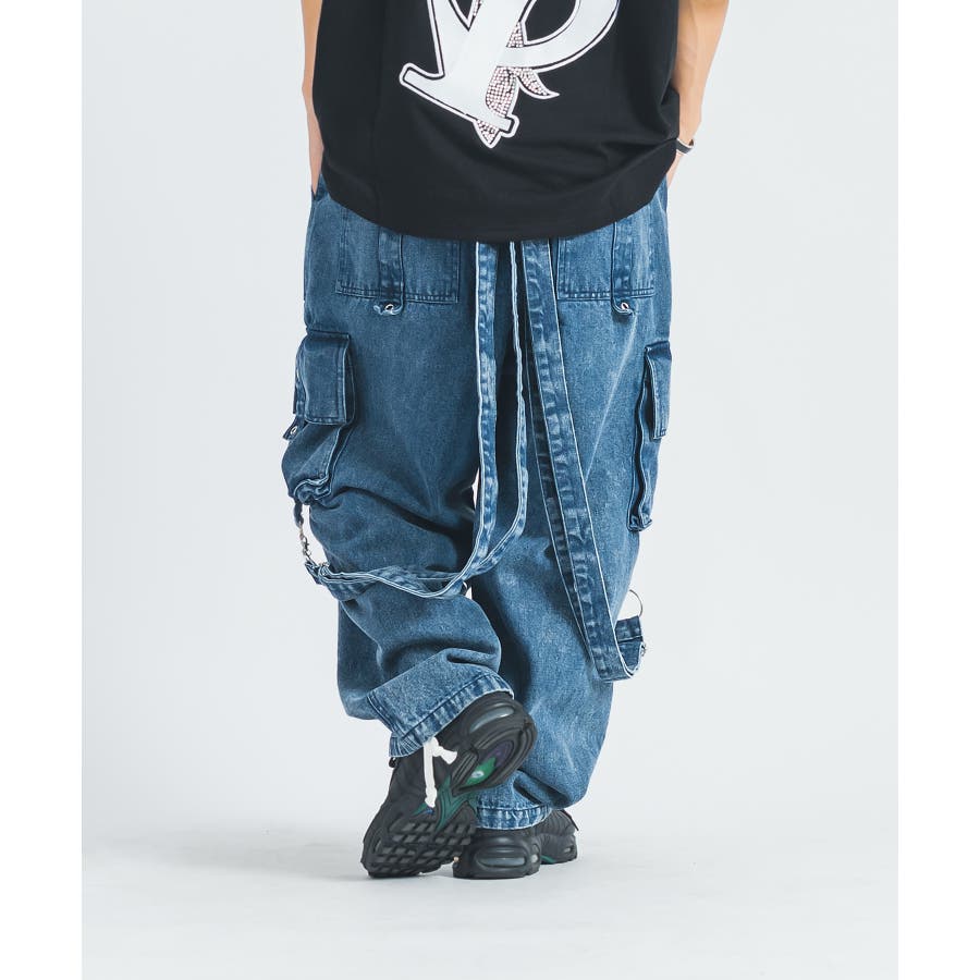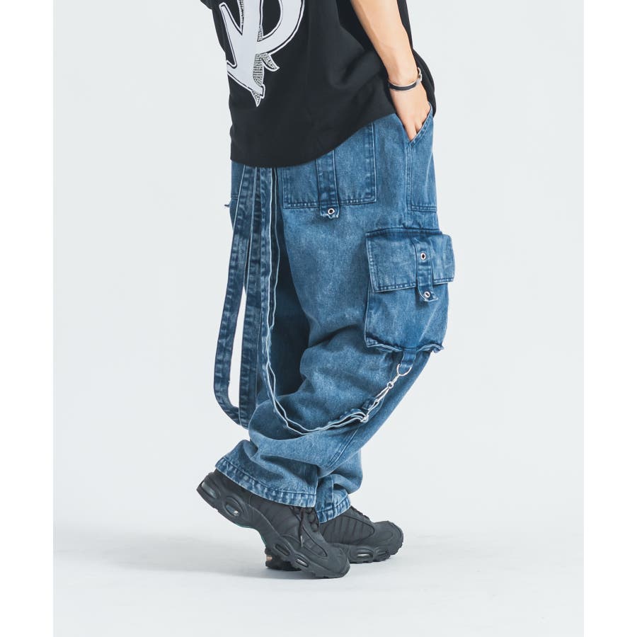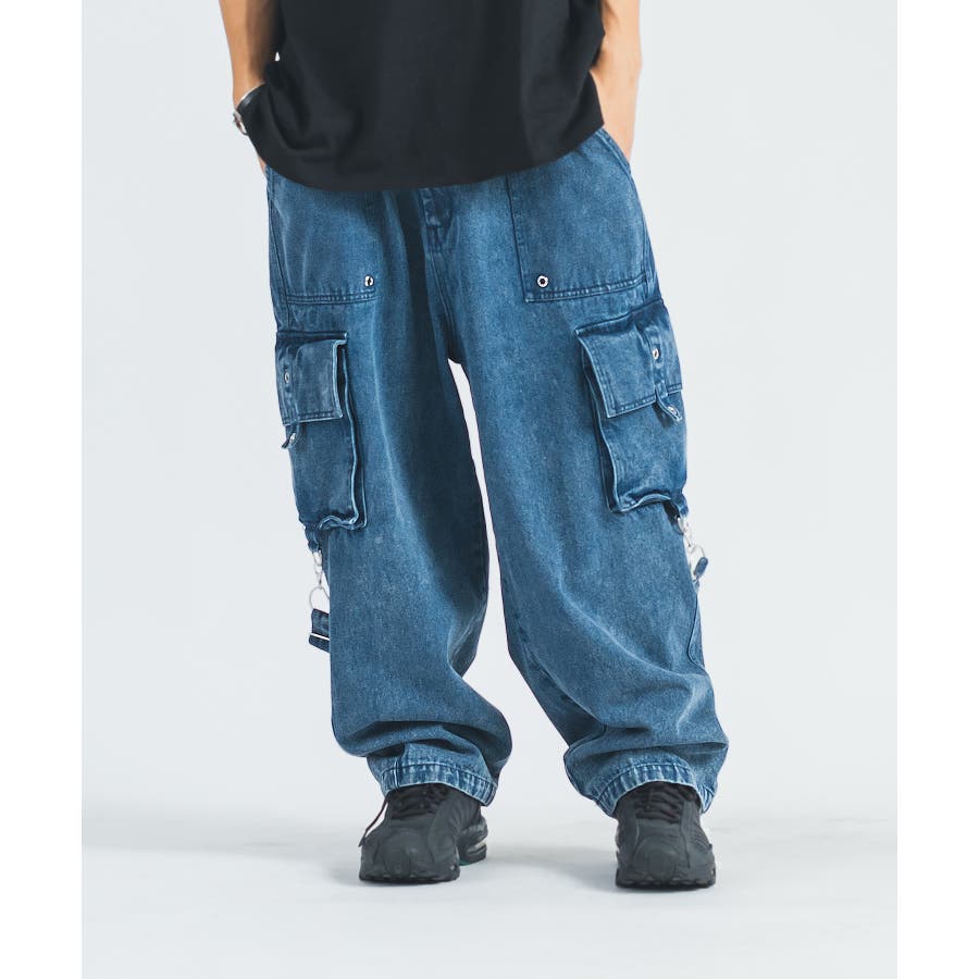 ワイド デニム カーゴパンツ ストリート系