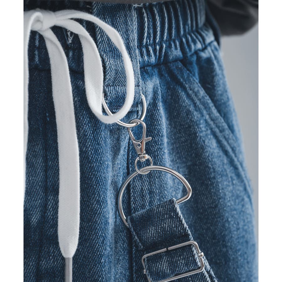 サスペンダーの様な長めのベルトは、さまざまな見せ方をアレンジできる様にスナップフックで付け替えが可能。