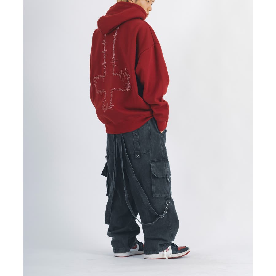ギミック満載のデザインでベルトの位置を付け替えて楽しめ、裾のドローコードは絞ることで丈を調節できるだけでなく、シルエットをバルーン調にアレンジしても着用できます。