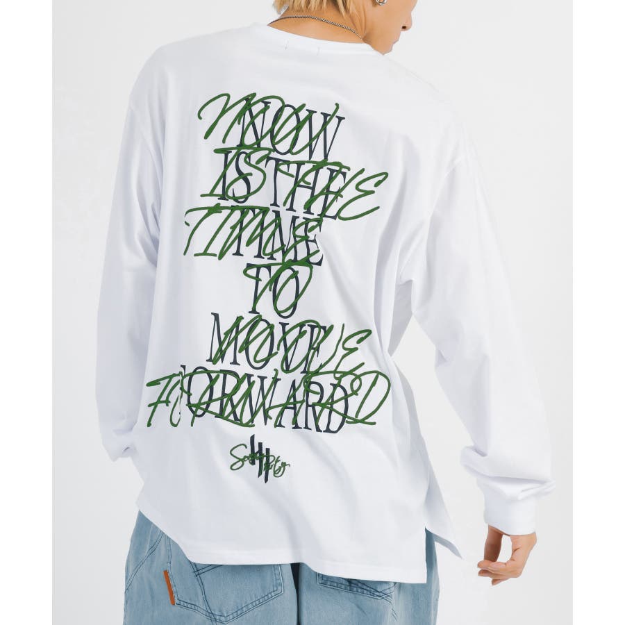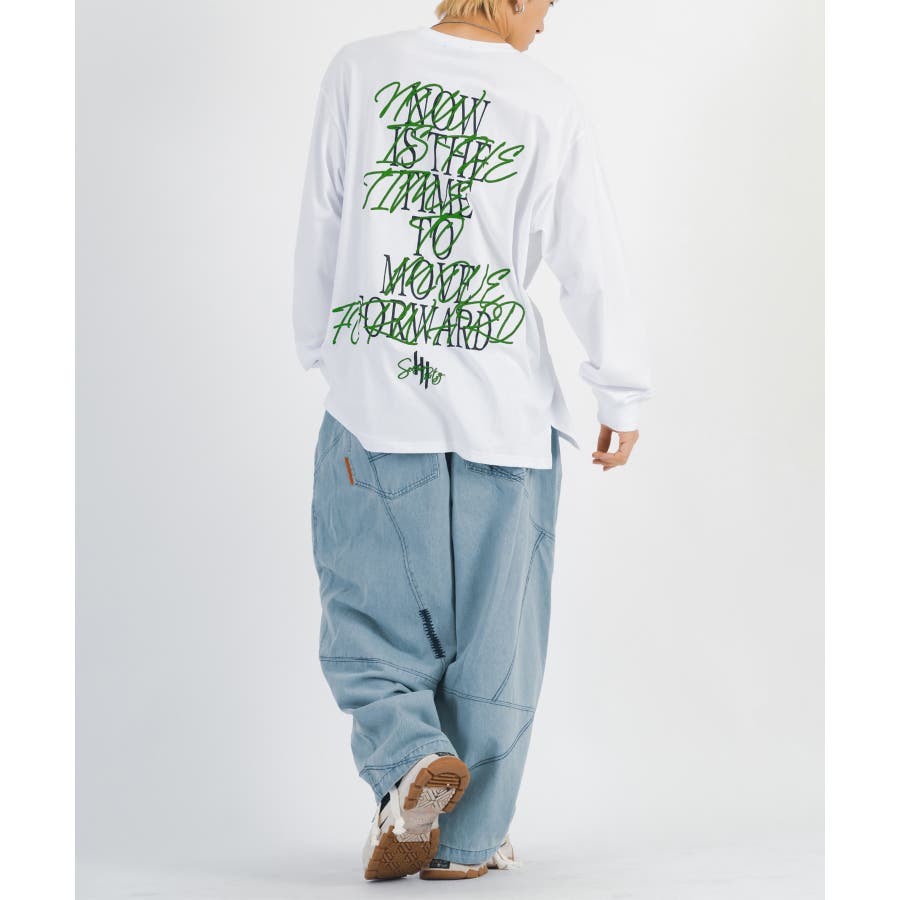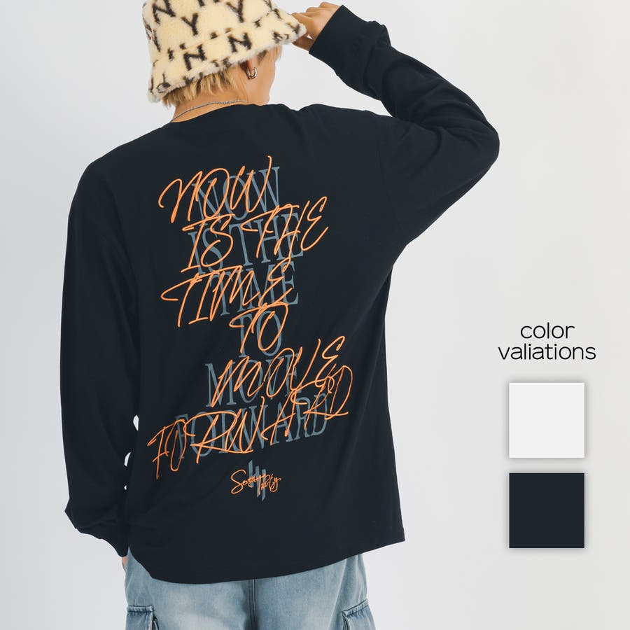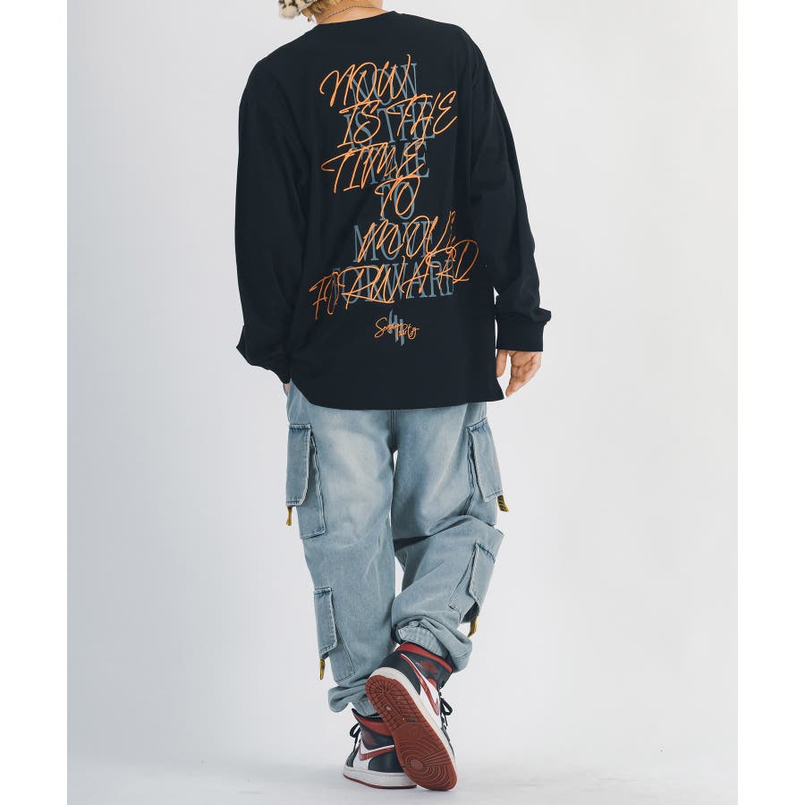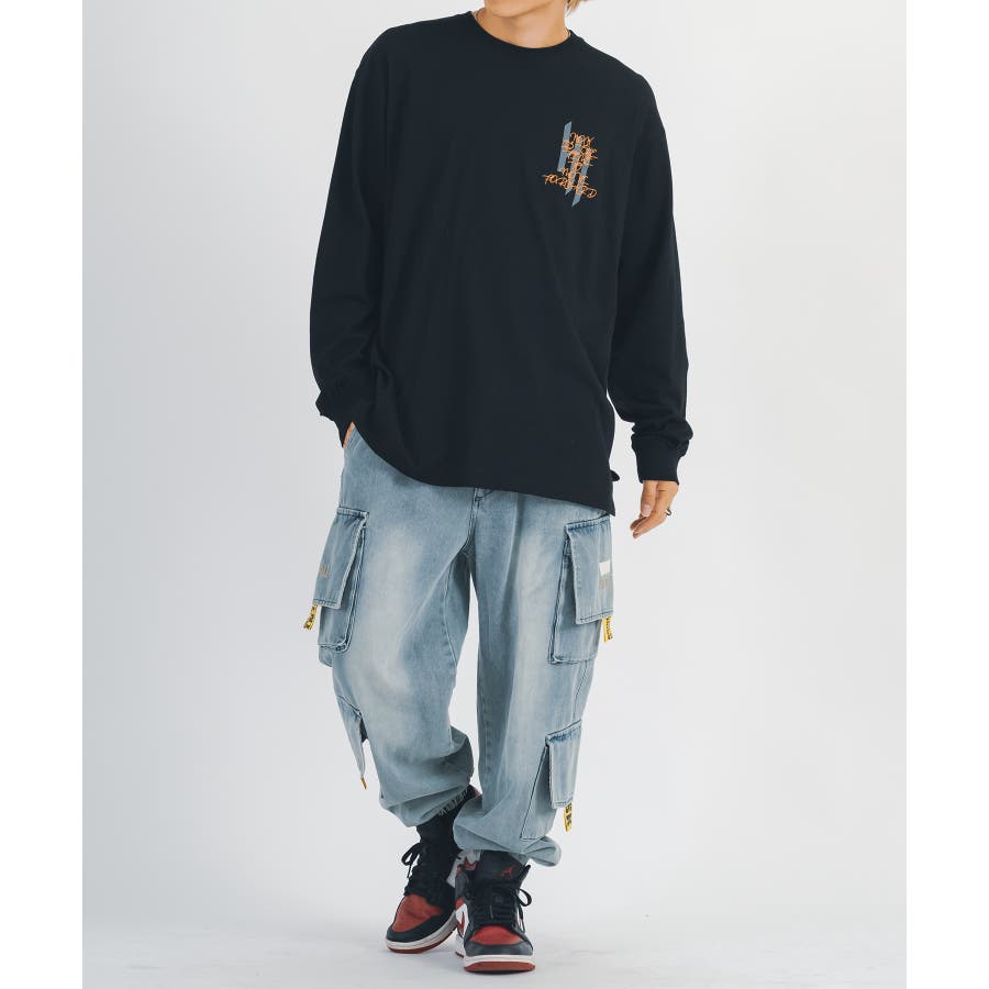 コットン100%でロンTで王道の天竺を採用しストリートスタイルにピッタリな風合い。