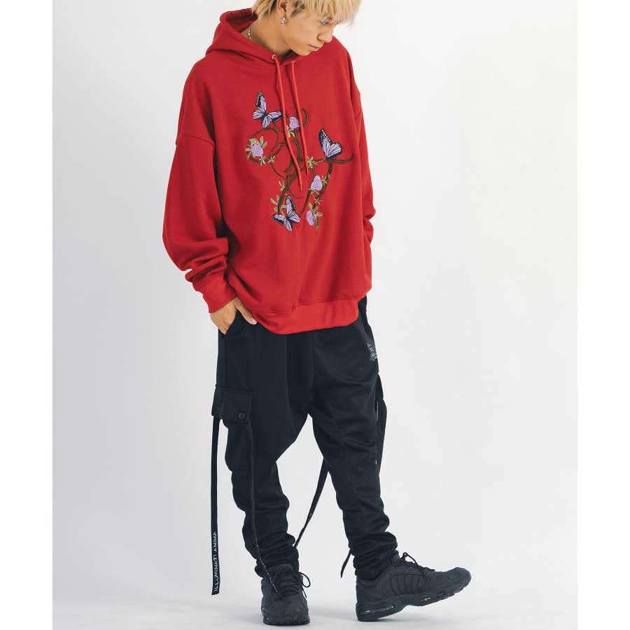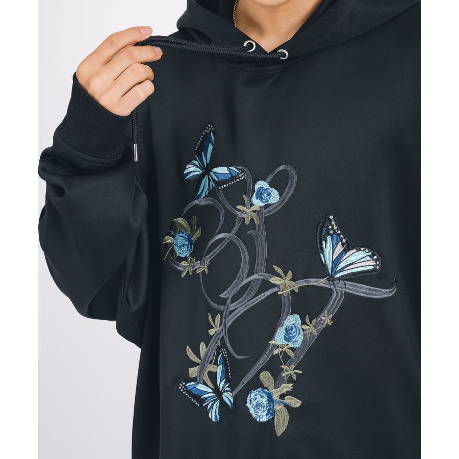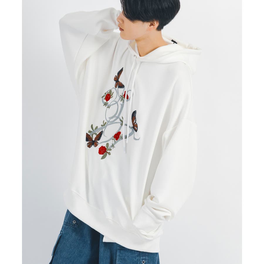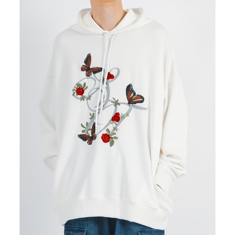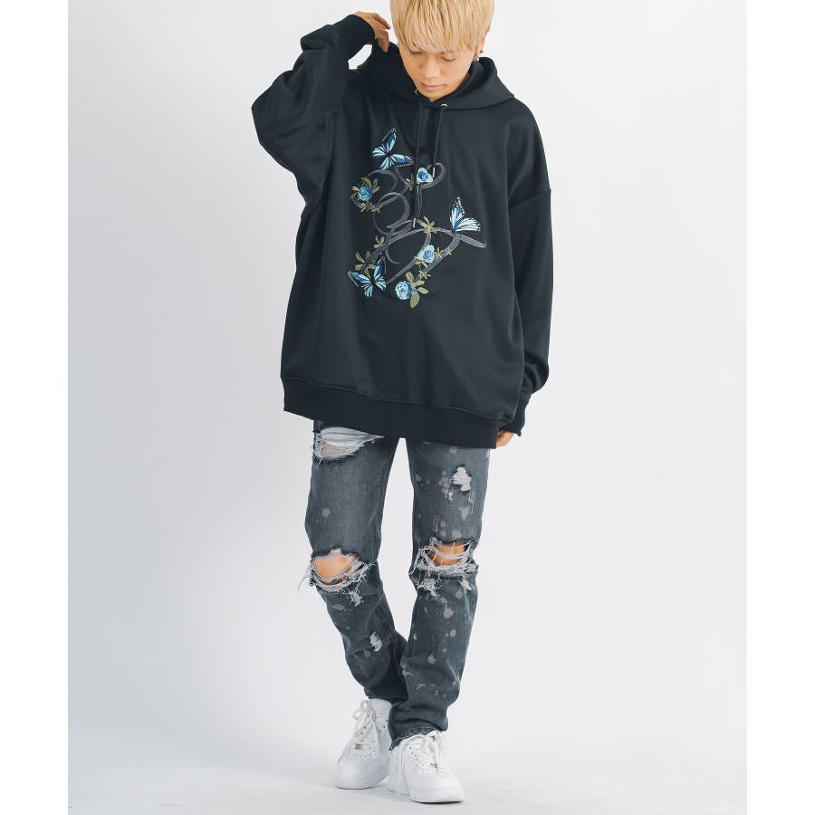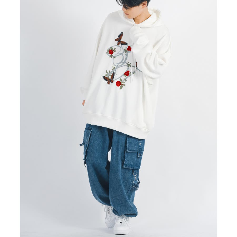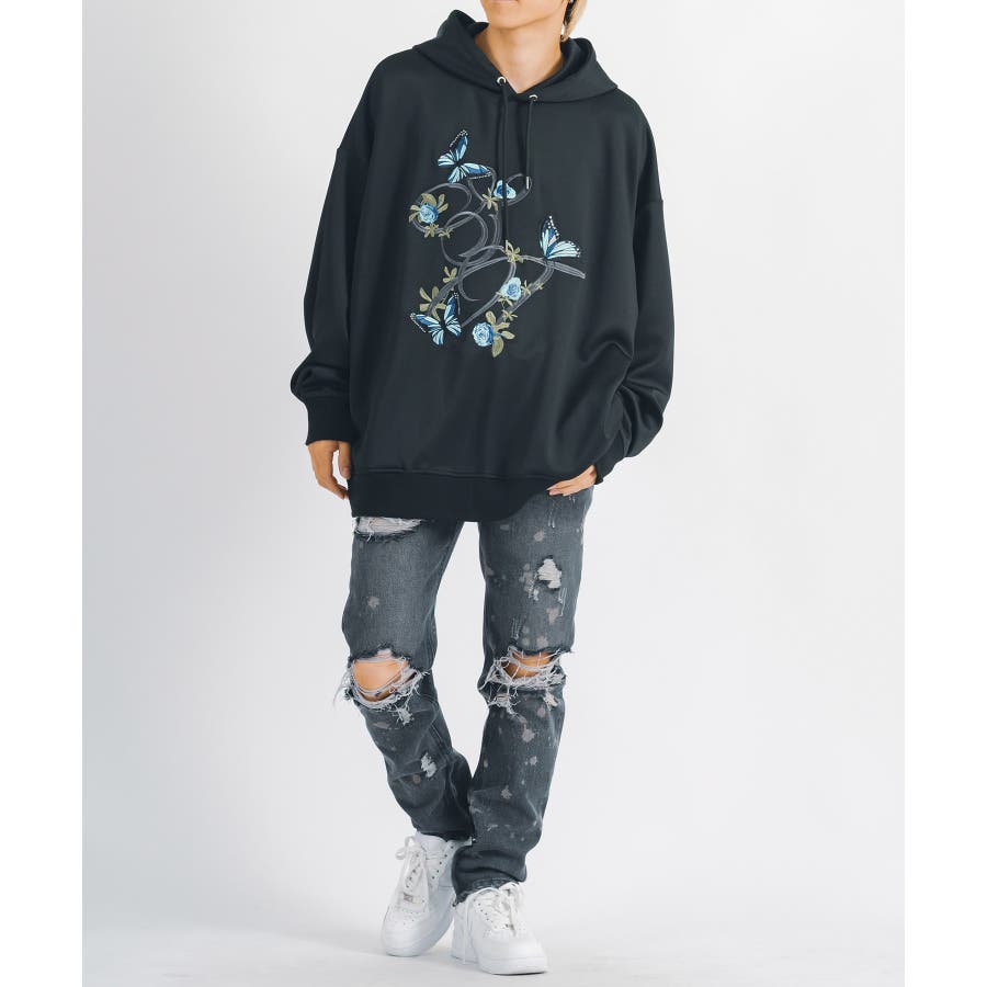 バタフライ刺繍 パーカー メンズ ストリート系 ビッグシルエット