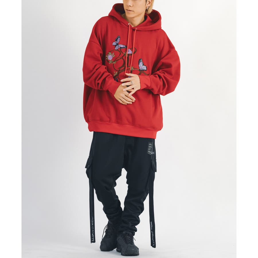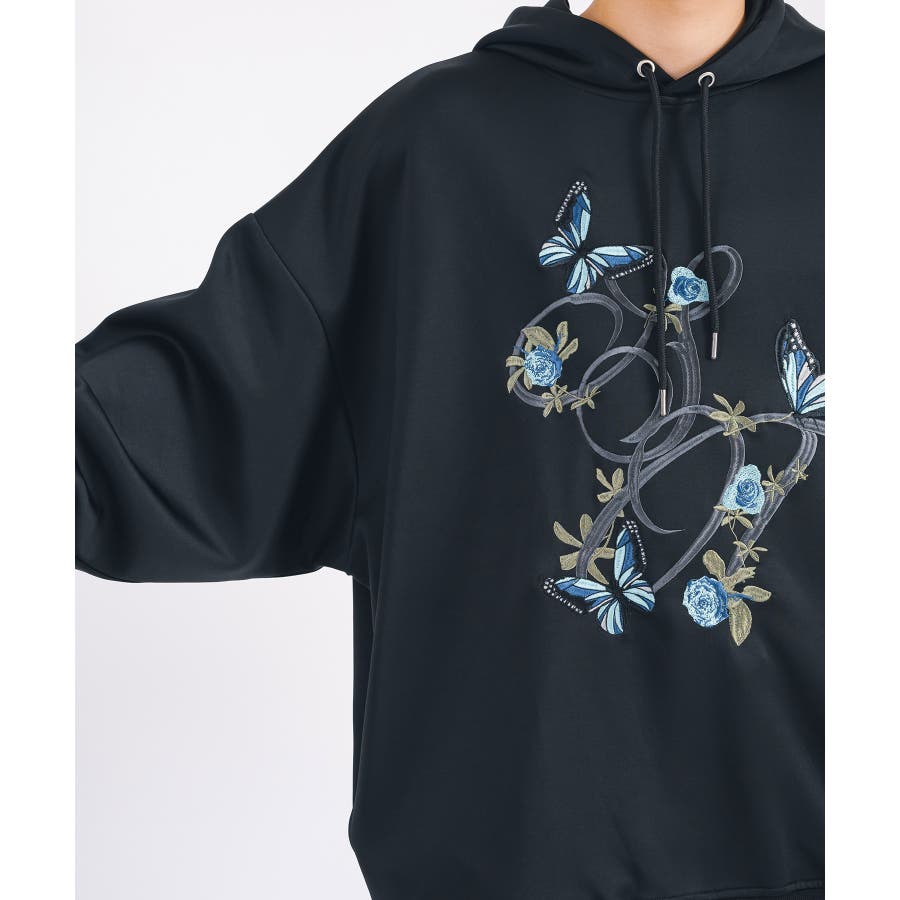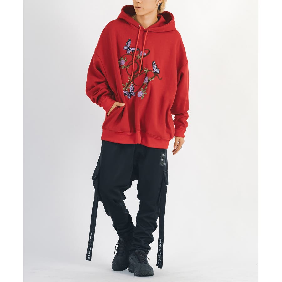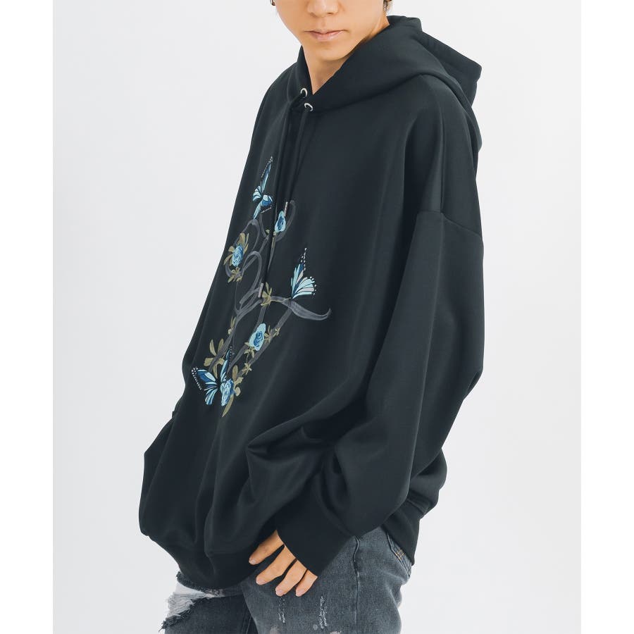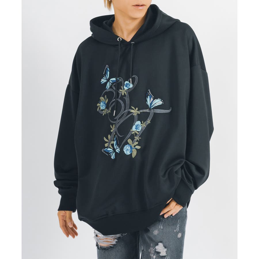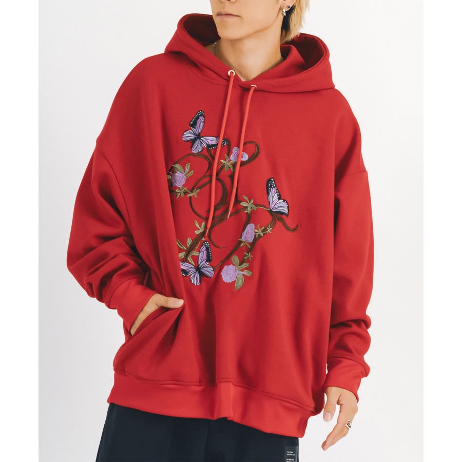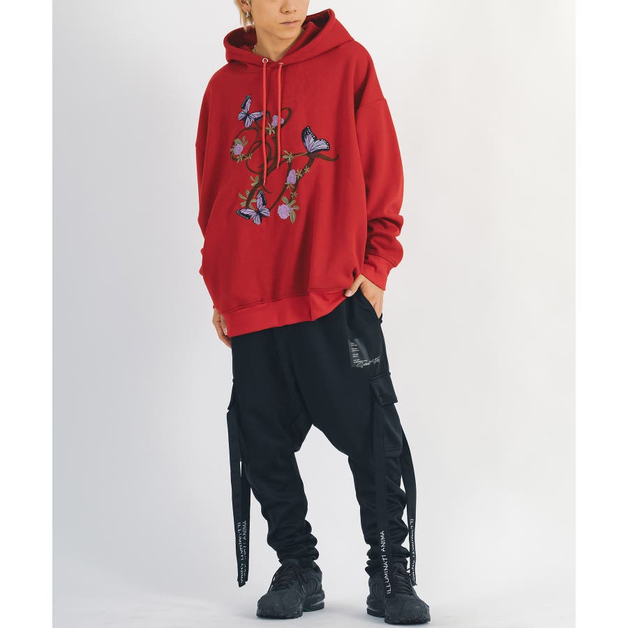 バタフライ刺繍 パーカー メンズ ストリート系 ビッグシルエット