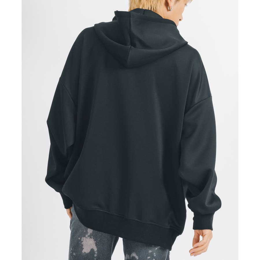 オーバーサイズでルーズなシルエットは、たいとなスキニーでもルーズなワイドパンツにもマッチしユニセックスなアイテム。プルオーバーだからアウターのインナーにも着こなしやすい。