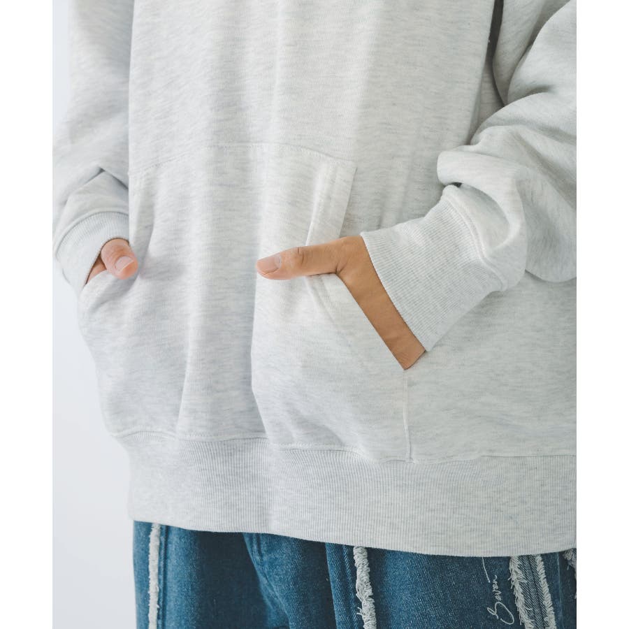 オーバーサイズでルーズなシルエットは、タイトなスキニーでもルーズなワイドパンツにもマッチするユニセックスなアイテム。プルオーバーだからアウターのインナーにも着こなしやすいアイテムです。男性モデル情報:170cm、Lサイズ着用