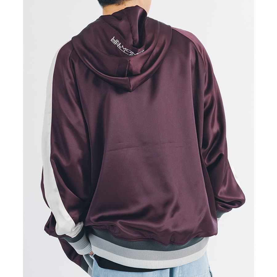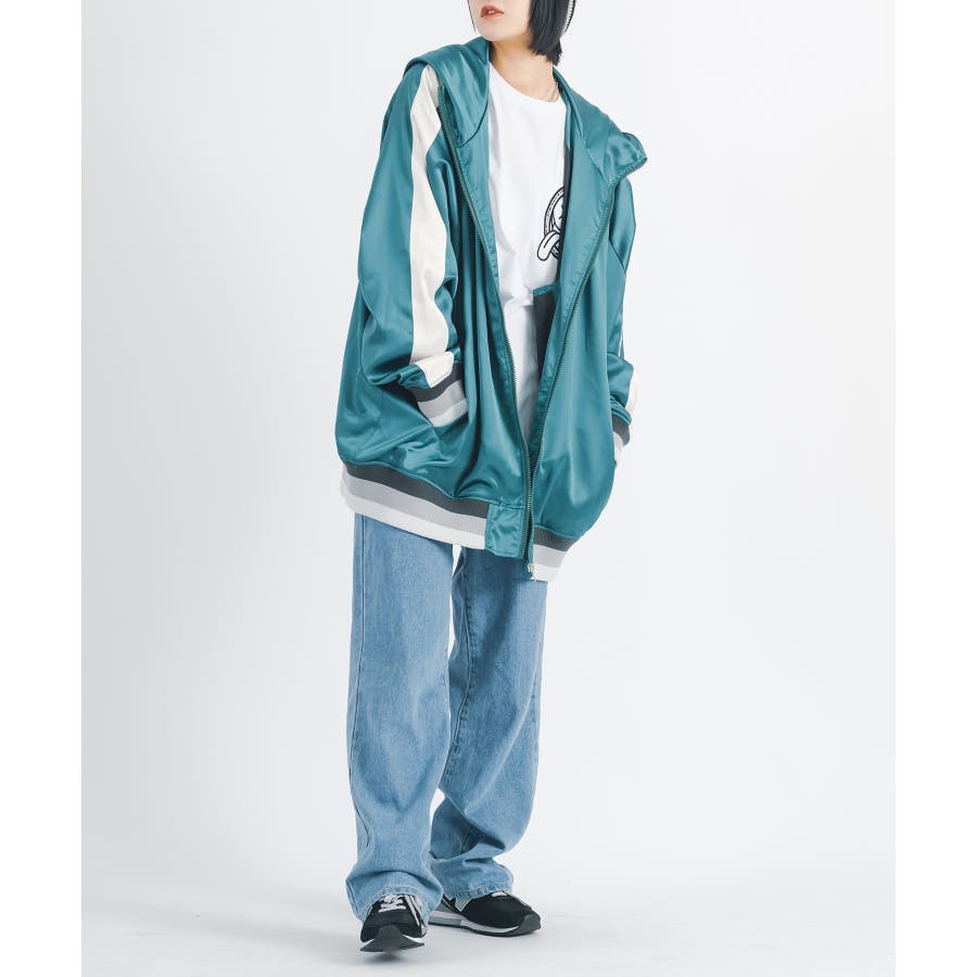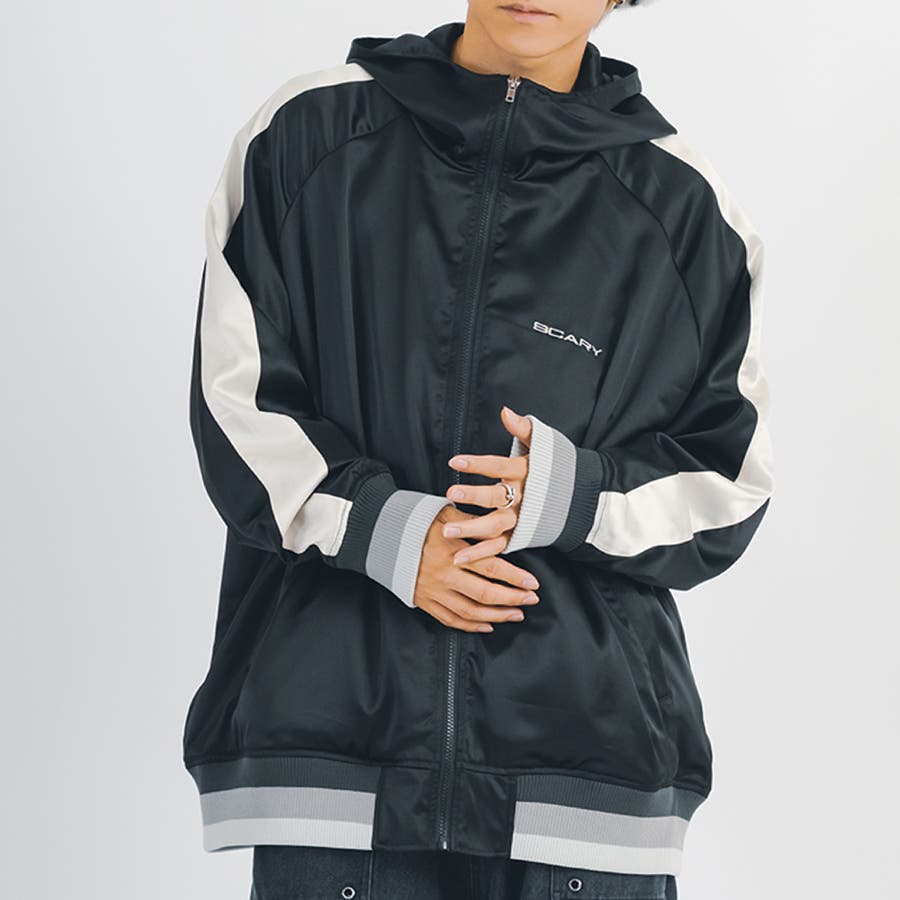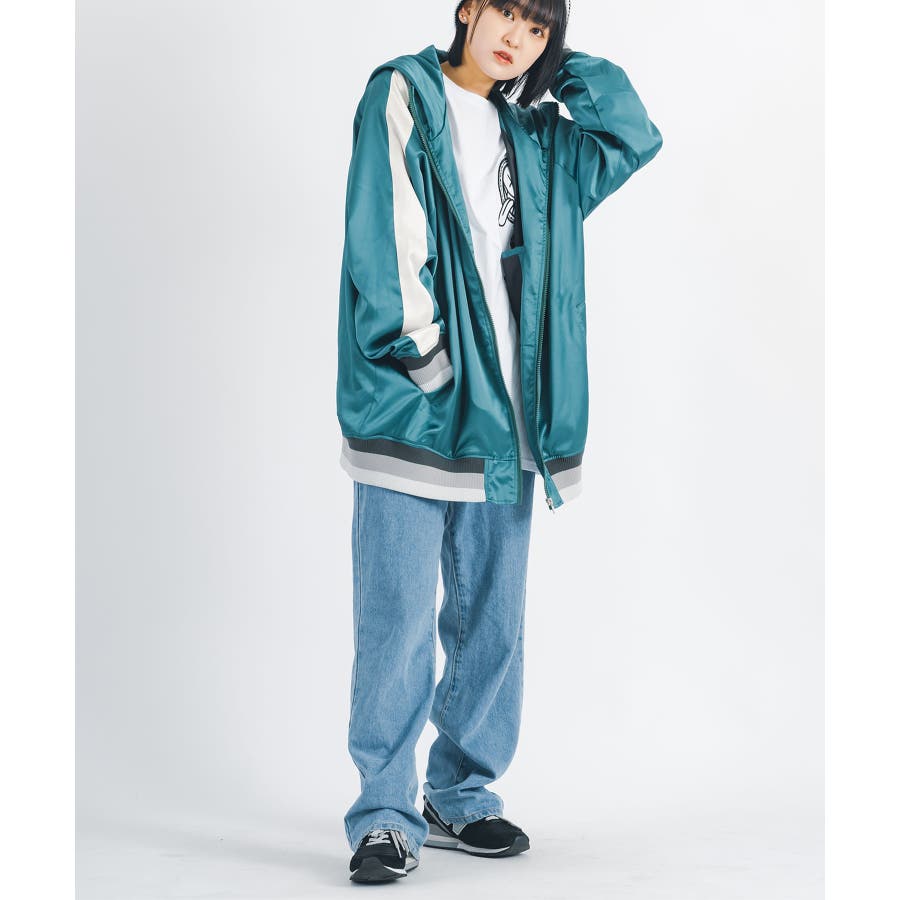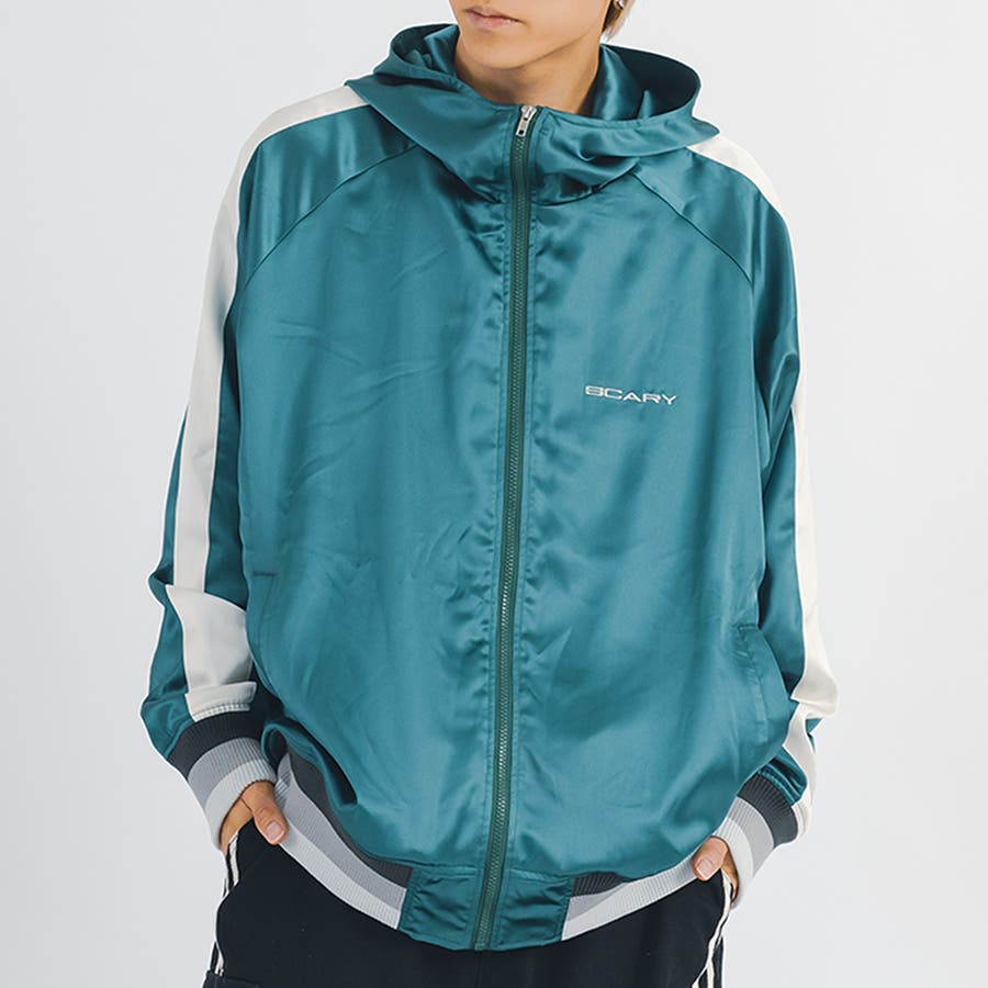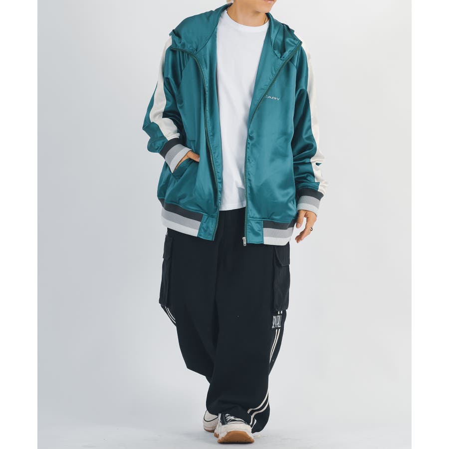 ポリエステルのサテン生地を使用し、スカジャンのような光沢感がクールで着心地もソフト。