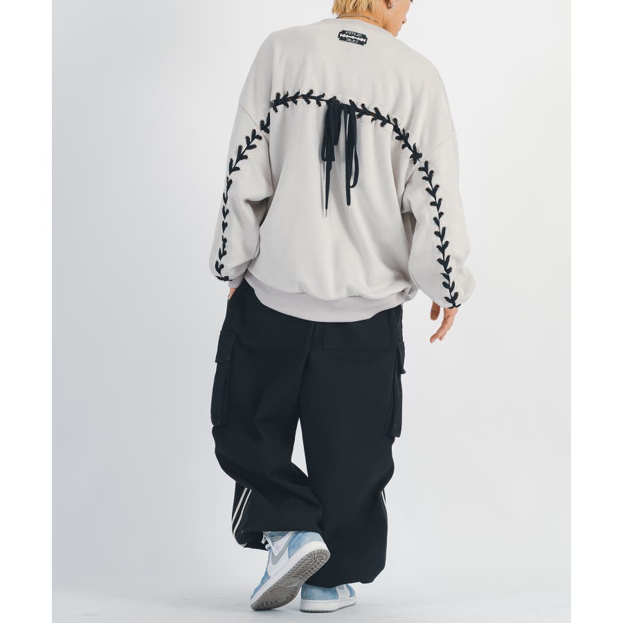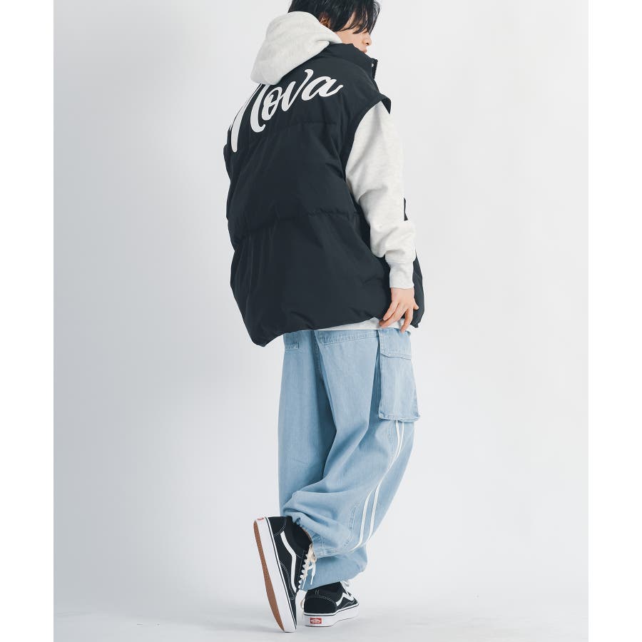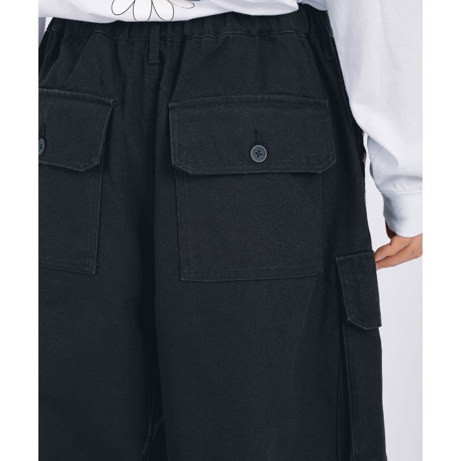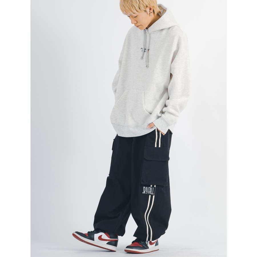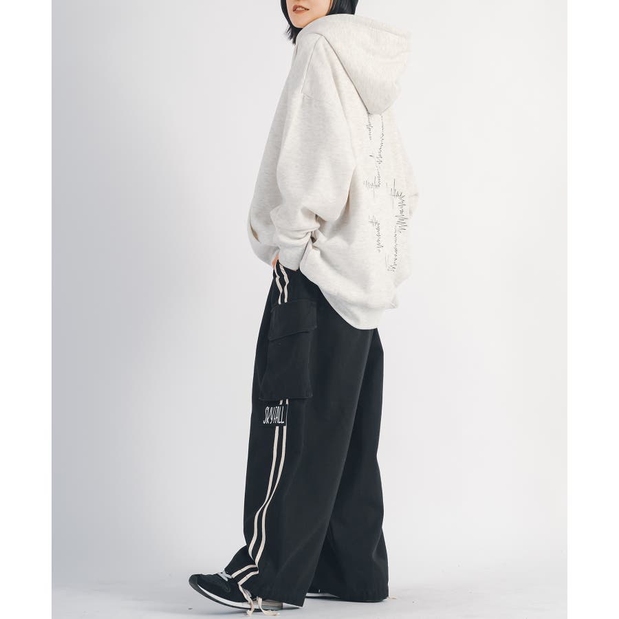 太腿から膝にかけて緩く、裾を絞った提灯型のシルエットはよりワイド感がクールなデザイン。カーゴポケットを配置しワーク感も演出しつつ、サイドはテープによる2本ラインがアクセント。ウエストシャーリングと裾にもドローコードを備えたイージー仕様で女性でも履ける。