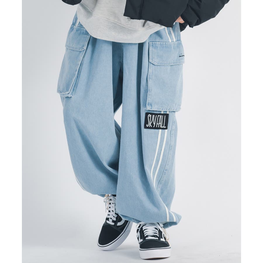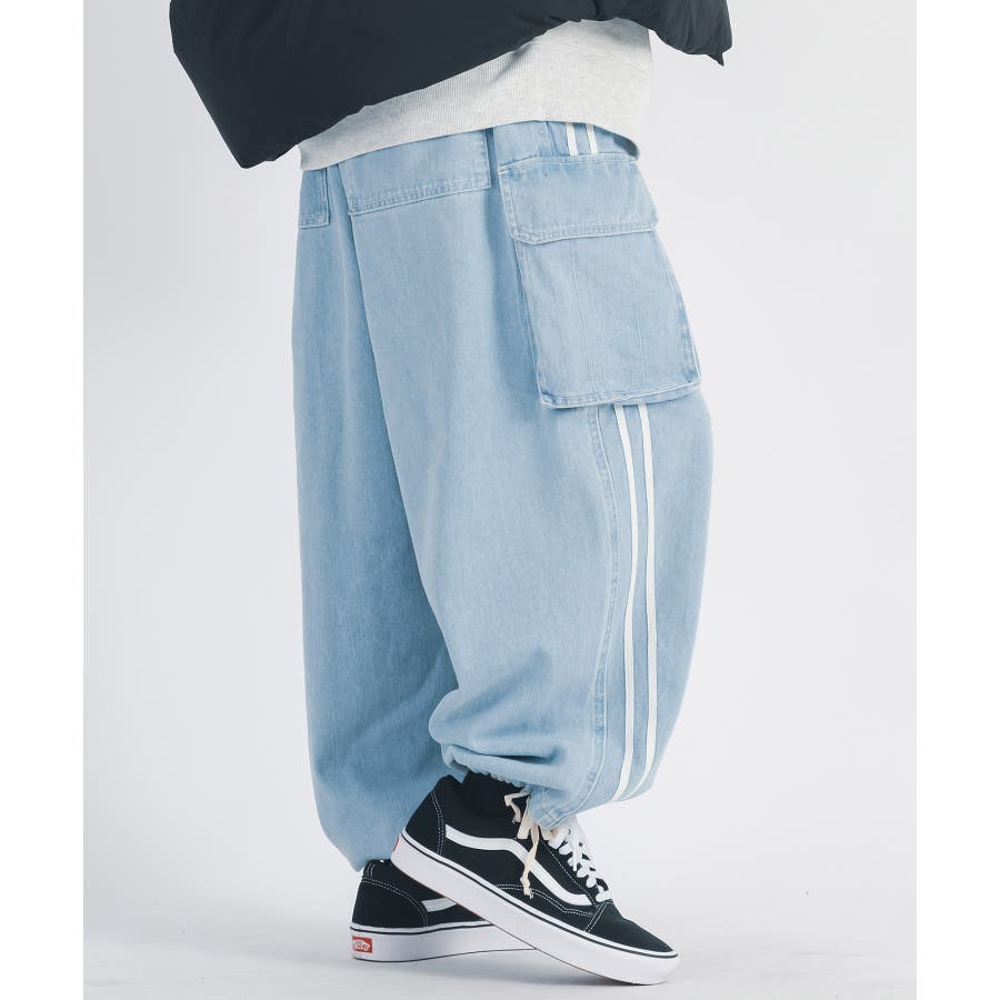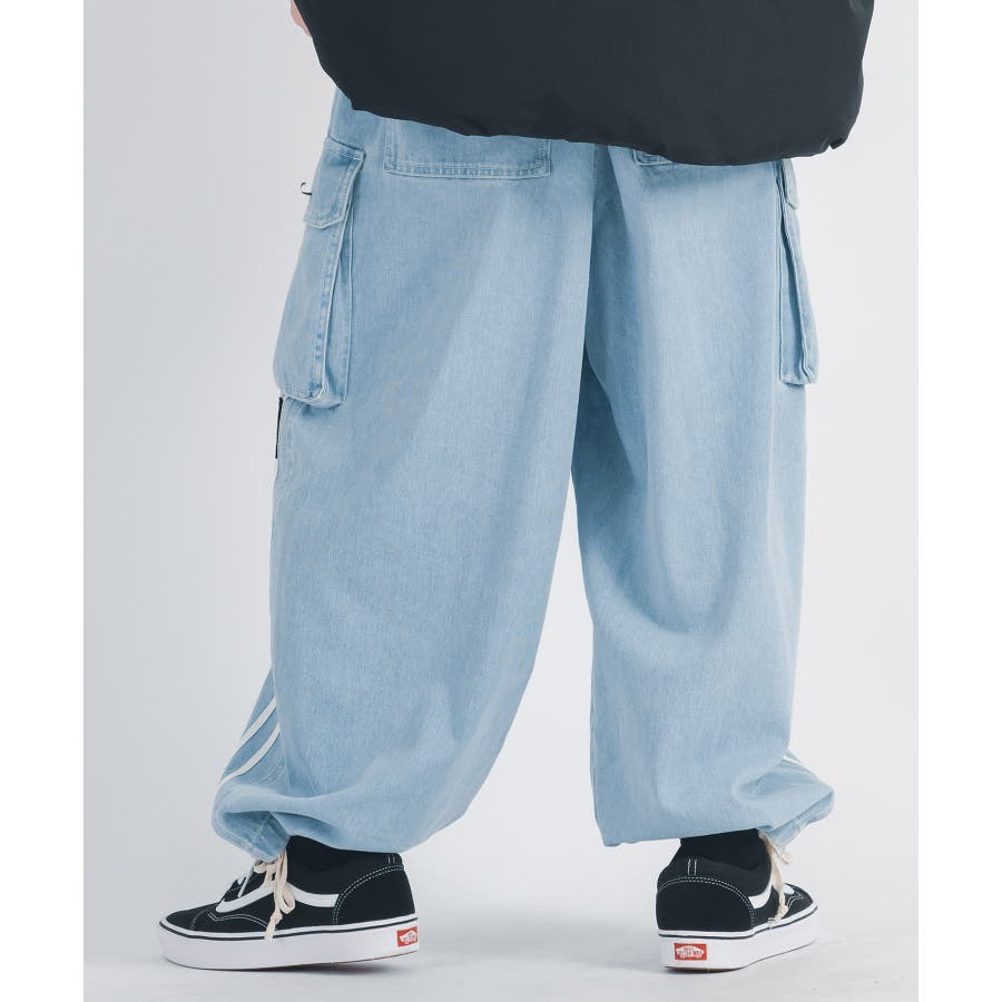 ワイドなバルーン型シルエットのデニムイージーパンツ。