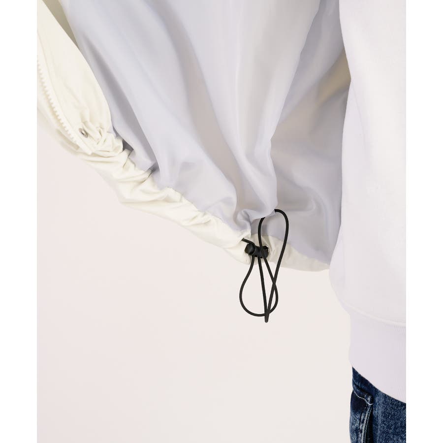 腰高の襟はスッポリ顎が収まる大きさで、防寒性と小顔効果を演出。裾のドローコードで着丈やシルエットを調整することもできます。