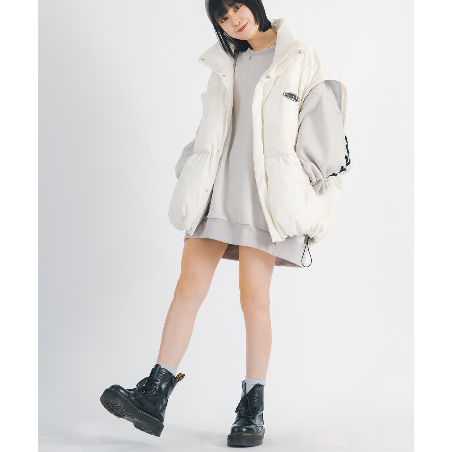 軽くて暖かいファイバーダウンを使用し、そのボリューム感ある膨らみ具合はトレンドのビッグシルエットです。