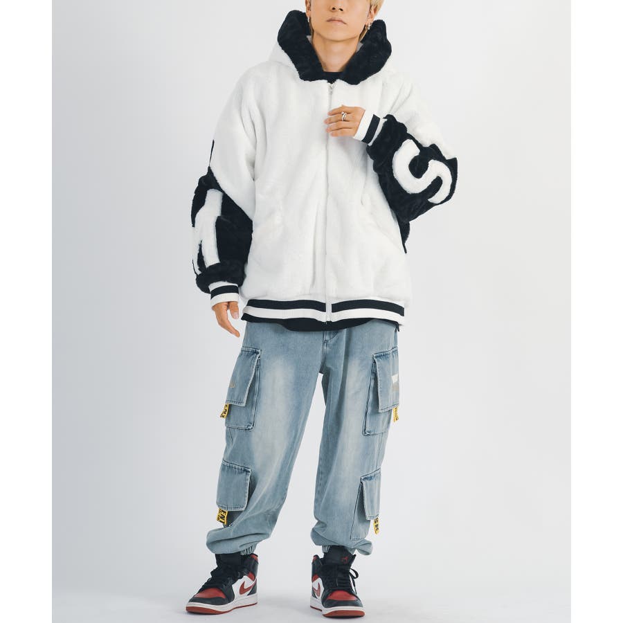 ビッグロゴ ファーブルゾン メンズ ストリート系 ビッグシルエット