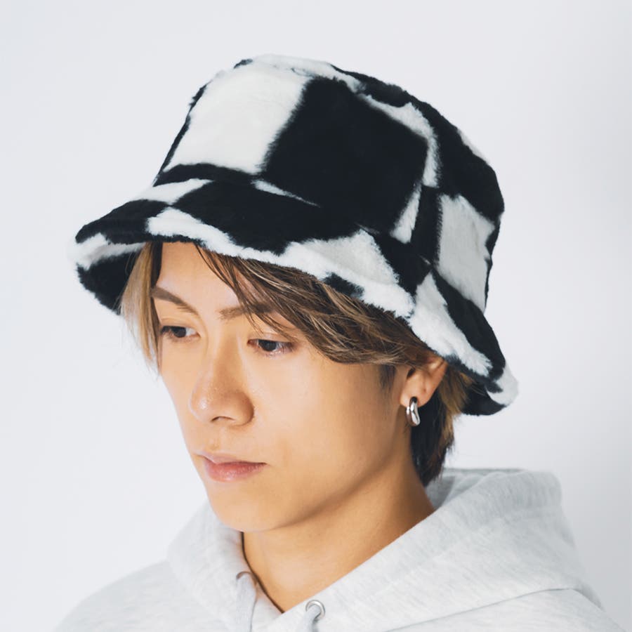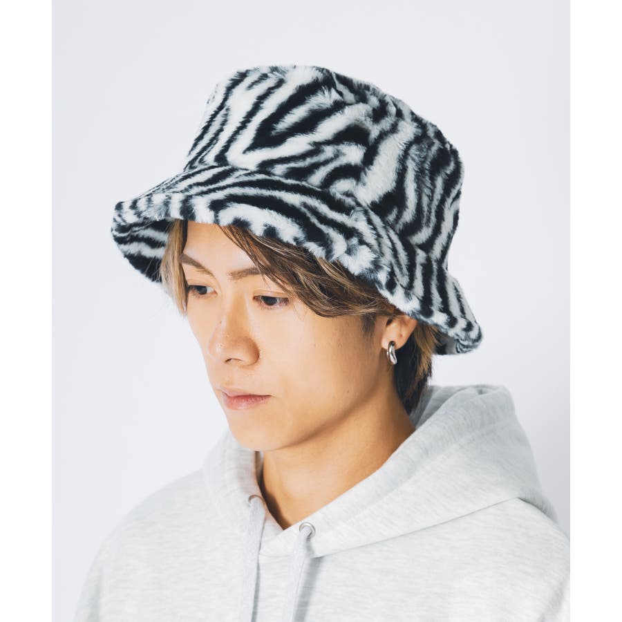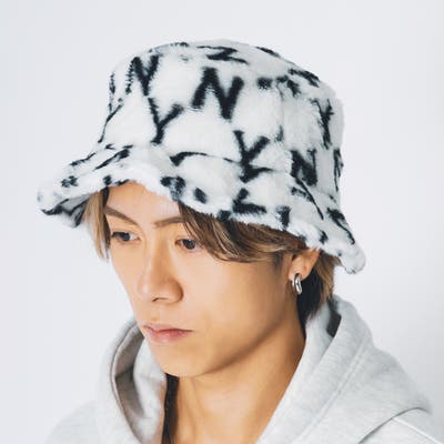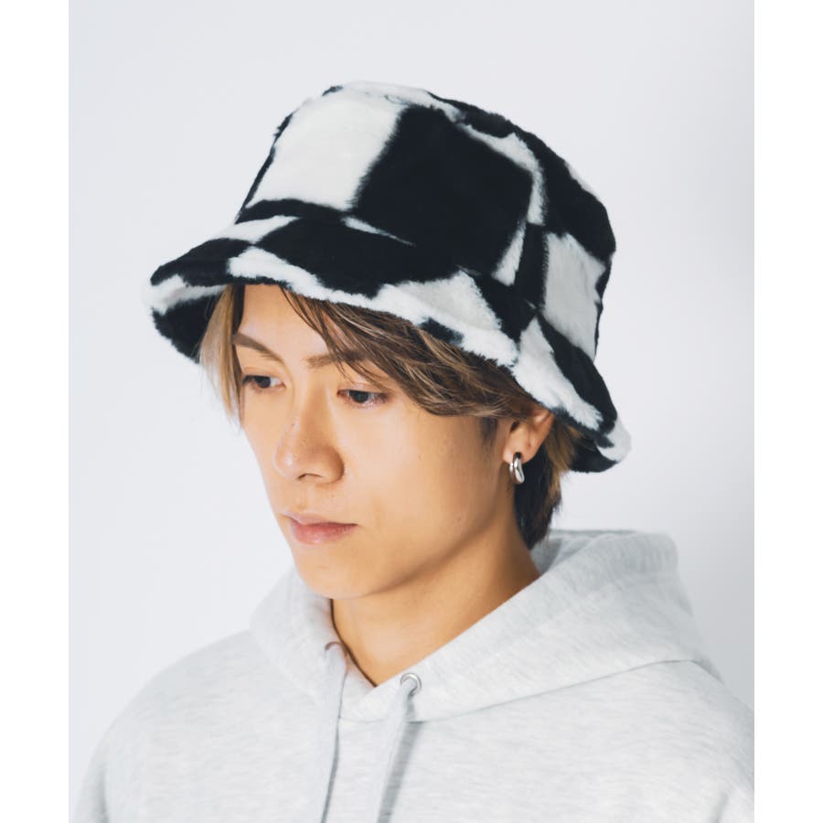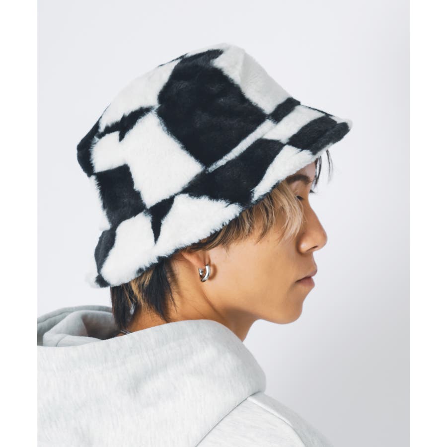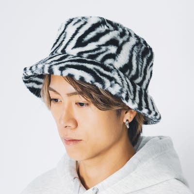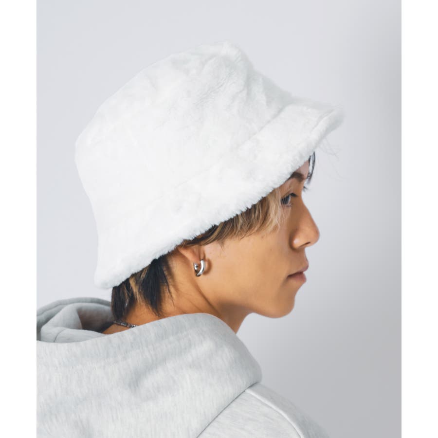 ファー素材のバケットハット。