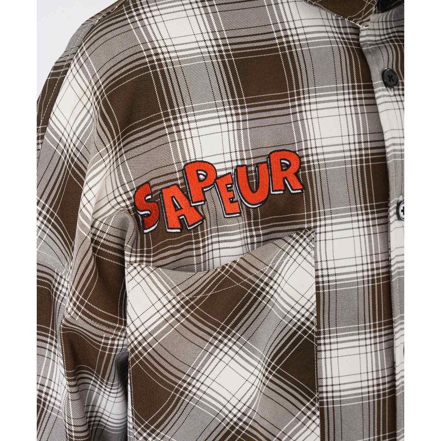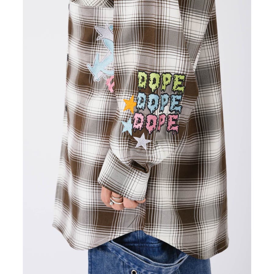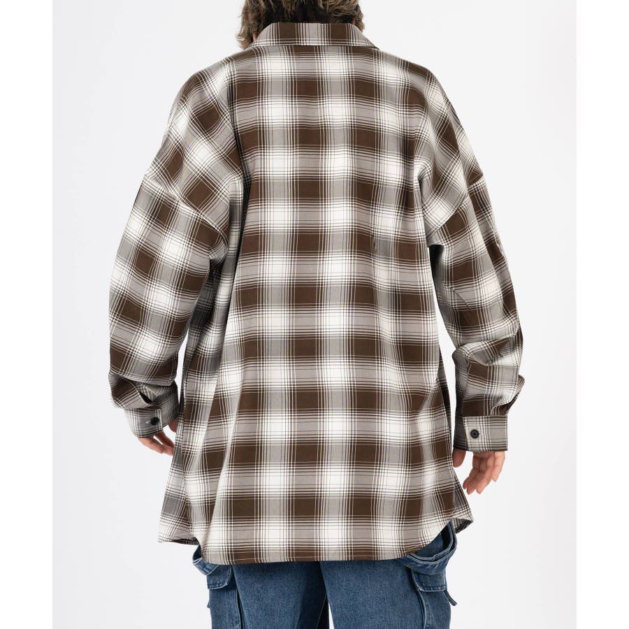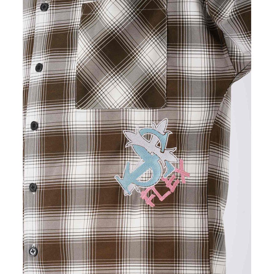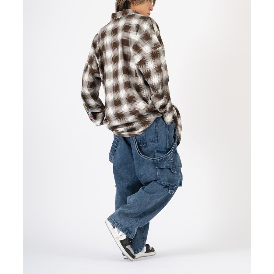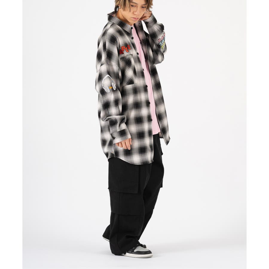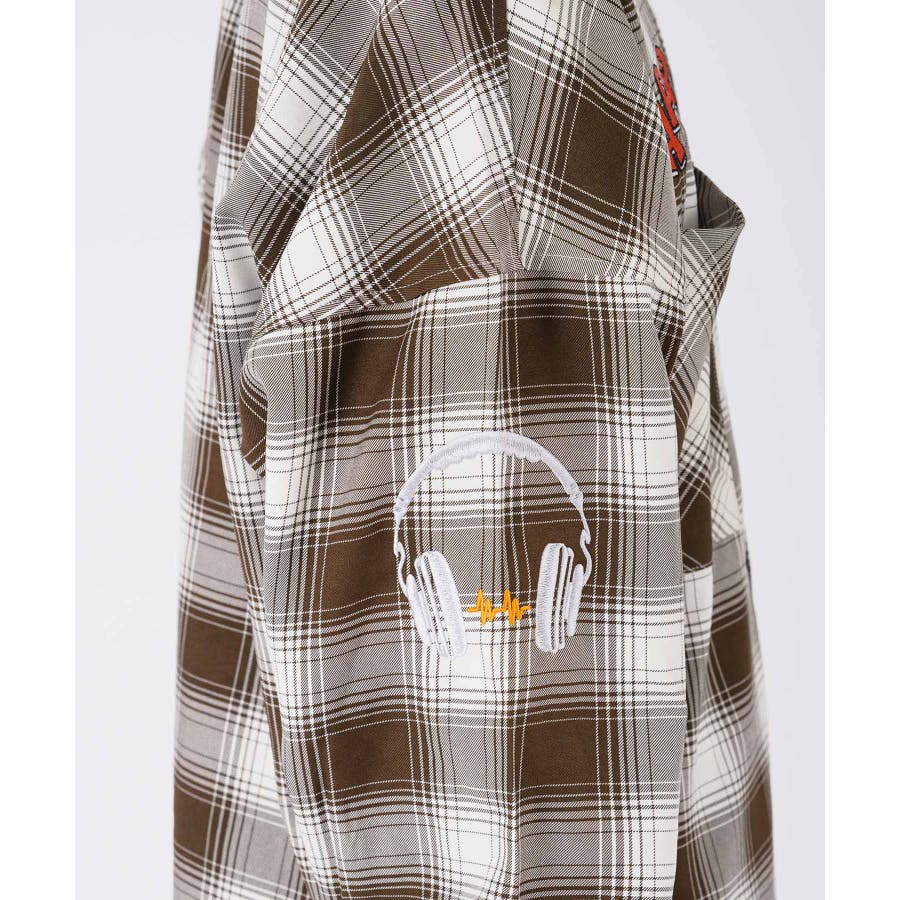 グラフィティなロゴを全体にプリントしたオーバーサイズの長袖シャツ。