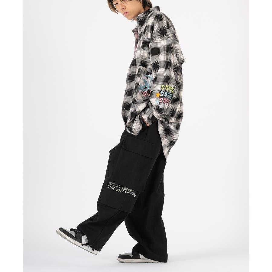 ゆったりめのシルエットがワイドパンツにも、スキニーパンツにも合わせることができます。男性モデル情報:170cm、Lサイズ着用