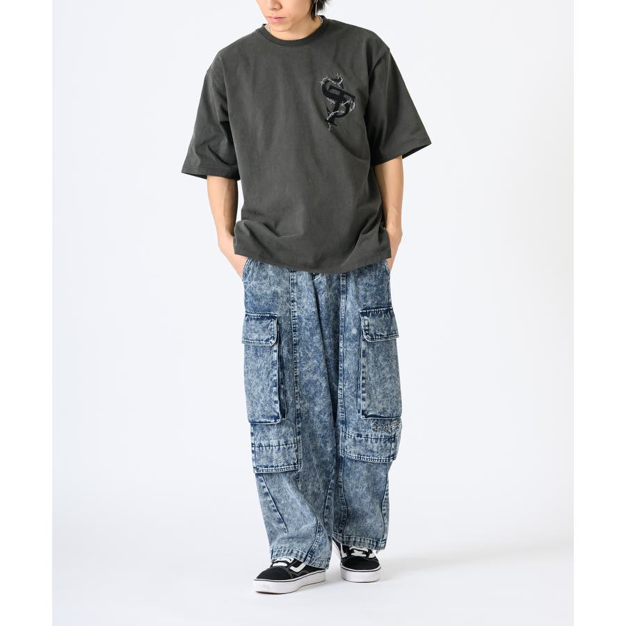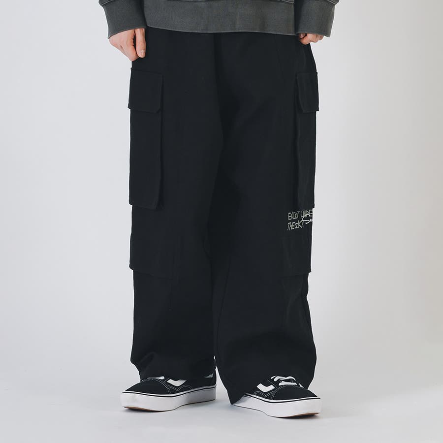 大きめのポケットがゆとりのシルエットを引き立たせるカーゴパンツ仕様。