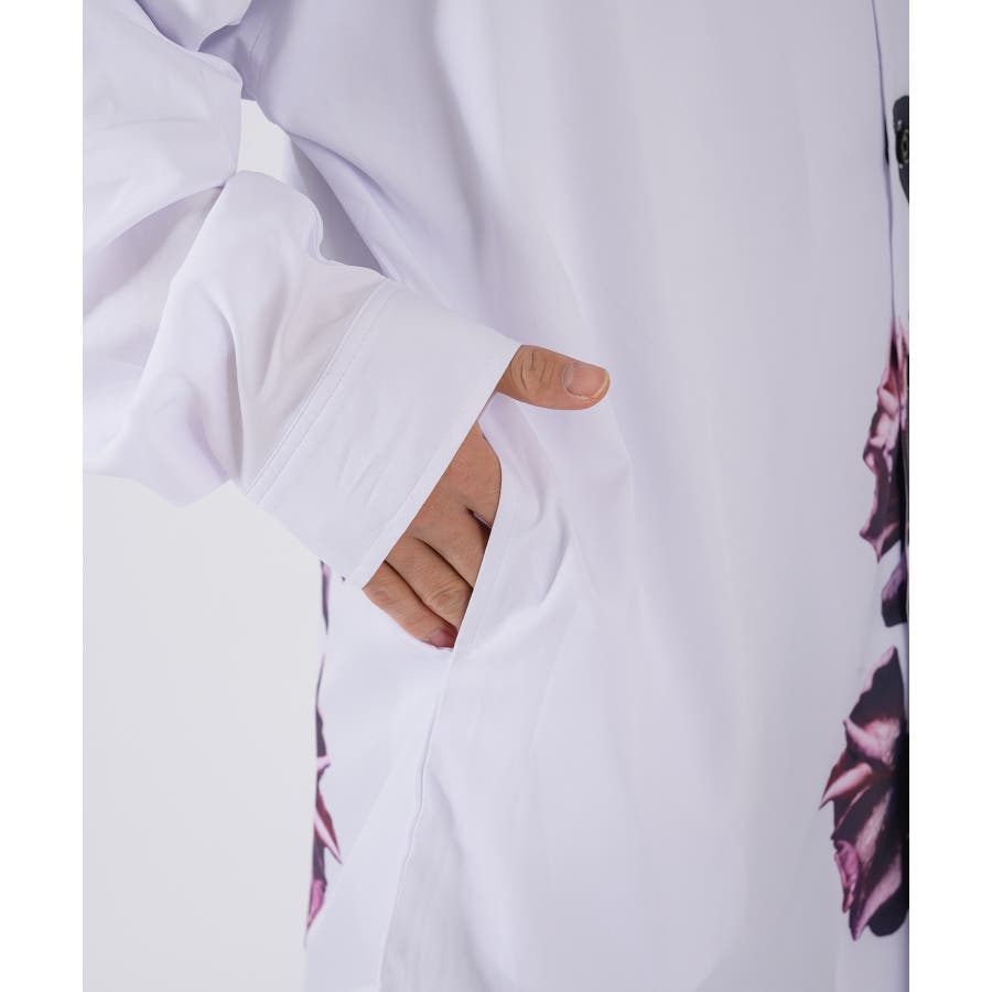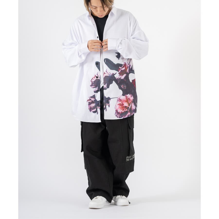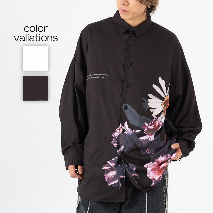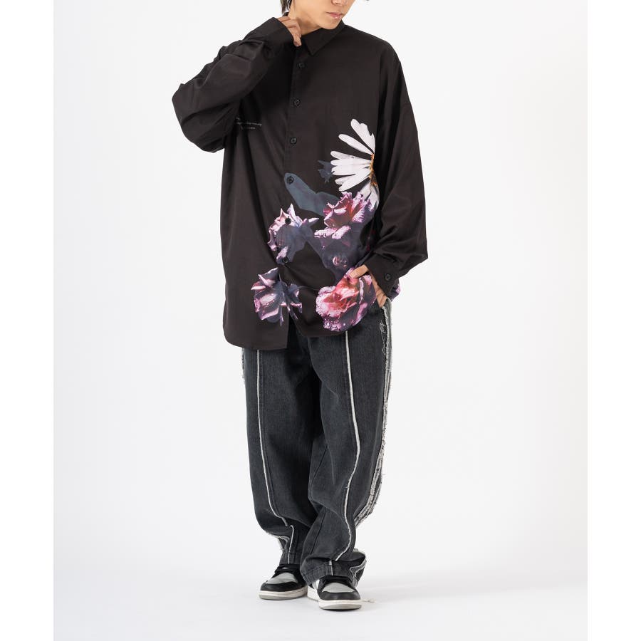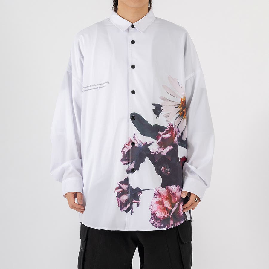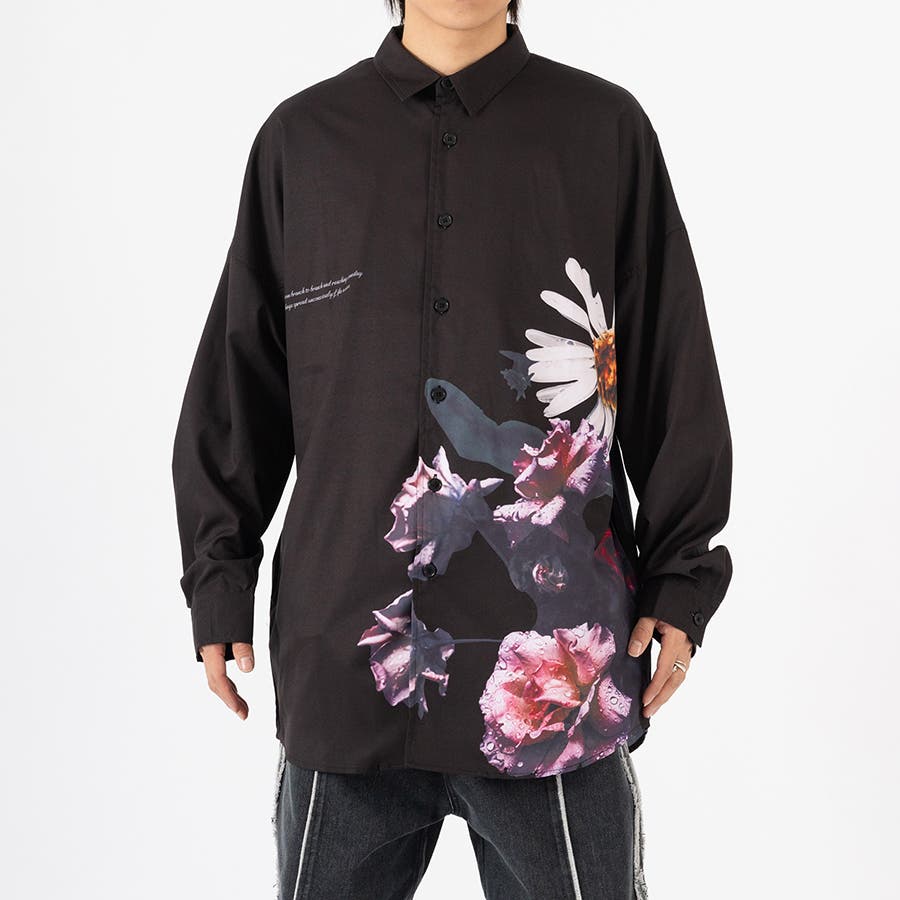 ゆったりとしたオーバーサイズ感と大胆な花柄プリントが人気の長袖シャツ。