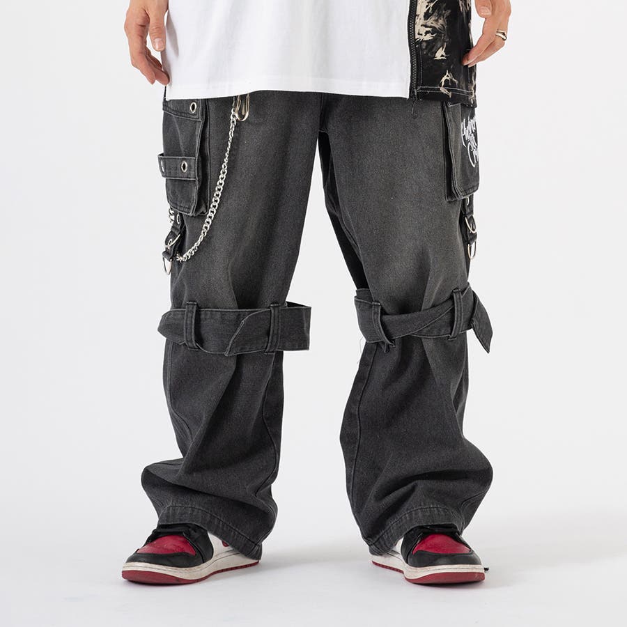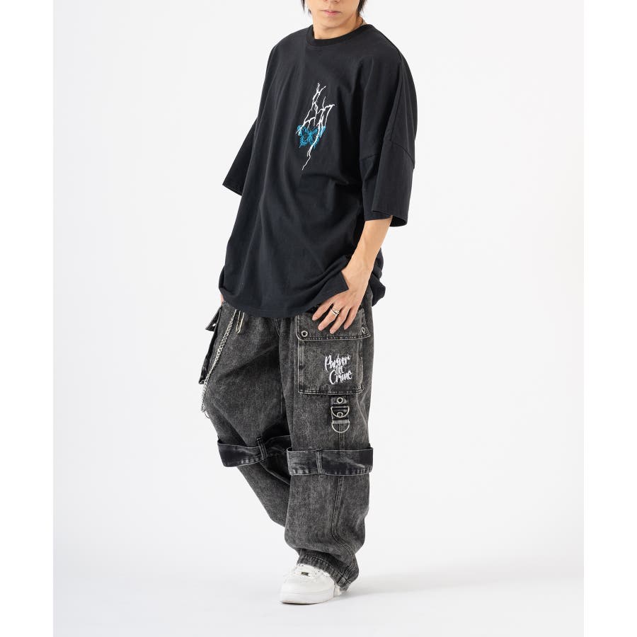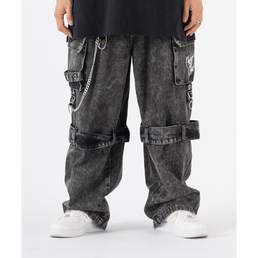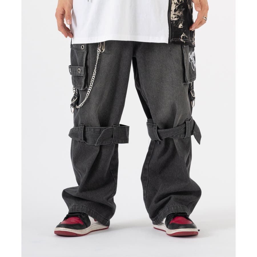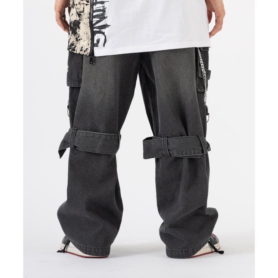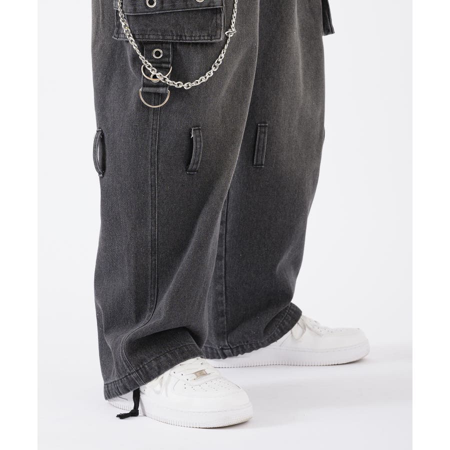 ワイドなバルーン型シルエットのデニムカーゴパンツ。