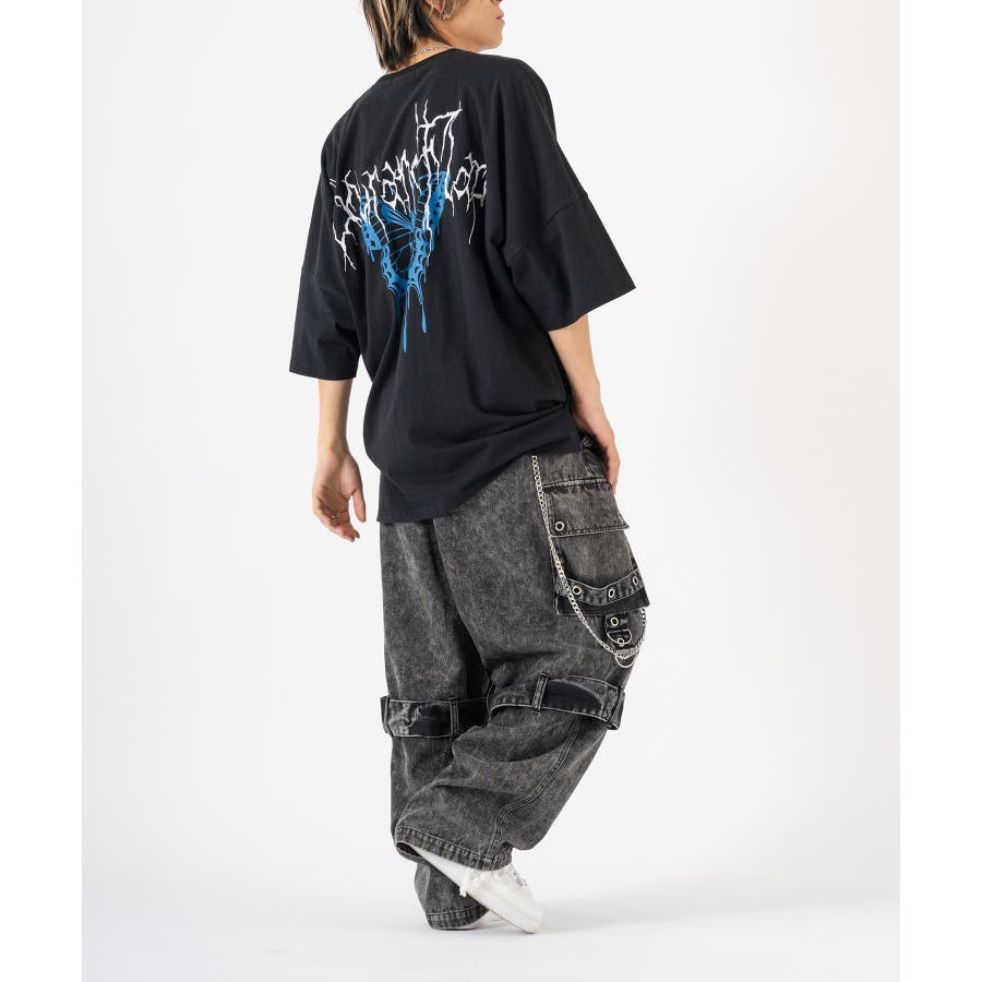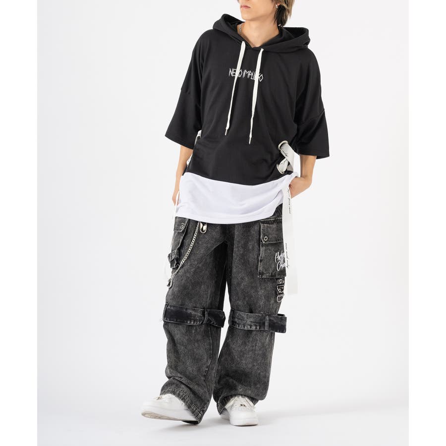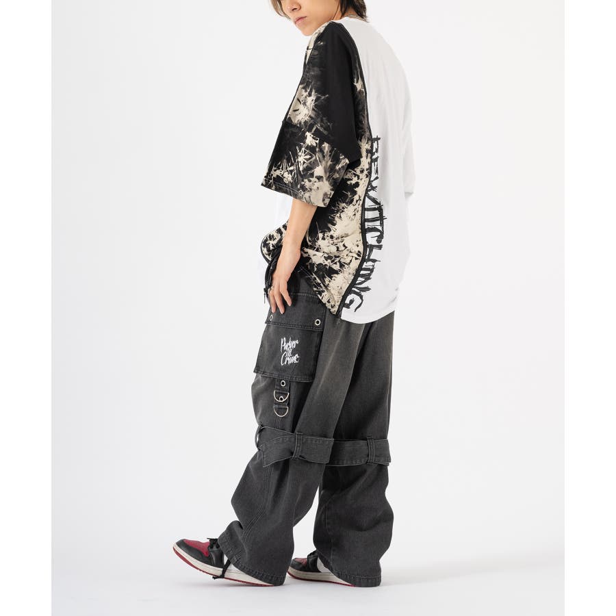 12オンスの綿素材を使用し、ハードな色落ち感が楽しめるブリーチ加工とケミカル加工の洗いをかけたブラックを用意。
