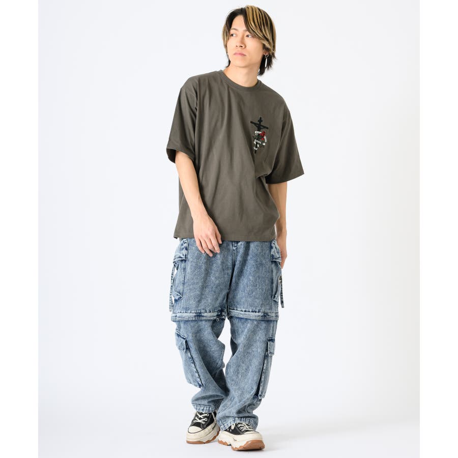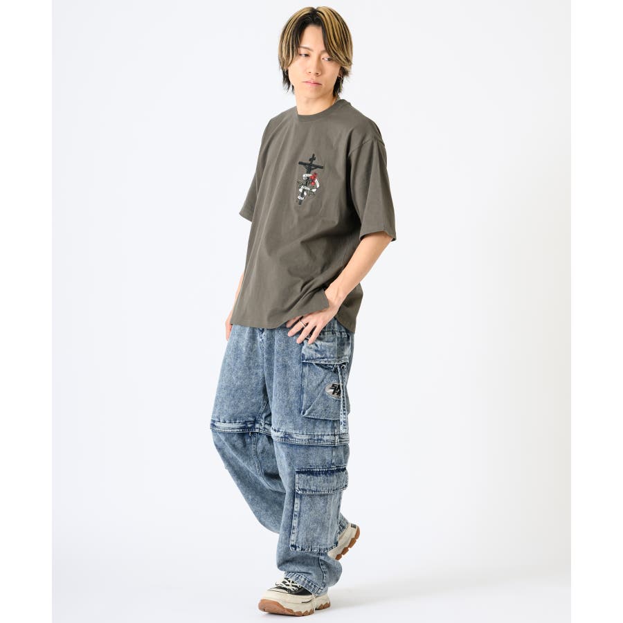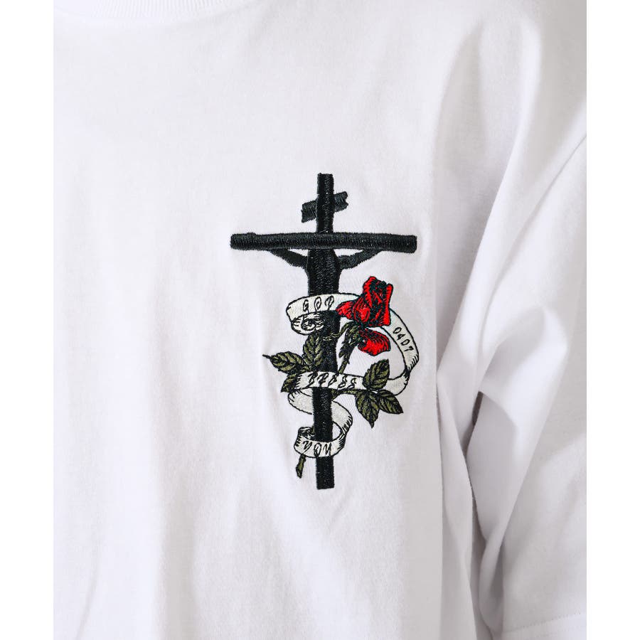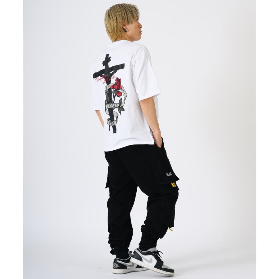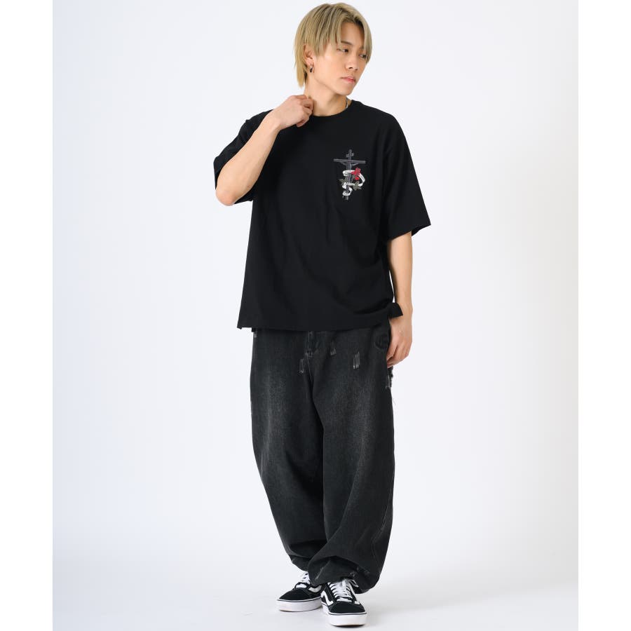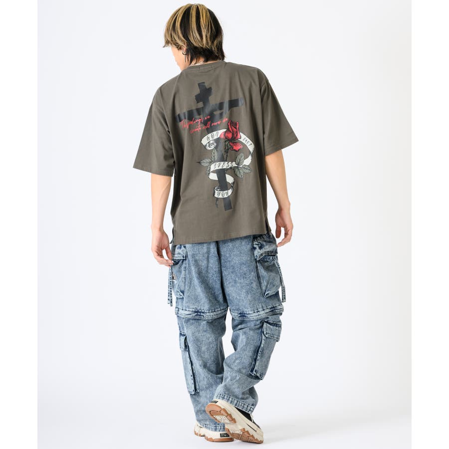 クロスとバラをモチーフにしたビッグシルエットのTシャツ。