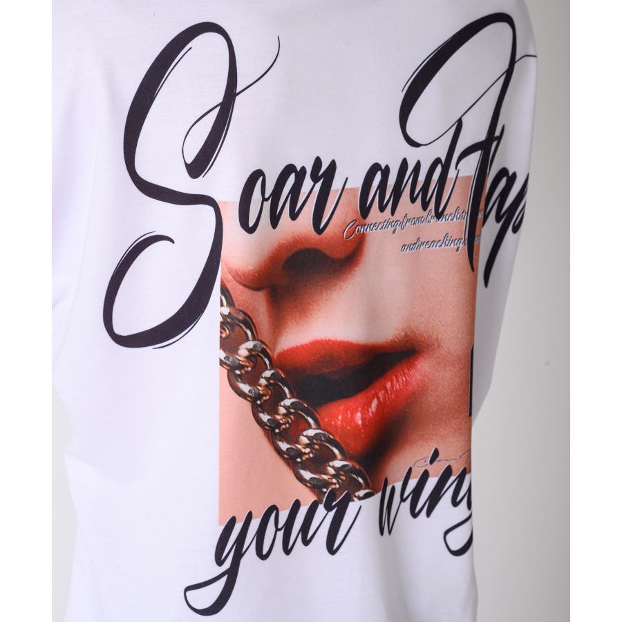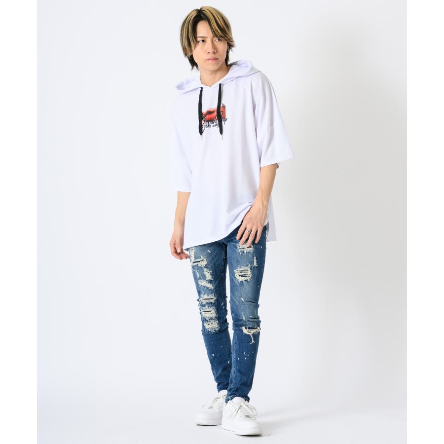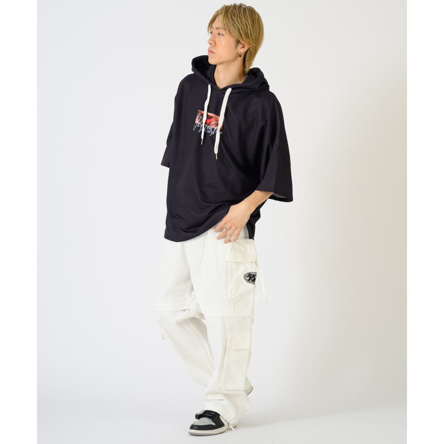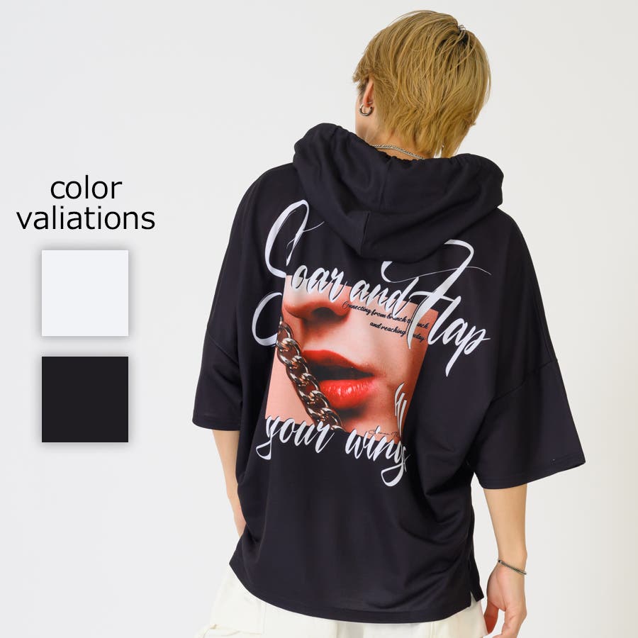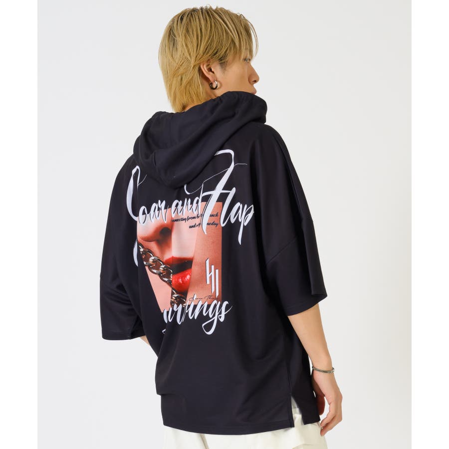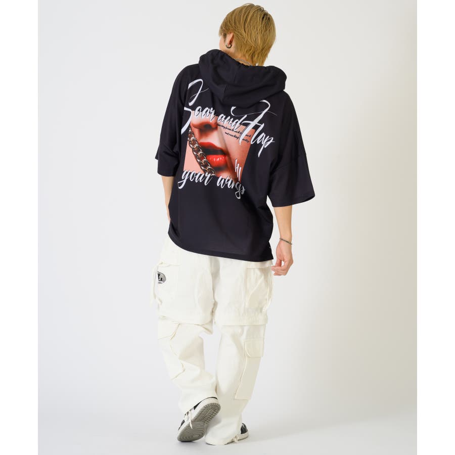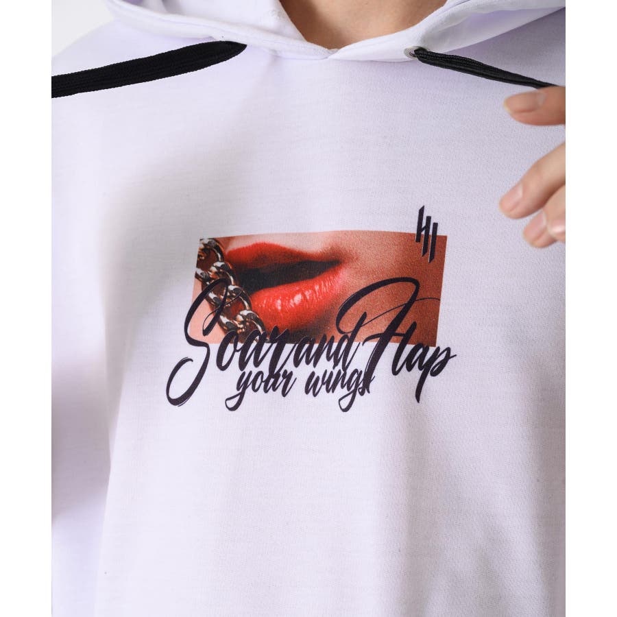 リップのフォトプリントが印象的な半袖パーカー。