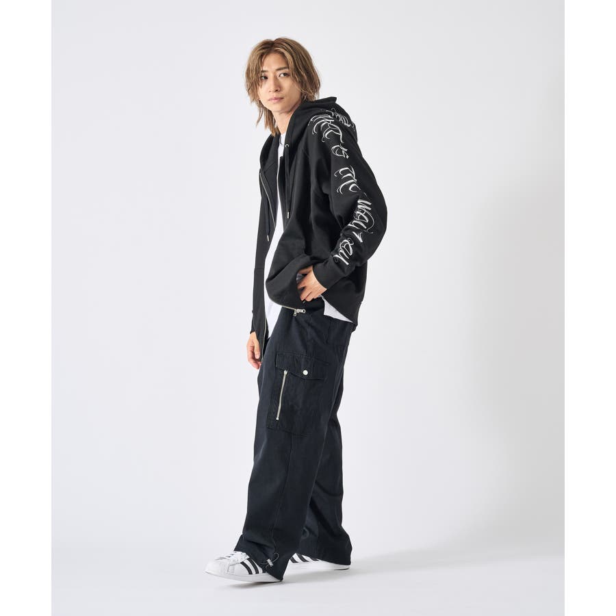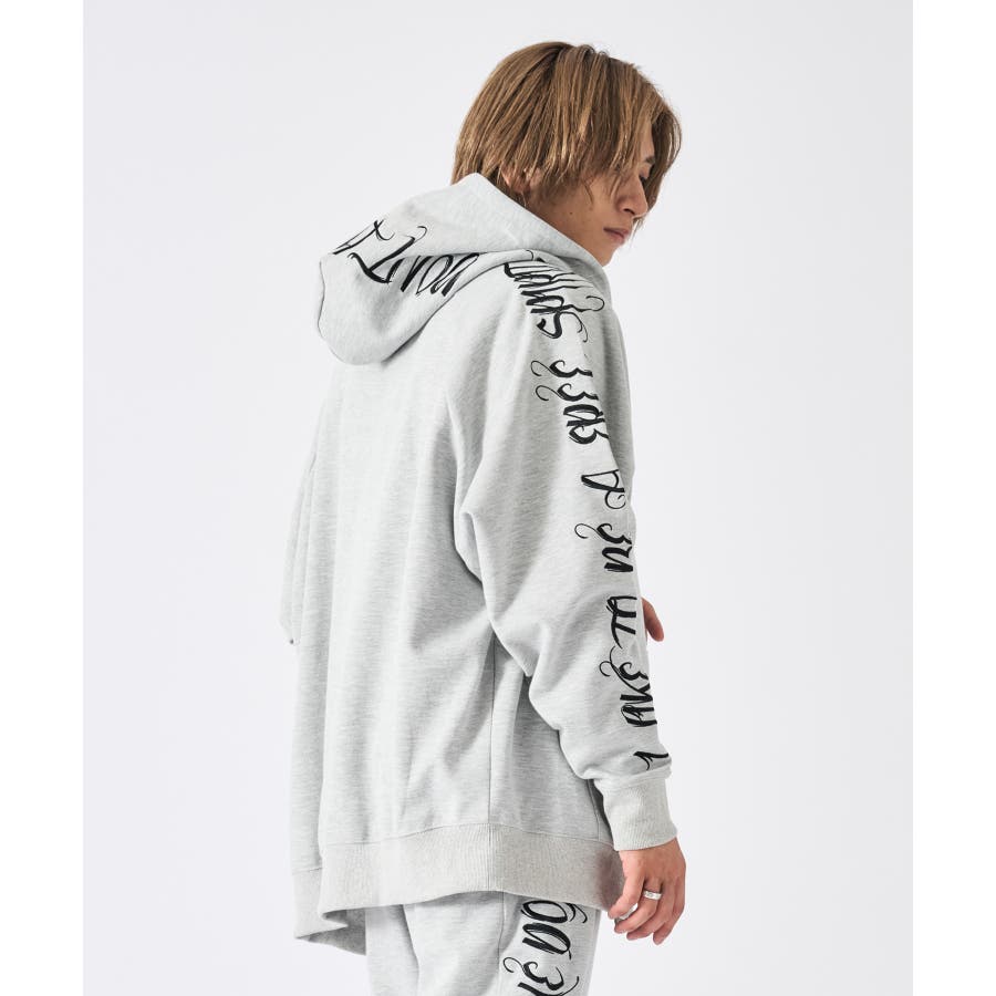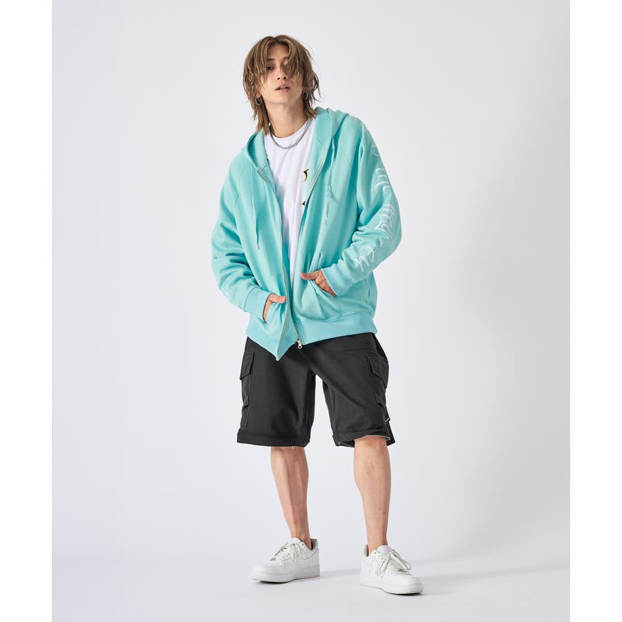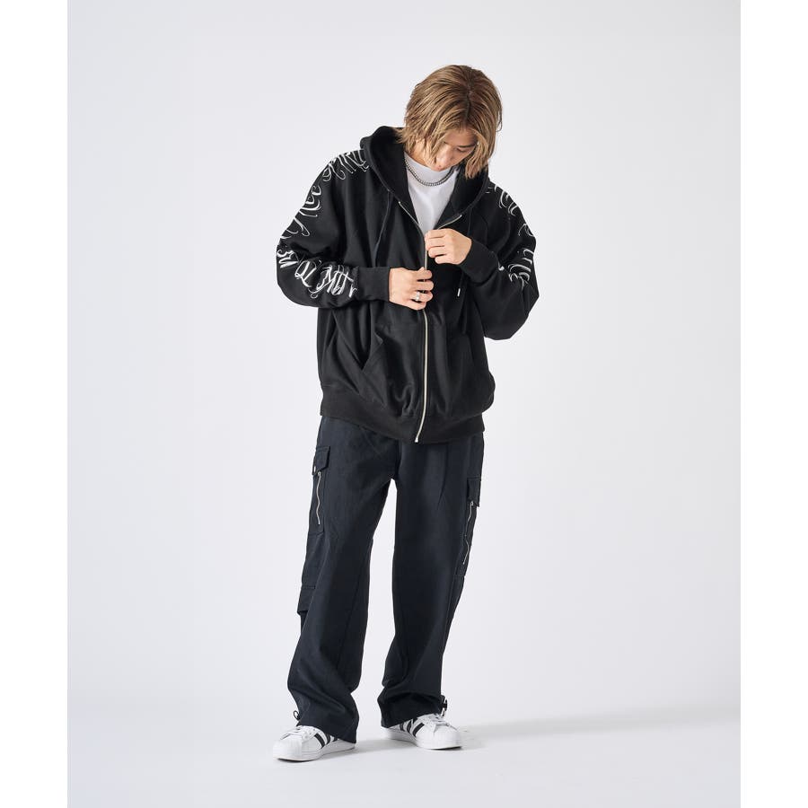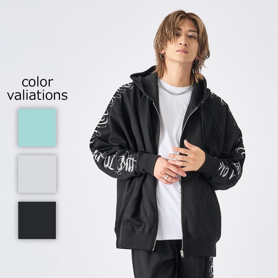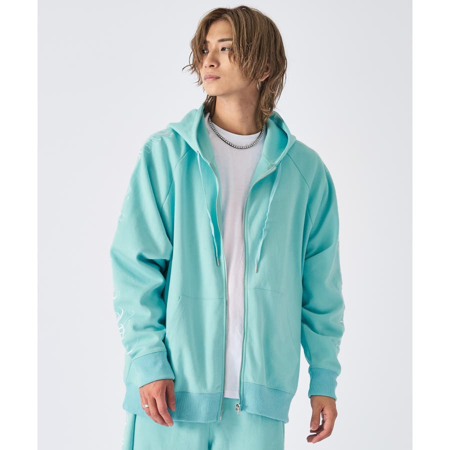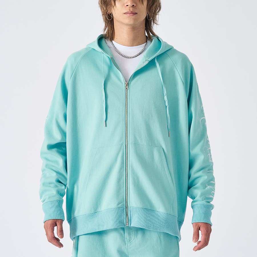 | 両袖からフードに跨る刺繍が印象的なフルジップパーカー ■detail 光沢感のある厚盛りの刺繍が立体的でクールに映える。 前空きのフルジップタイプでありながらマフポケット型のポケットとラングランスリーブが可愛らしさも併せ持つデザイン ■fabric 発色が綺麗で張りのあるポリエステルコットンのポンチ素材は、軽くて肌触りも滑らか ■styling ユニセックスにライトアウターとしてシーズン長く着られ、同素材のスウェットパンツとセットアップでも着用できます | ||||||||||||||||
