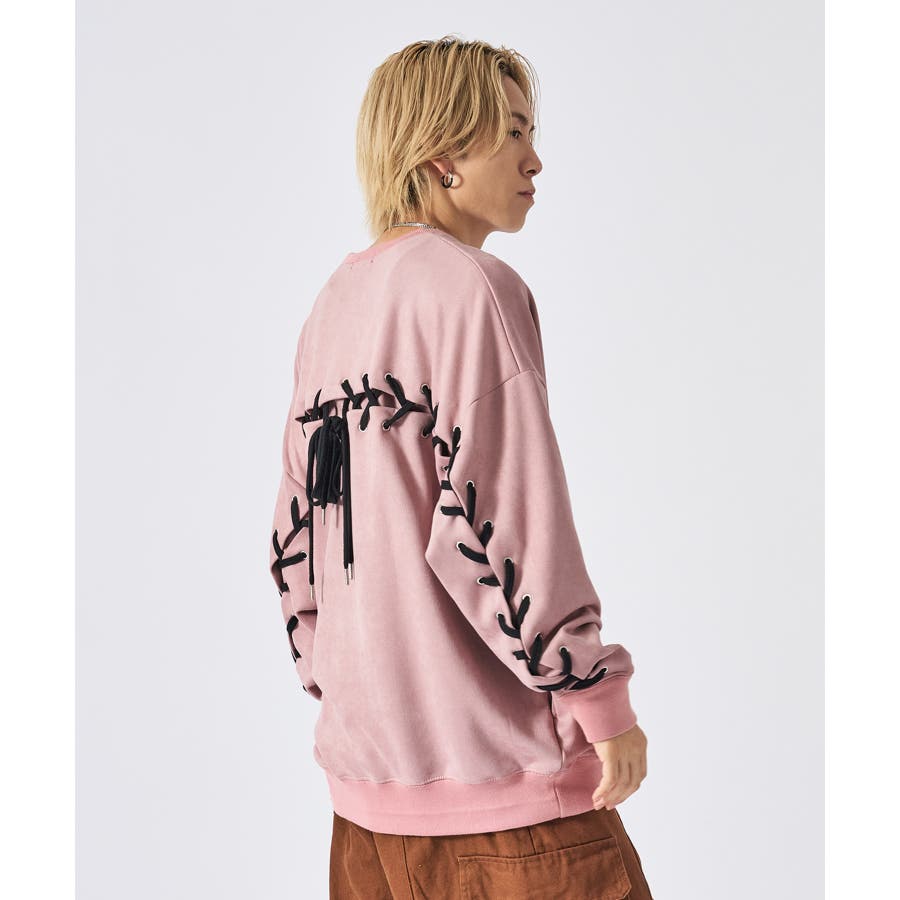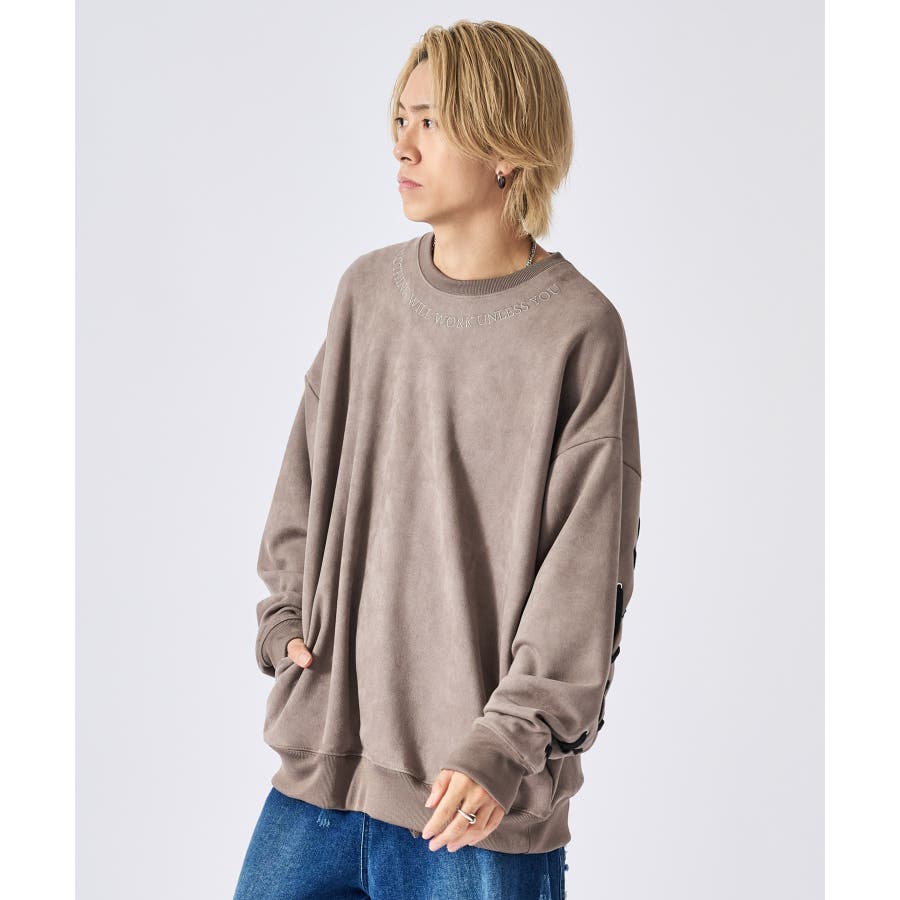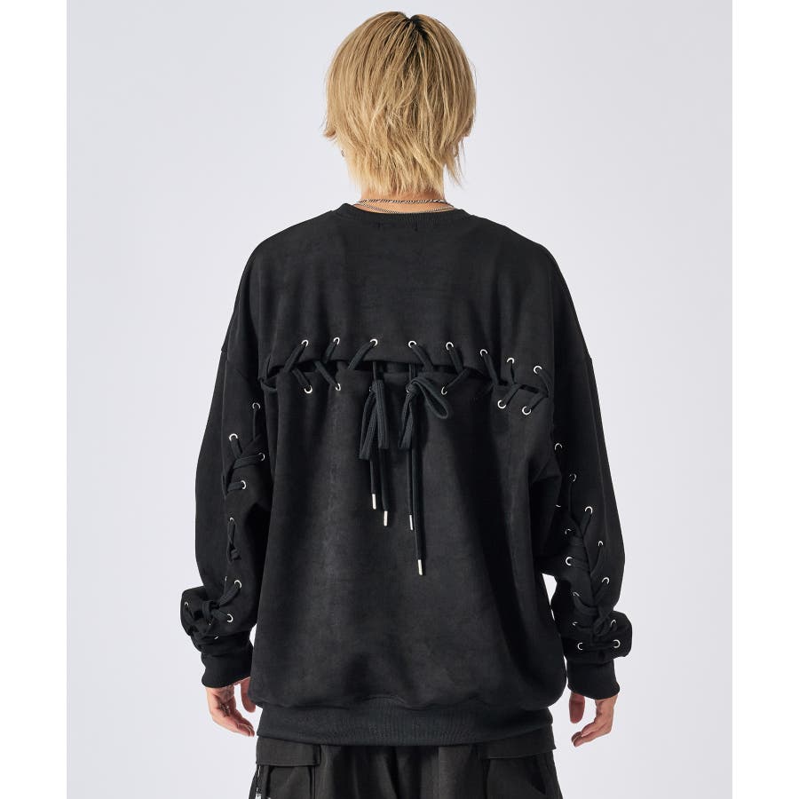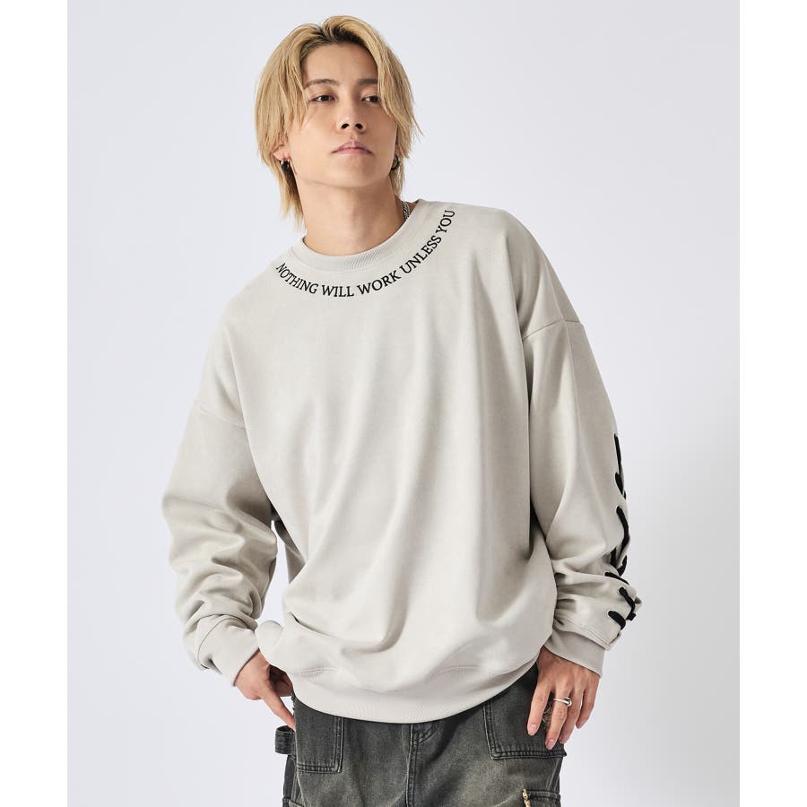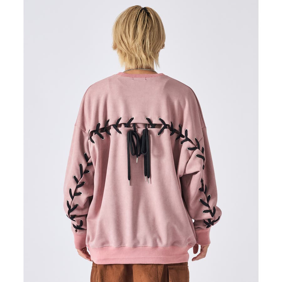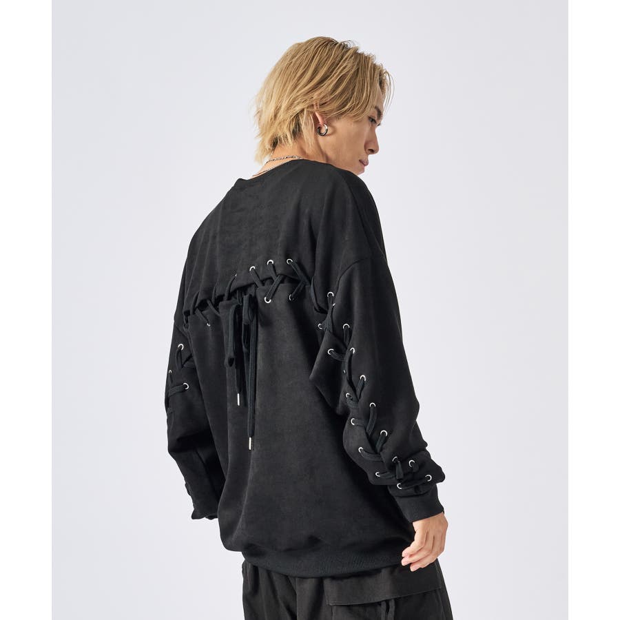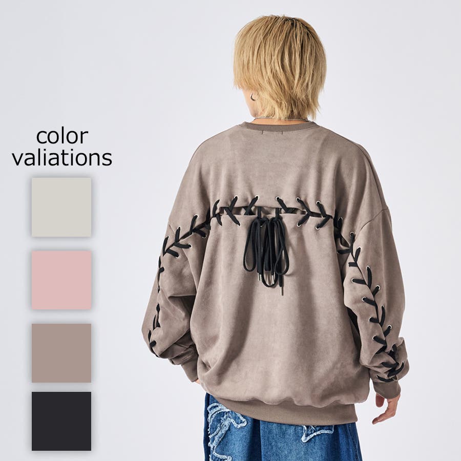 トレーナー メンズ レースアップ スエード調 ストリート系 オーバーサイズ