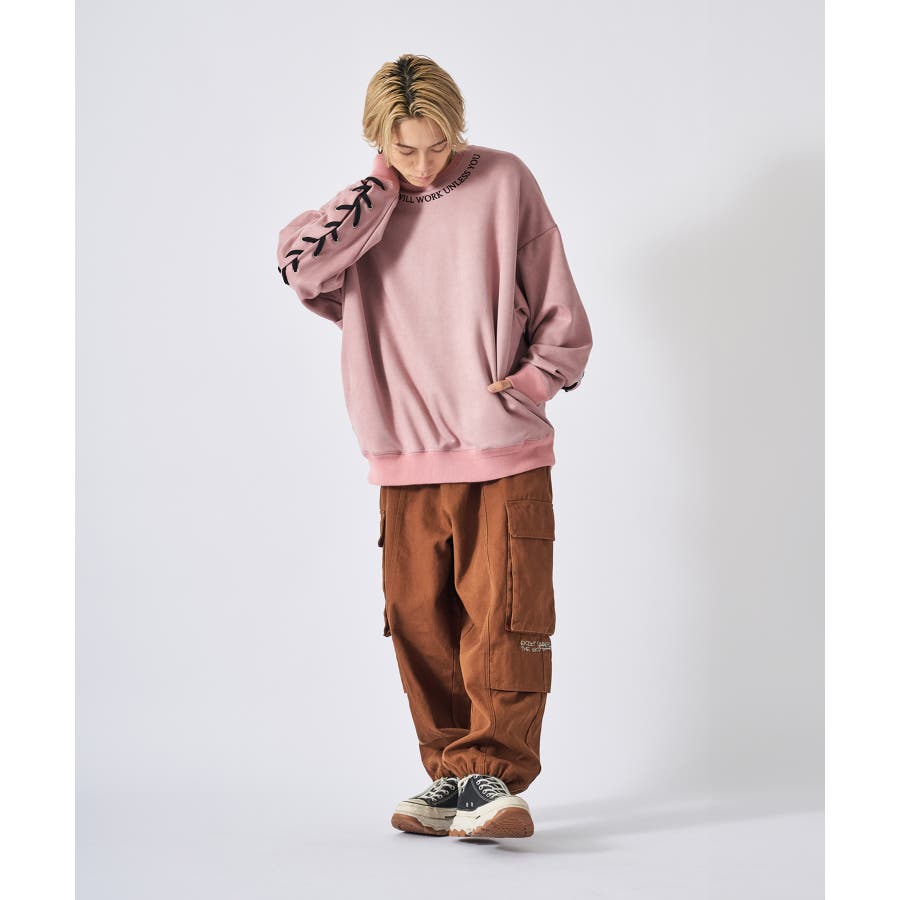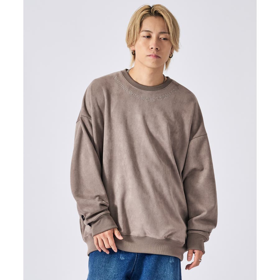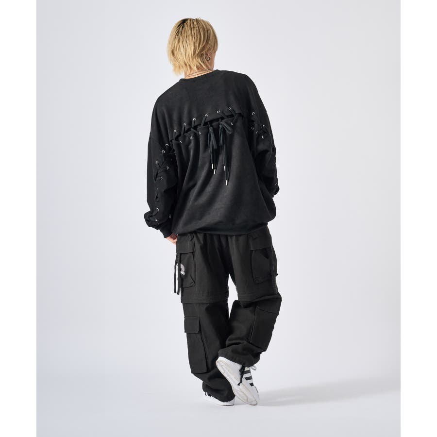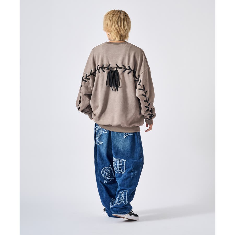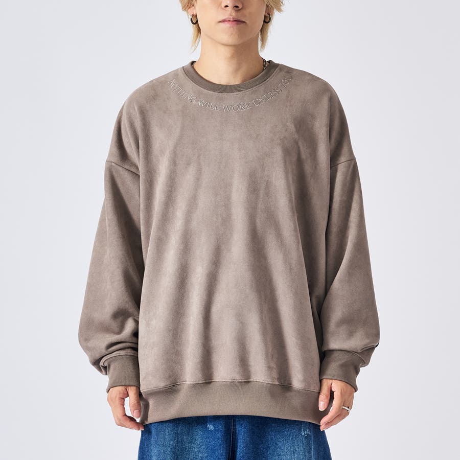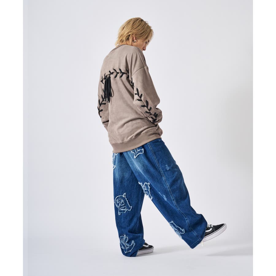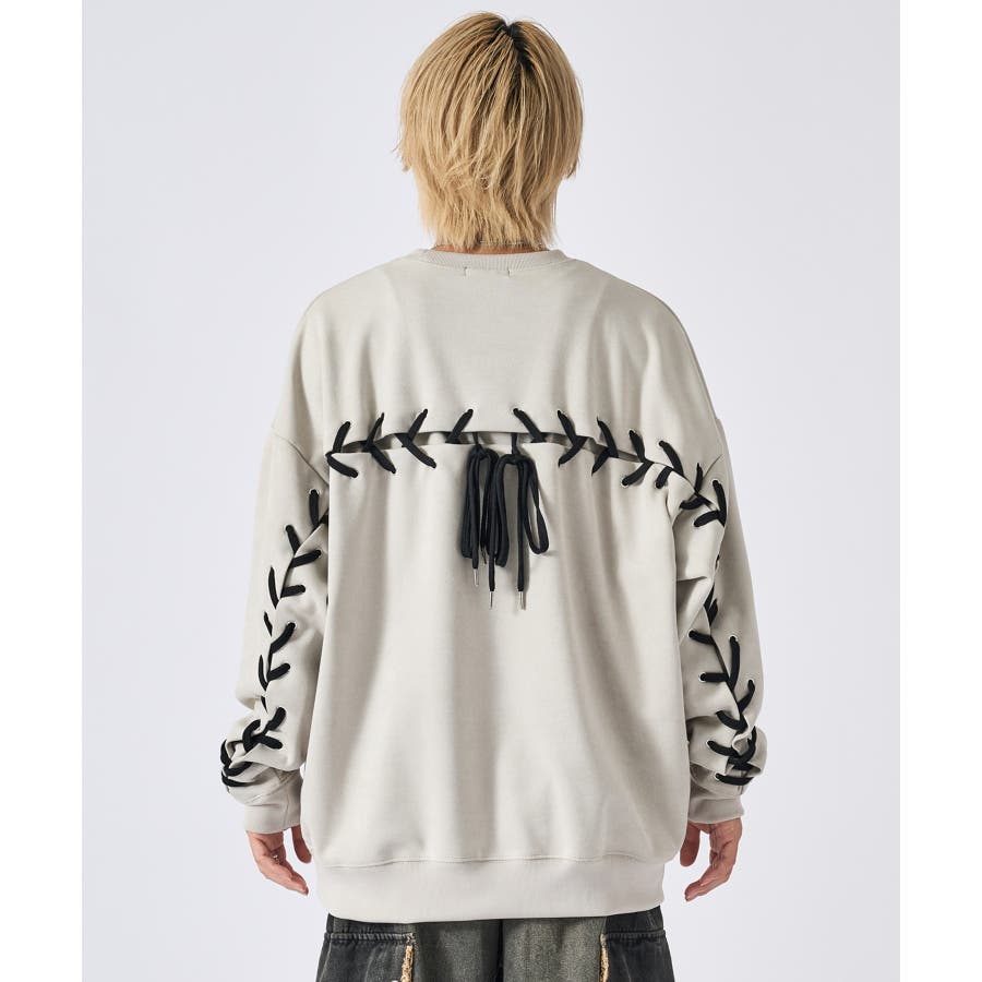 トレーナー メンズ レースアップ スエード調 ストリート系 オーバーサイズ