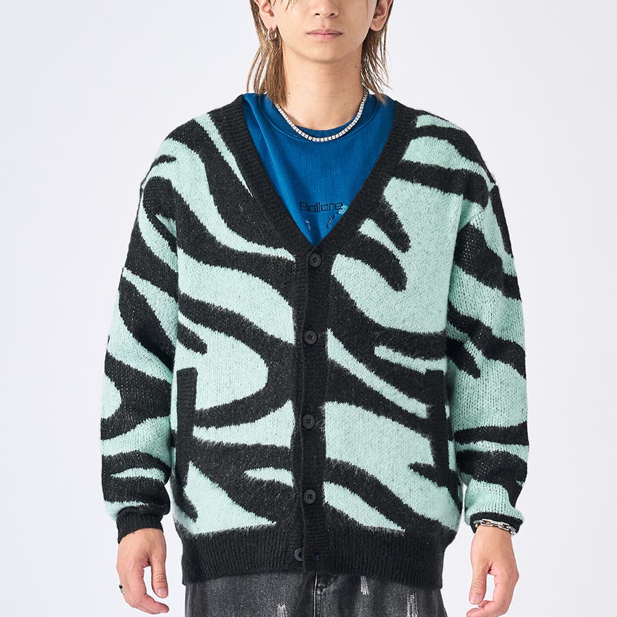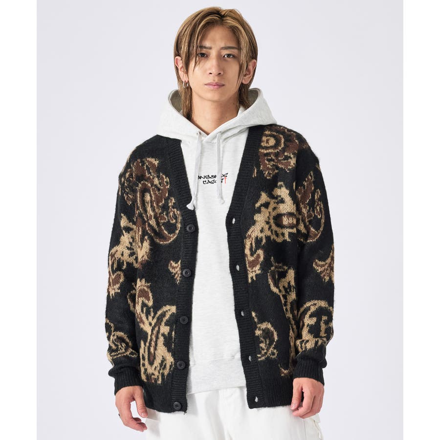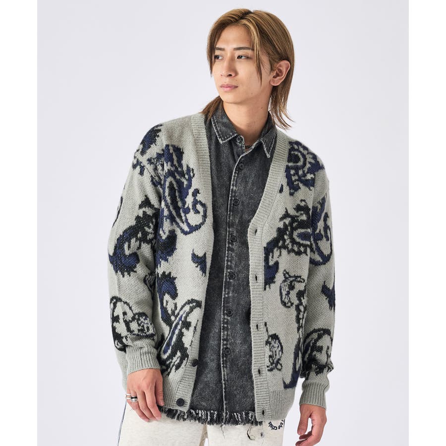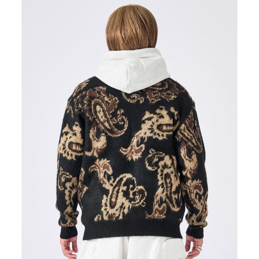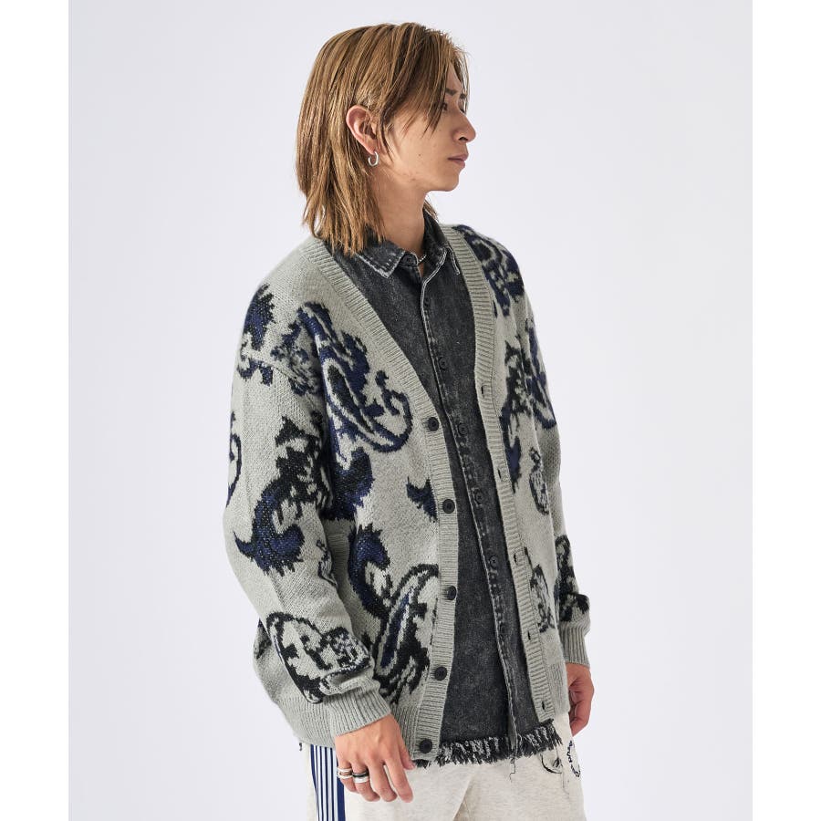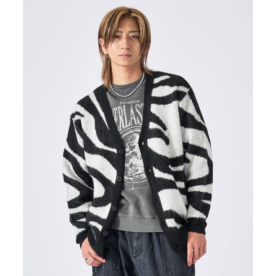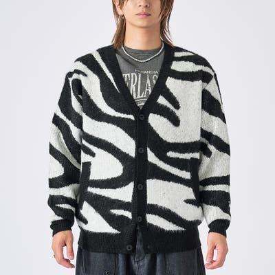 | モヘア調のエアリーな風合いで、アニマル調の総柄ビッグカーディガン ■detail ャガードで編み込んだ総柄が印象的で、ヒョウ柄、ペイズリー柄、ゼブラ柄に加えて、フラワー柄となど柄バリエーションが豊富なビッグシルエットでライトアウターとして着回せるアイテム ■fabric 表面の毛羽立ち感や、ボリューミーな膨らみは正にモヘアの風合いを醸し出す ニット特有のチクチク感が殆どなくメンテもイージー ■styling オーバーサイズなシルエットは性別問わずユニセックスで着こなせ、ペアコーデにもピッタリなアイテムです | ||||||||||||||||||||
