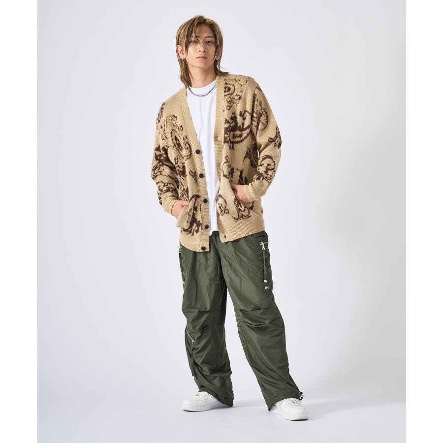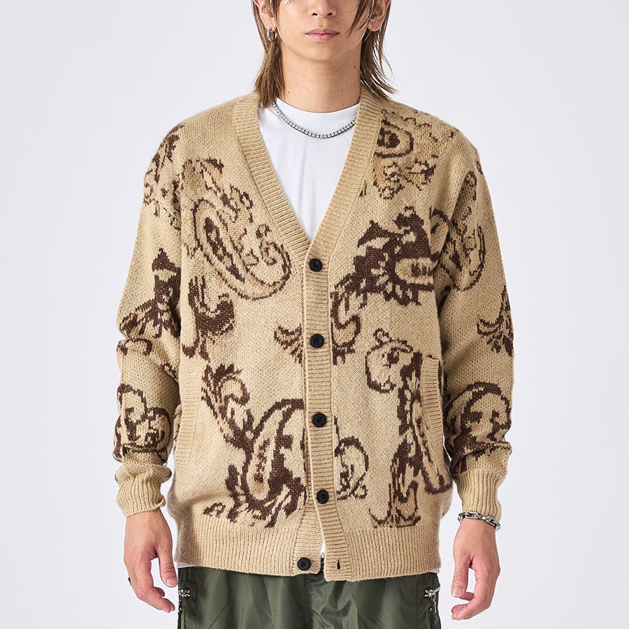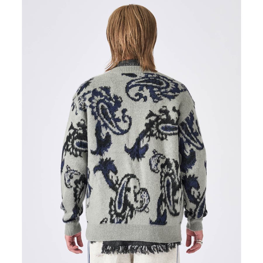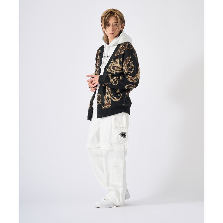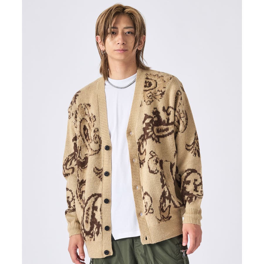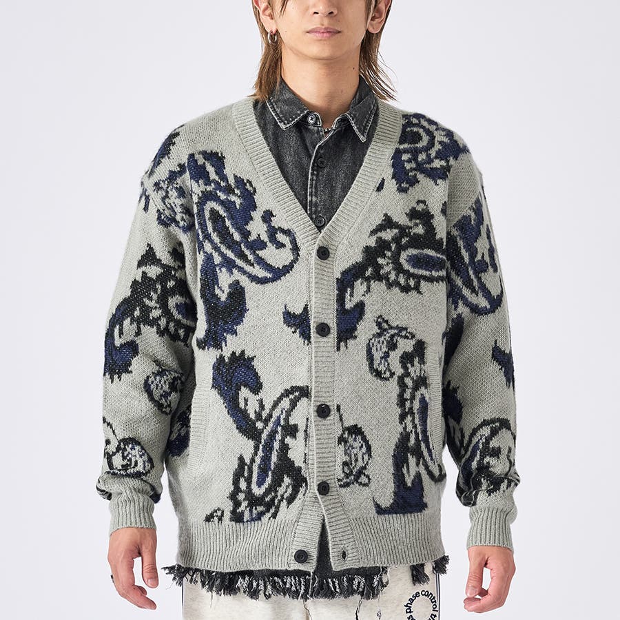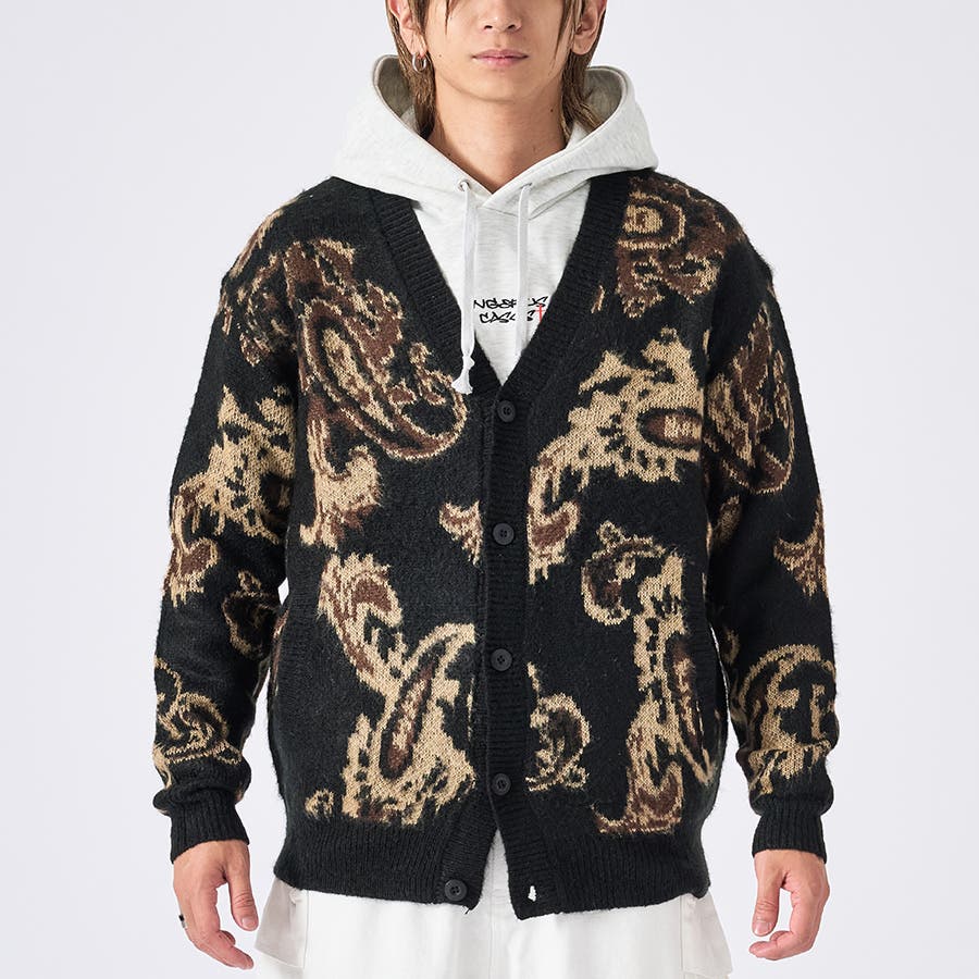 | モヘア調のエアリーな風合いで、アニマル調の総柄ビッグカーディガン ■detail ャガードで編み込んだ総柄が印象的で、ヒョウ柄、ペイズリー柄、ゼブラ柄に加えて、フラワー柄となど柄バリエーションが豊富なビッグシルエットでライトアウターとして着回せるアイテム ■fabric 表面の毛羽立ち感や、ボリューミーな膨らみは正にモヘアの風合いを醸し出す ニット特有のチクチク感が殆どなくメンテもイージー ■styling オーバーサイズなシルエットは性別問わずユニセックスで着こなせ、ペアコーデにもピッタリなアイテムです | ||||||||||||||||||||