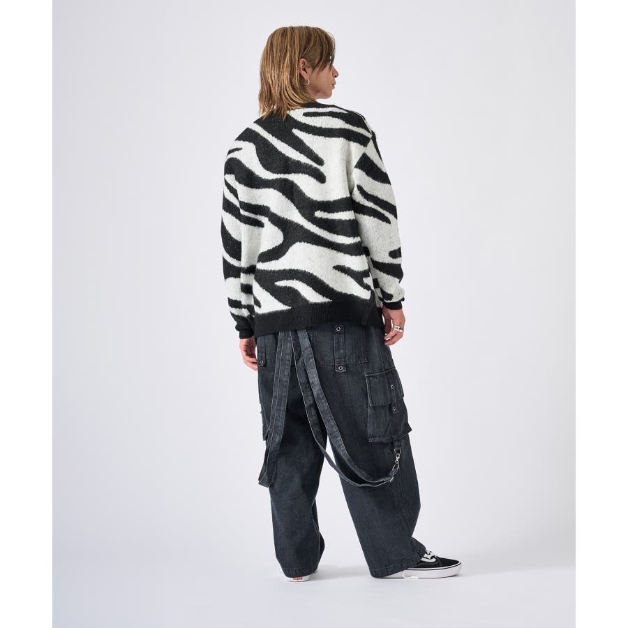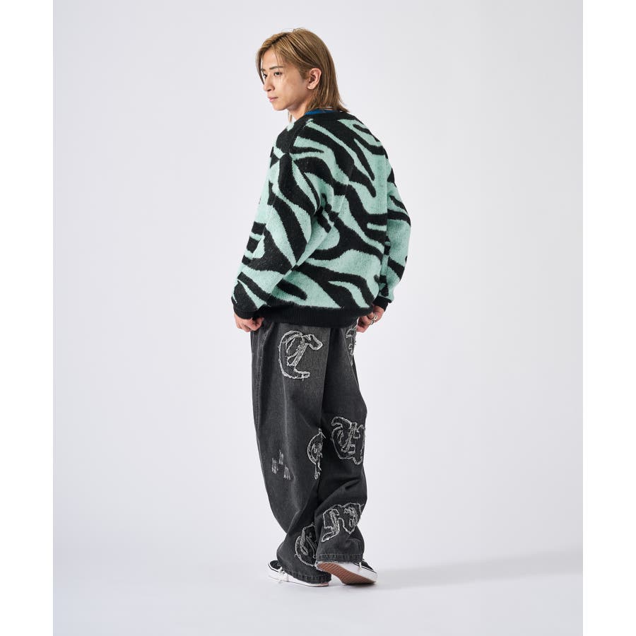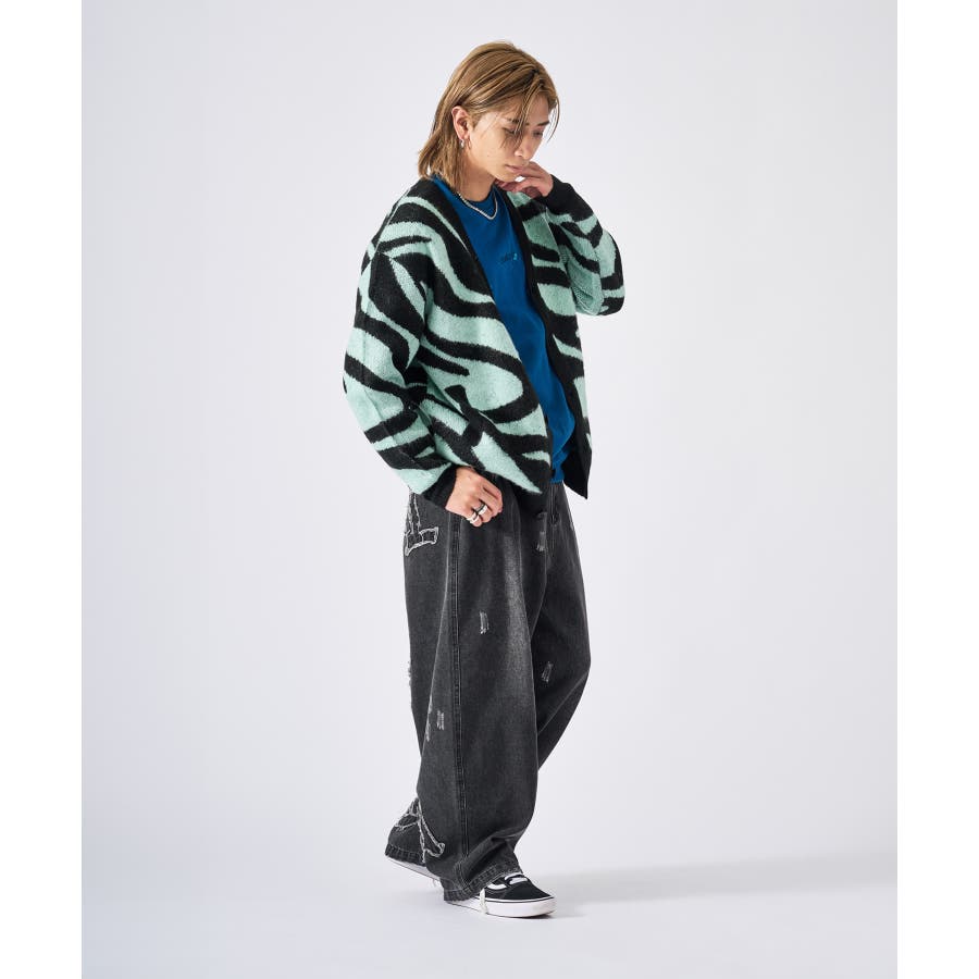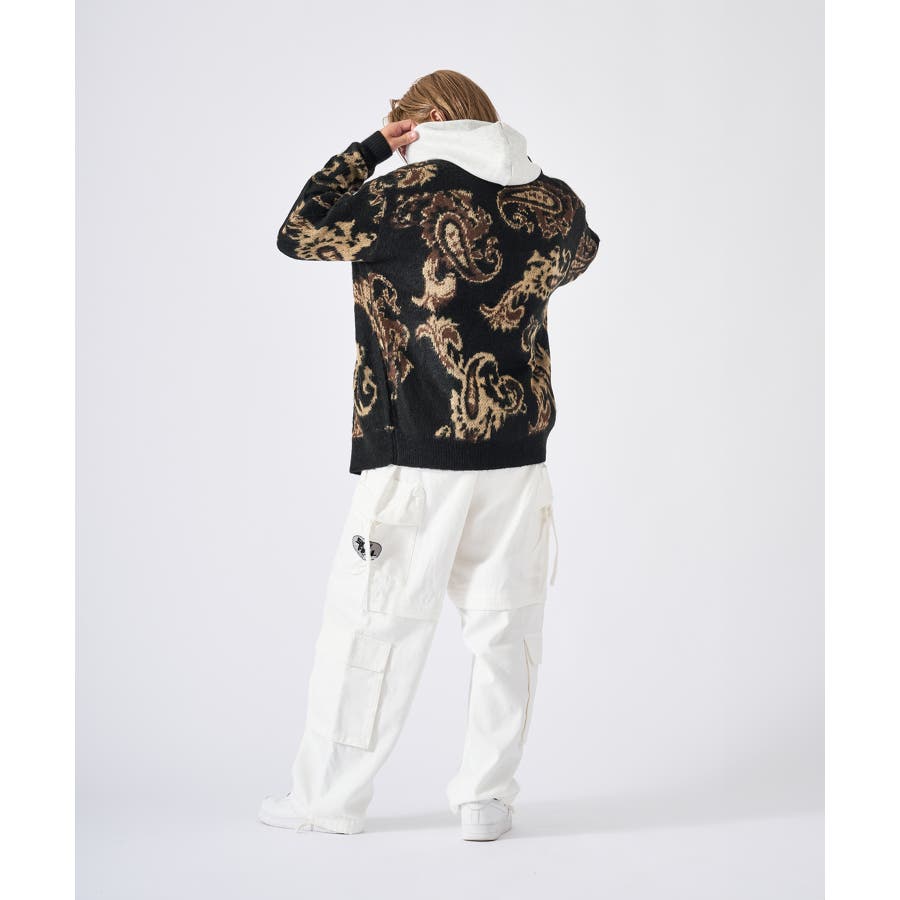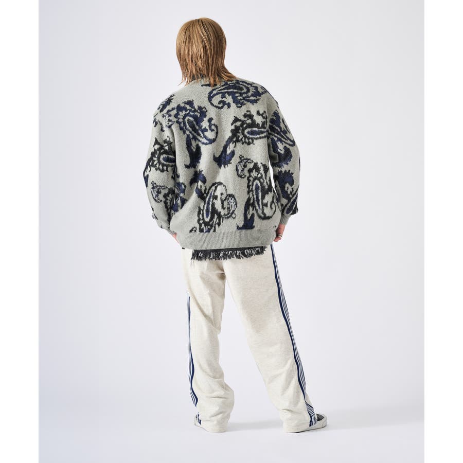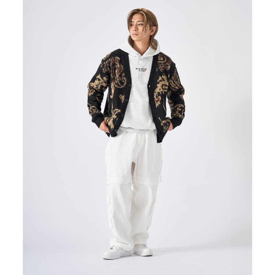 | モヘア調のエアリーな風合いで、アニマル調の総柄ビッグカーディガン ■detail ャガードで編み込んだ総柄が印象的で、ヒョウ柄、ペイズリー柄、ゼブラ柄に加えて、フラワー柄となど柄バリエーションが豊富なビッグシルエットでライトアウターとして着回せるアイテム ■fabric 表面の毛羽立ち感や、ボリューミーな膨らみは正にモヘアの風合いを醸し出す ニット特有のチクチク感が殆どなくメンテもイージー ■styling オーバーサイズなシルエットは性別問わずユニセックスで着こなせ、ペアコーデにもピッタリなアイテムです | ||||||||||||||||||||