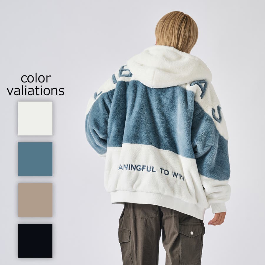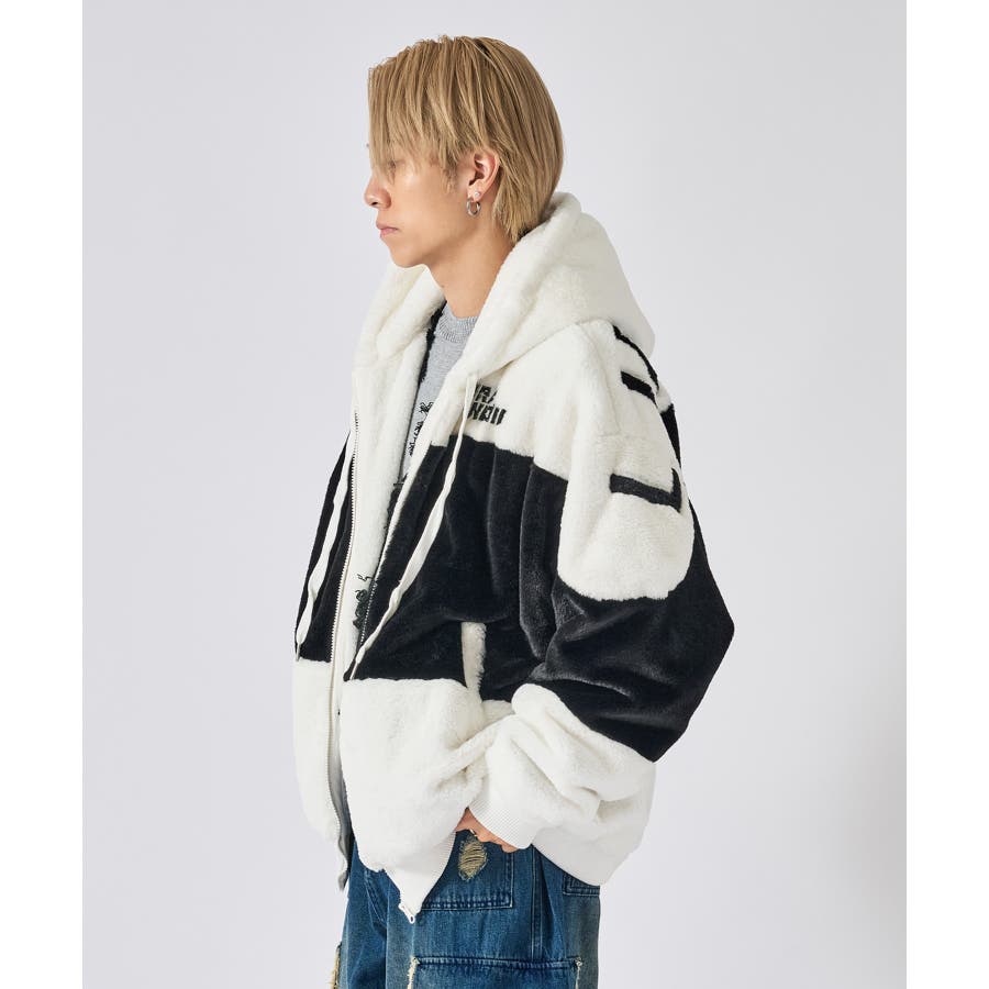 | 切り替えが可愛いビッグなファーブルゾン ■detail フロントジップでパーカースタイルだから気軽に羽織れるデザイン ワイドなパネル切り替えが可愛く、背中のロゴが印象的なデザイン ■fabric 毛足の長いポリエステルのストレートファーを使用しており、ボリューム感があって暖かく、またその肌触りの良さは多くのお客様から支持され続けている素材 ■styling そのデザイン性からタイトからワイドまで幅広いボトムと相性が良く、老若男女着こなせるデザイン。 パーカーの様に気軽に着られるのに防寒性も高く冬の代表的アウターです | ||||||||||||||||||||