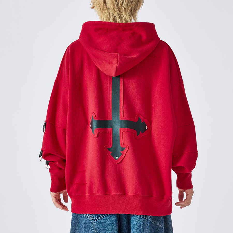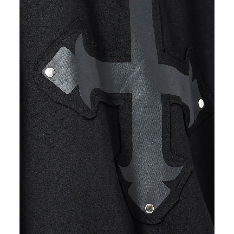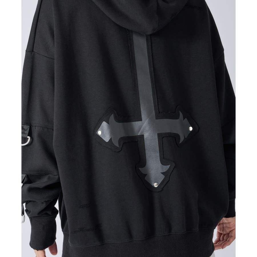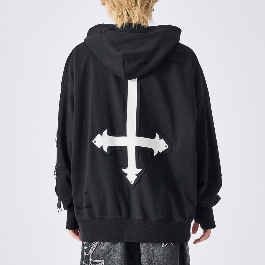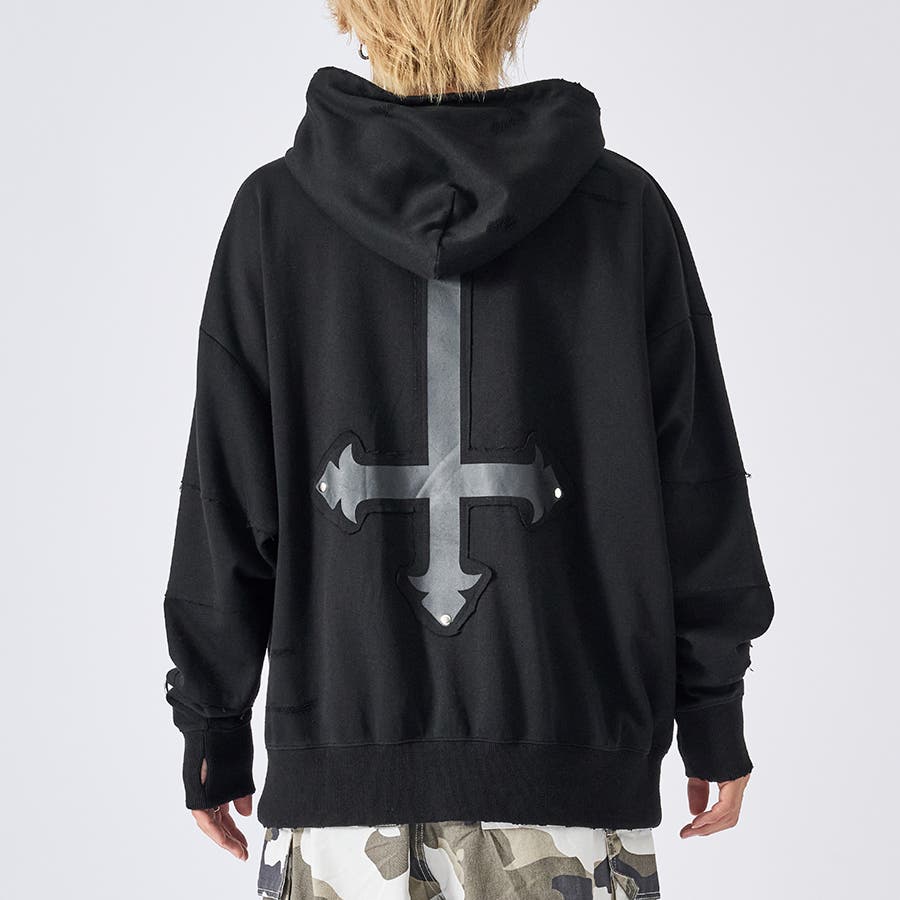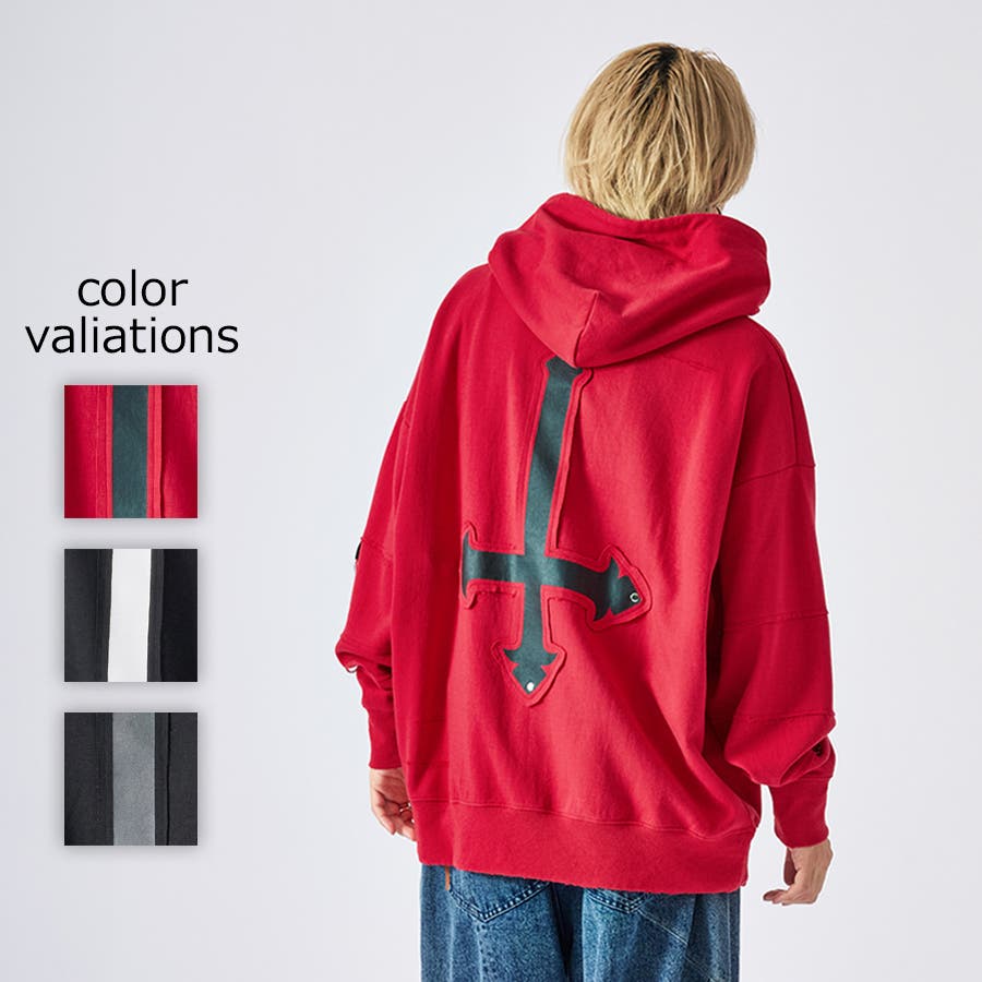 メンズ パーカー クロスアップリケ ストリート系 オーバーサイズ