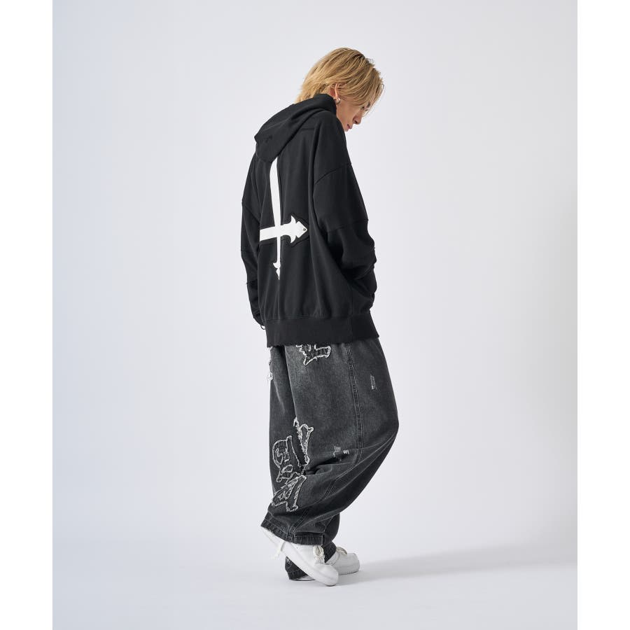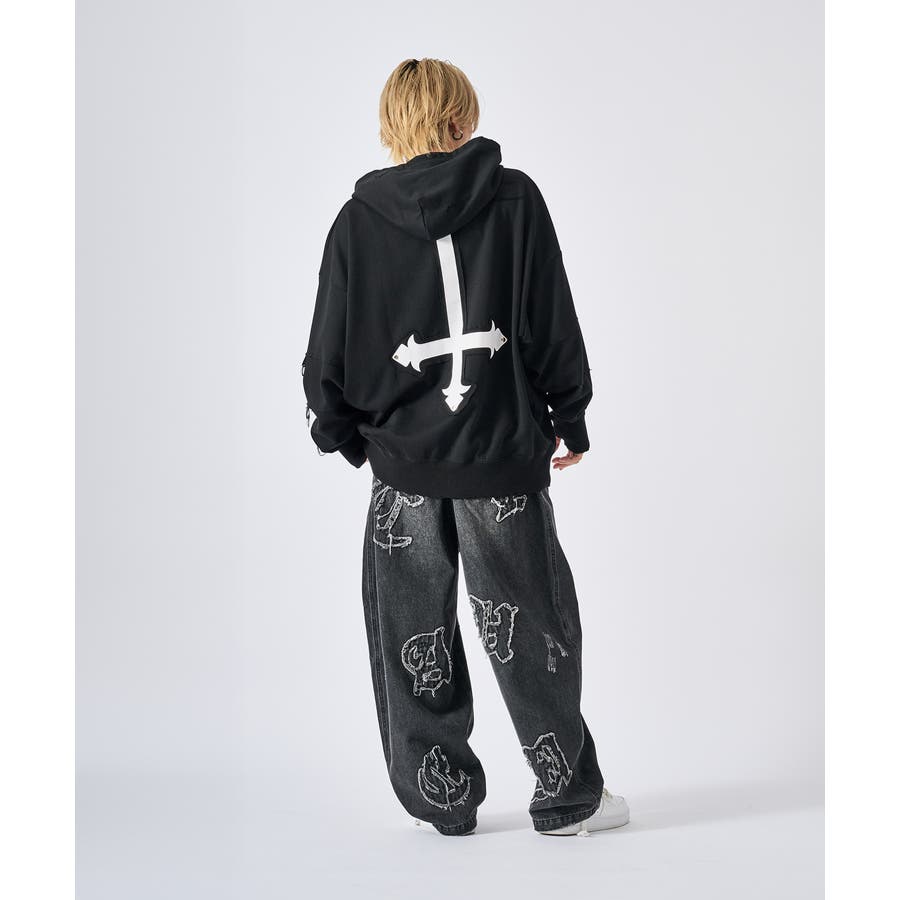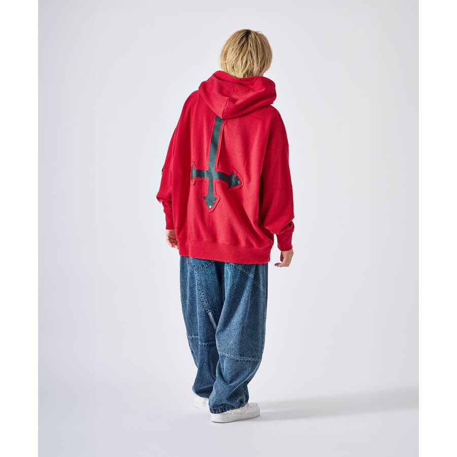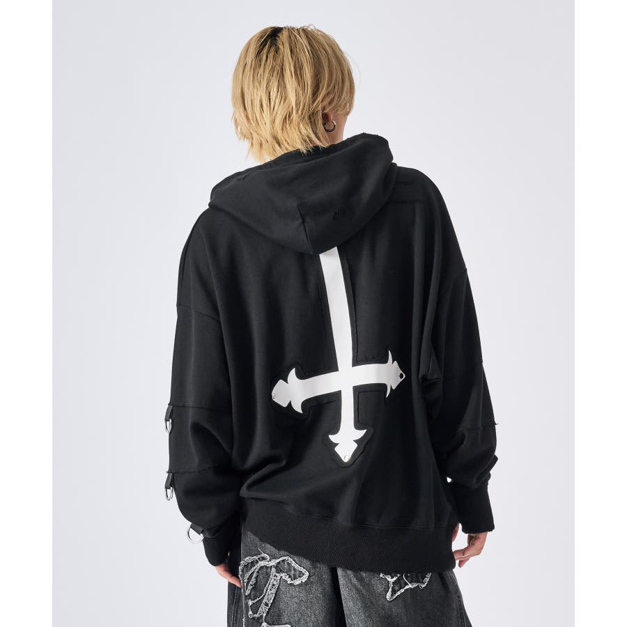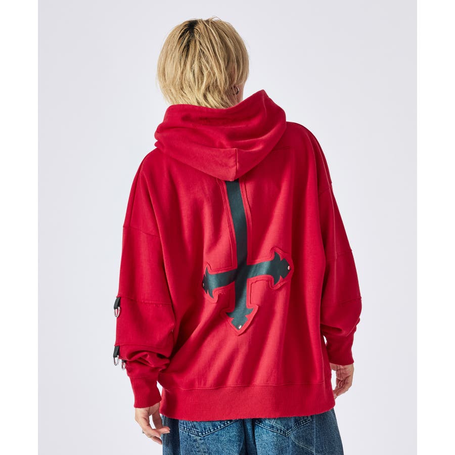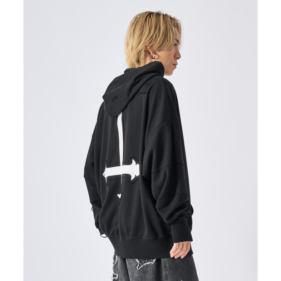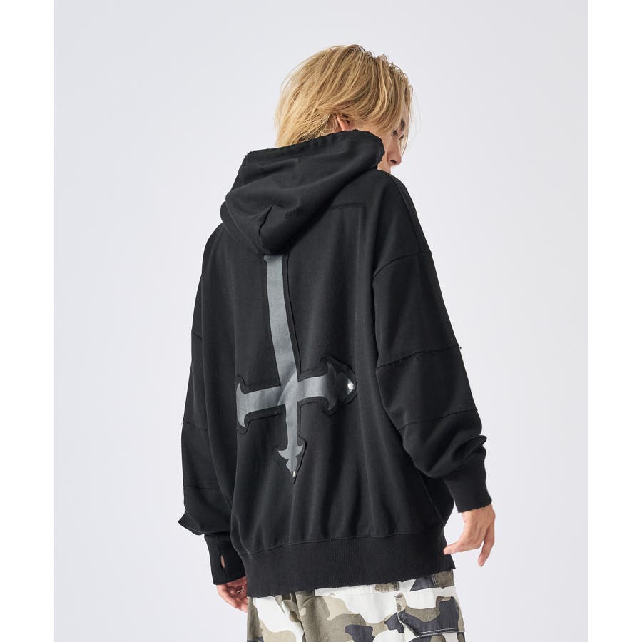 メンズ パーカー クロスアップリケ ストリート系 オーバーサイズ